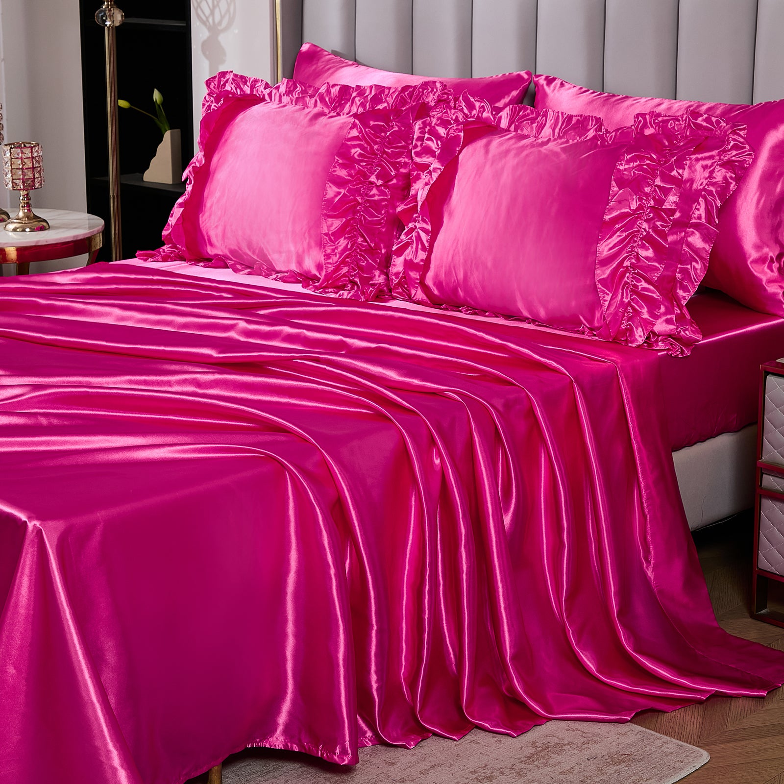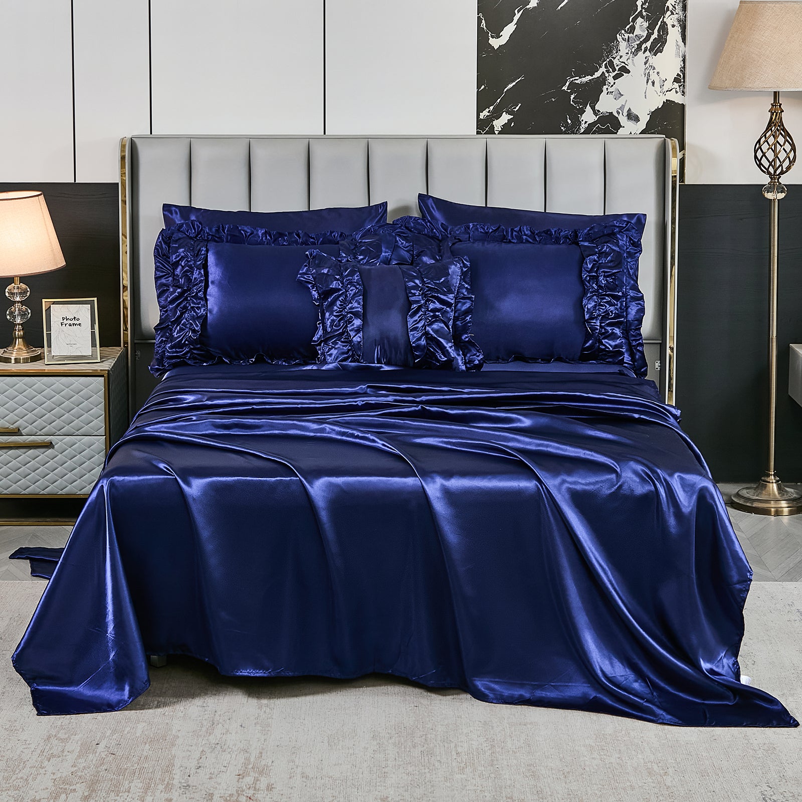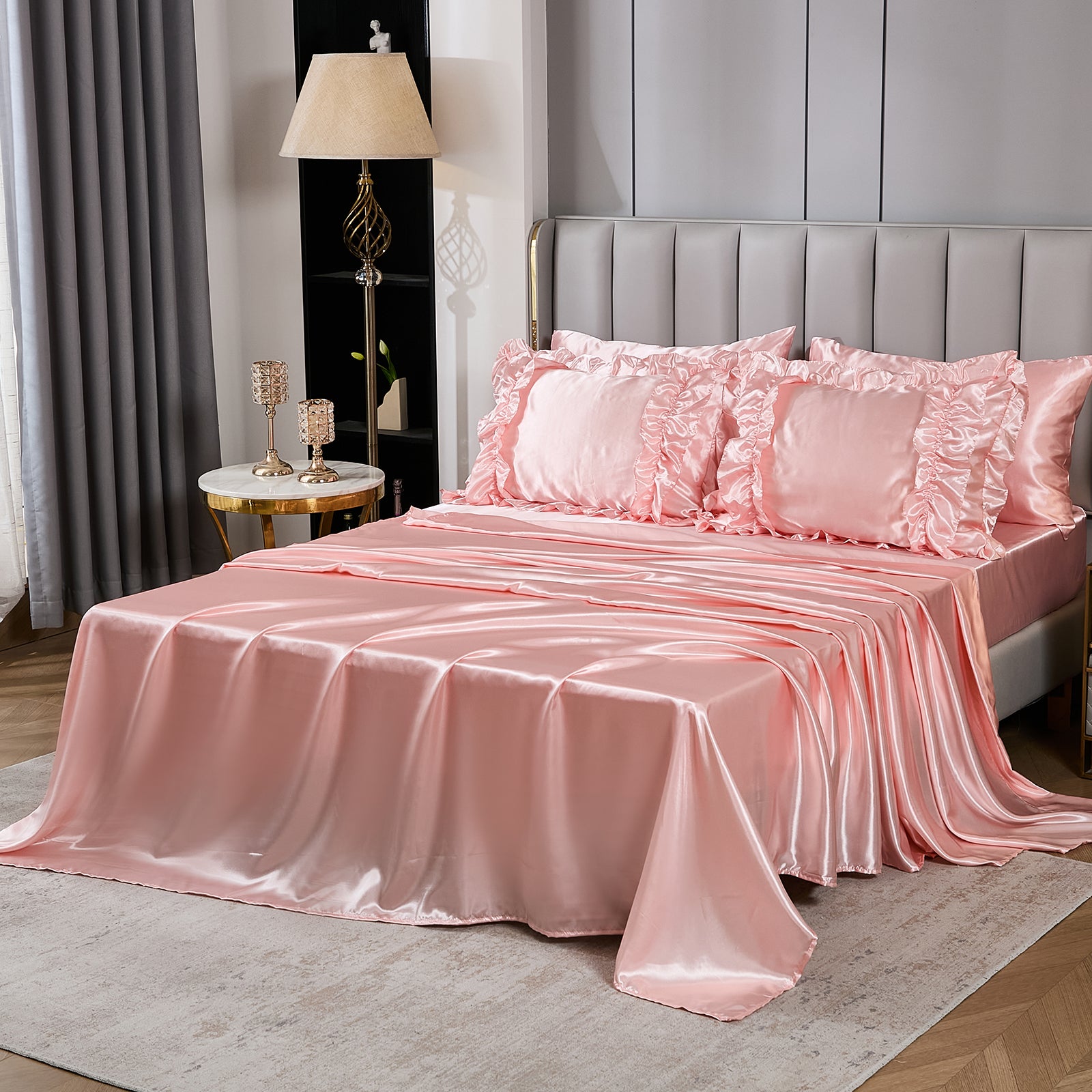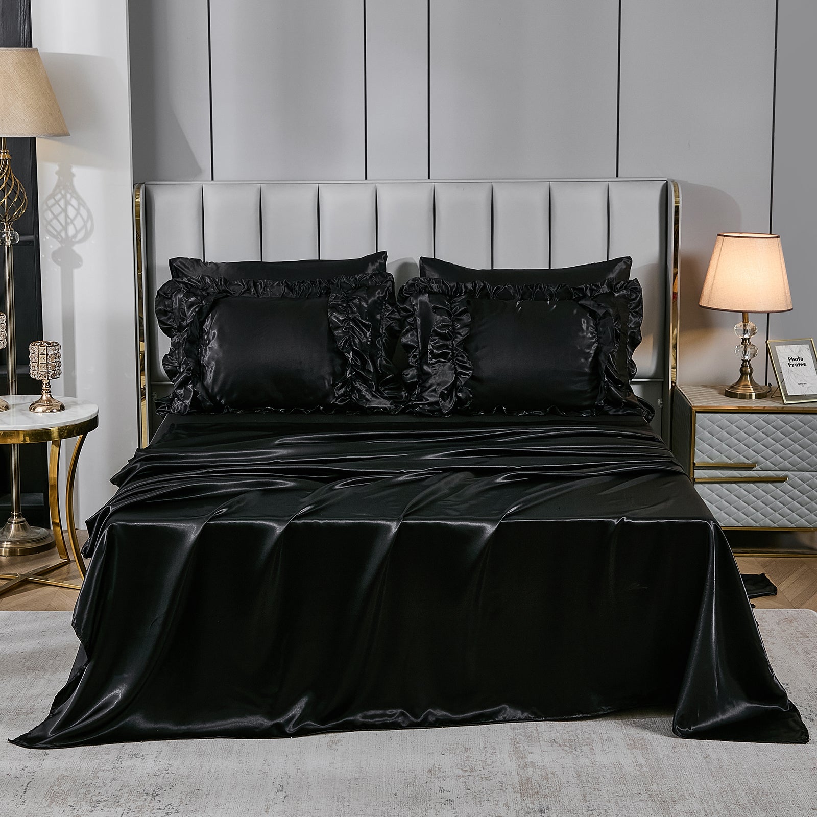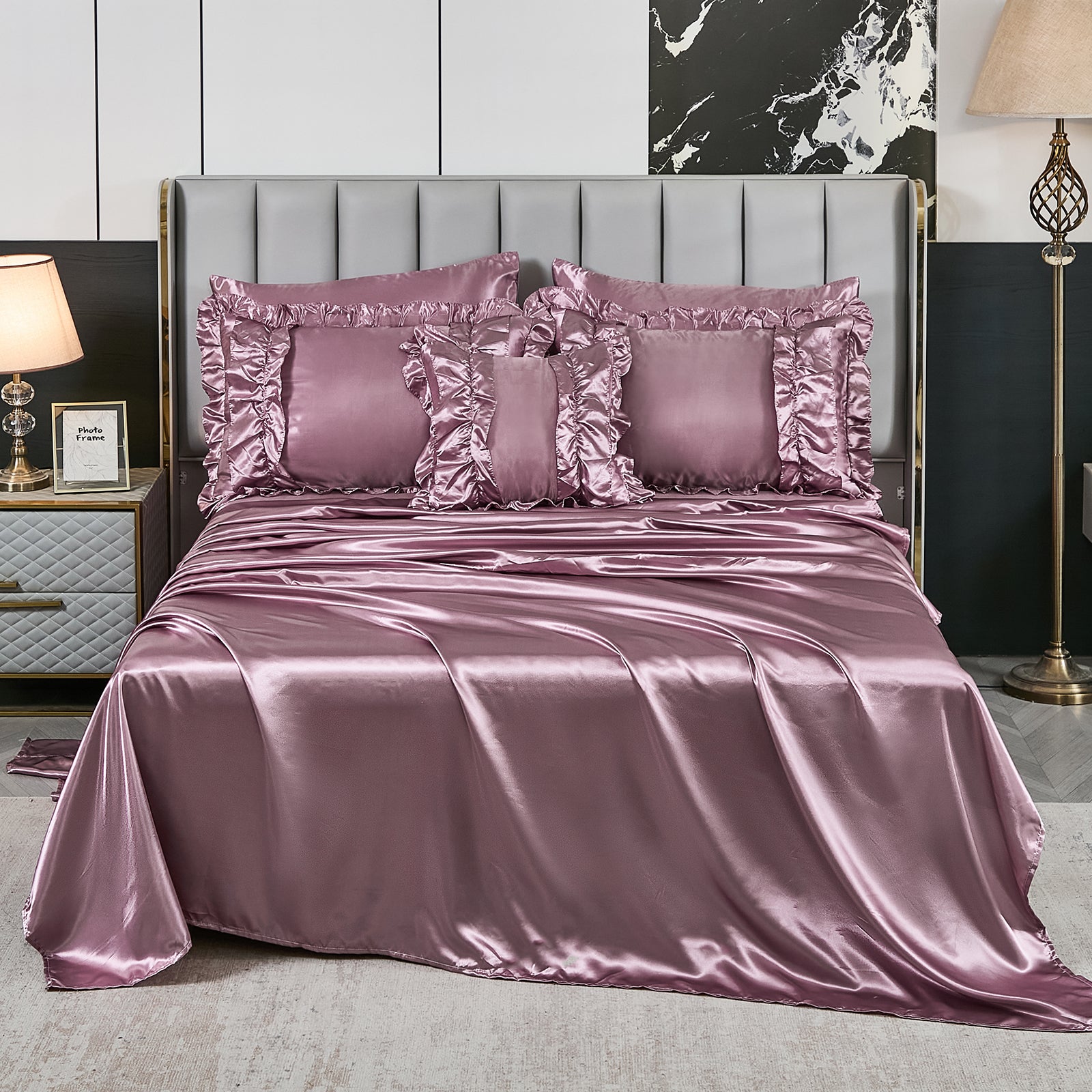 Transform your bedroom with the Satin Ruffle Comforter Set Bed in a Bag, featuring a classic waterfall ruffle design that brings romance and elegance to your space. The cascading ruffles add a princess-inspired charm, making this set perfect for farmhouse, shabby chic, or boho bedrooms.