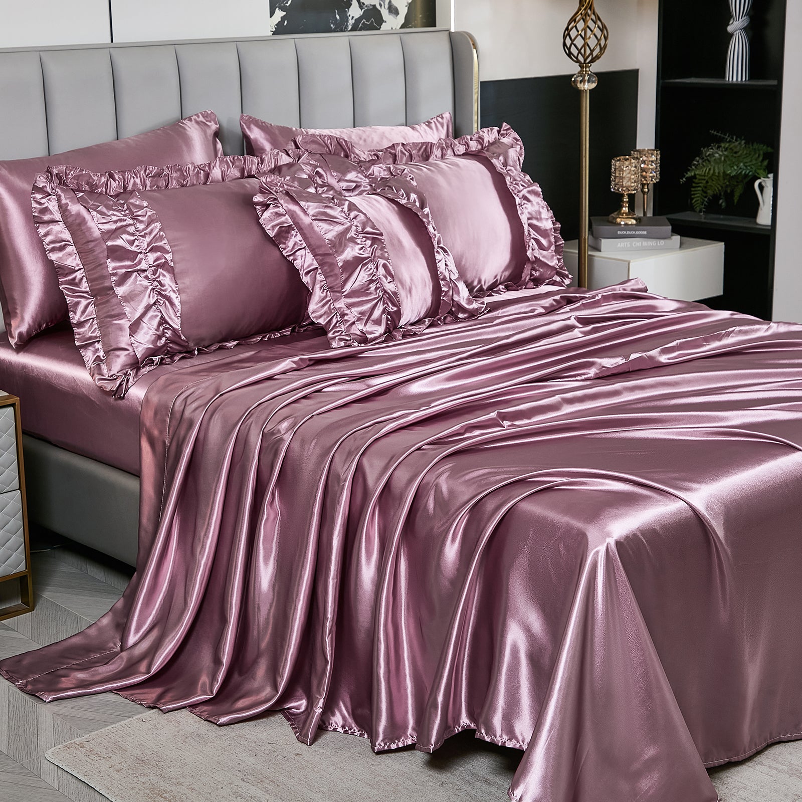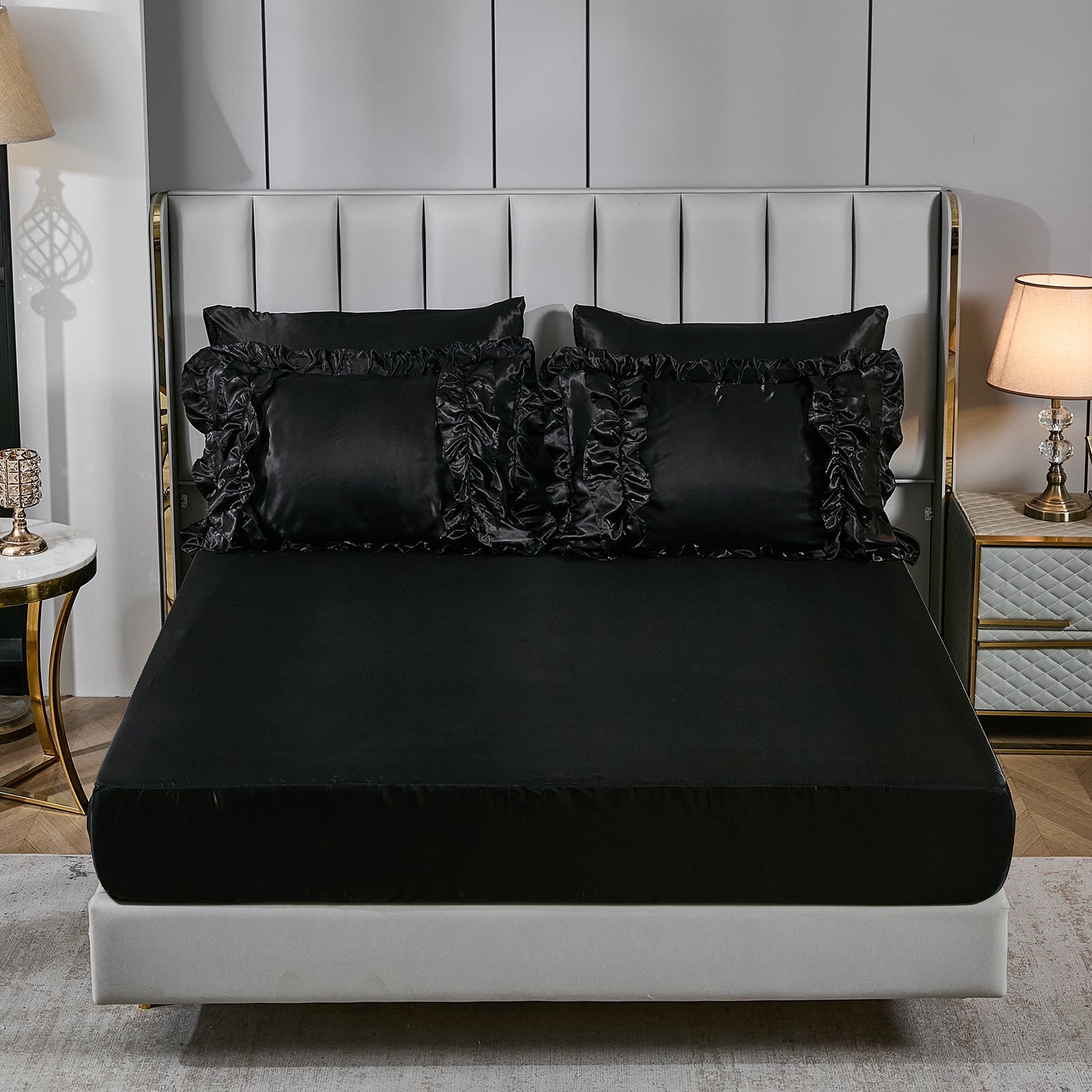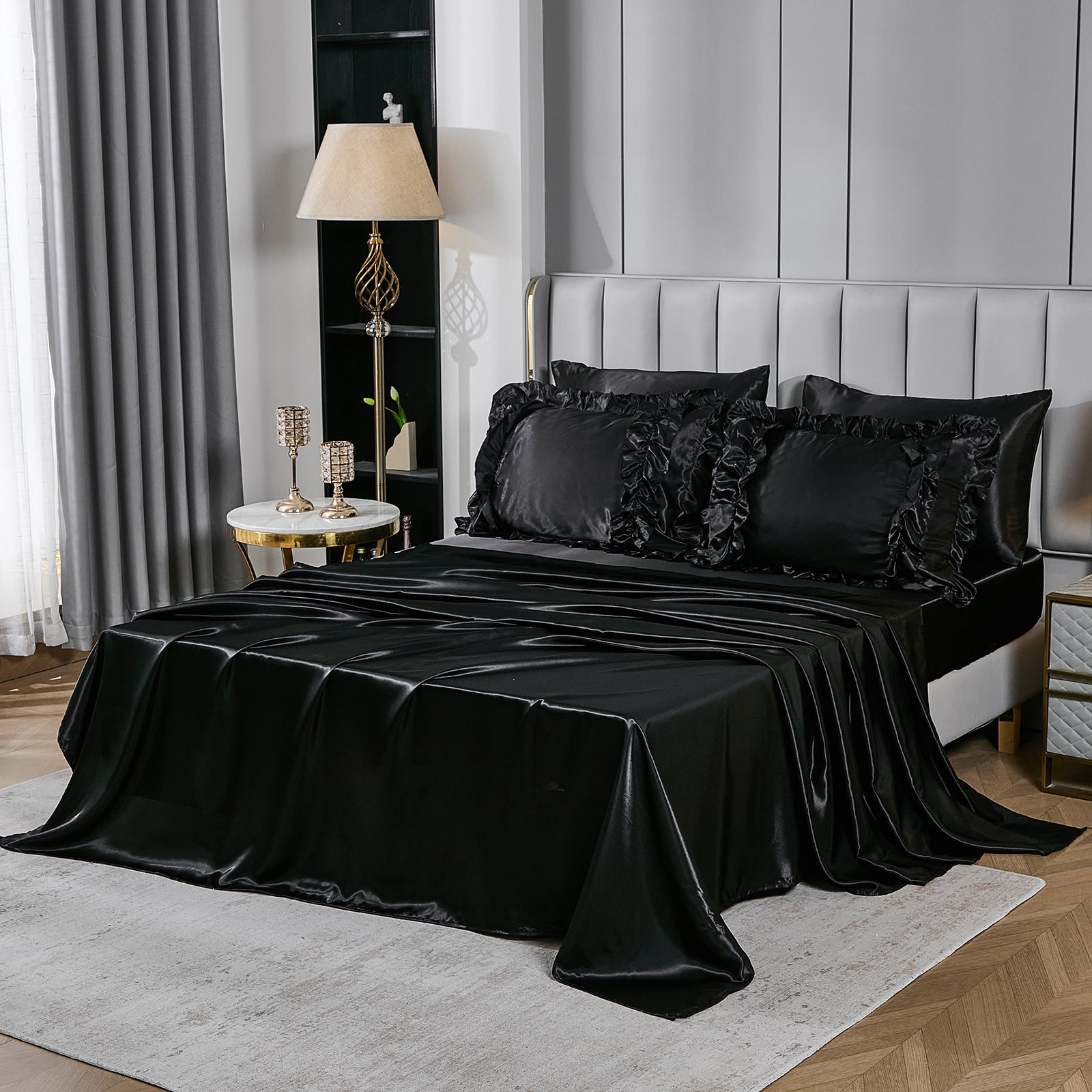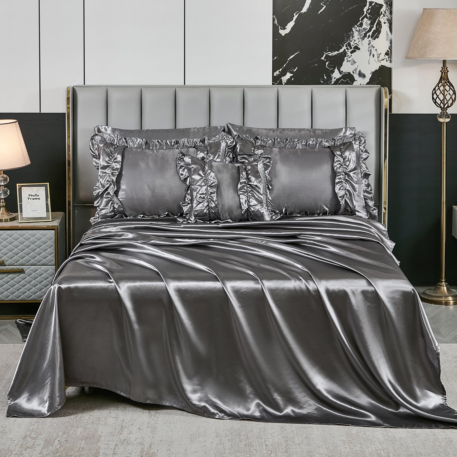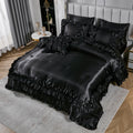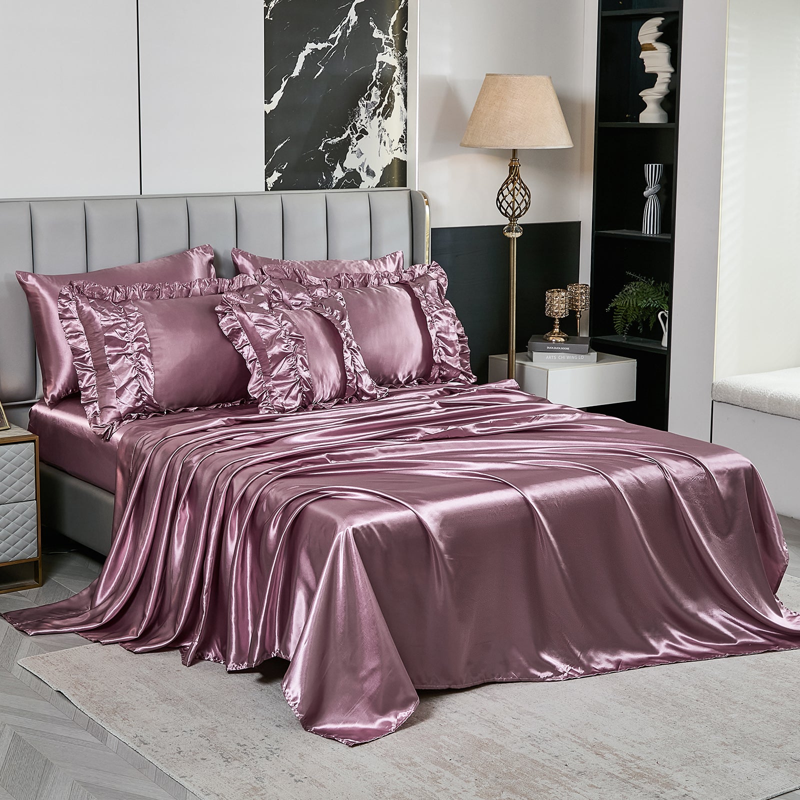 Transform your bedroom with the Satin Ruffle Comforter Set Bed in a Bag, featuring a classic waterfall ruffle design that brings romance and elegance to your space. The cascading ruffles add a princess-inspired charm, making this set perfect for farmhouse, shabby chic, or boho bedrooms.