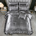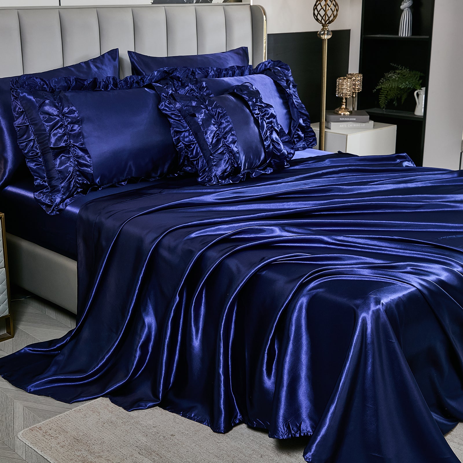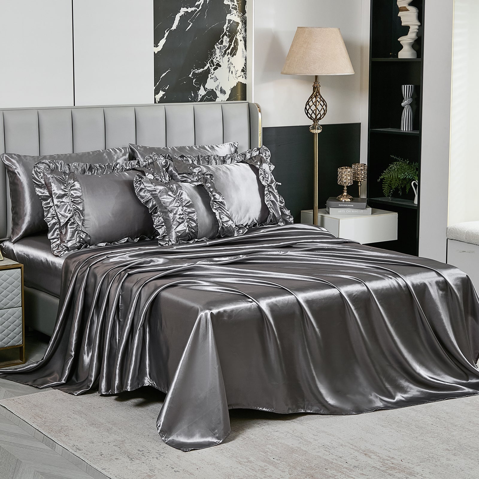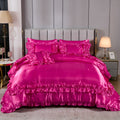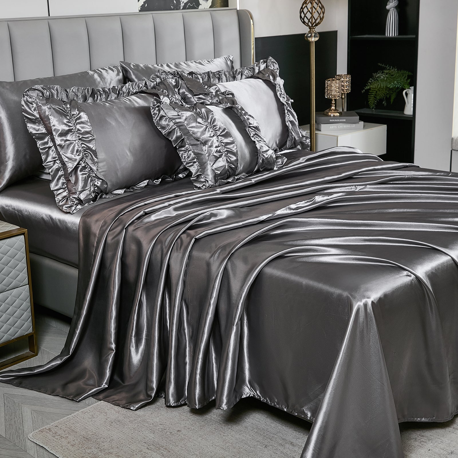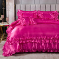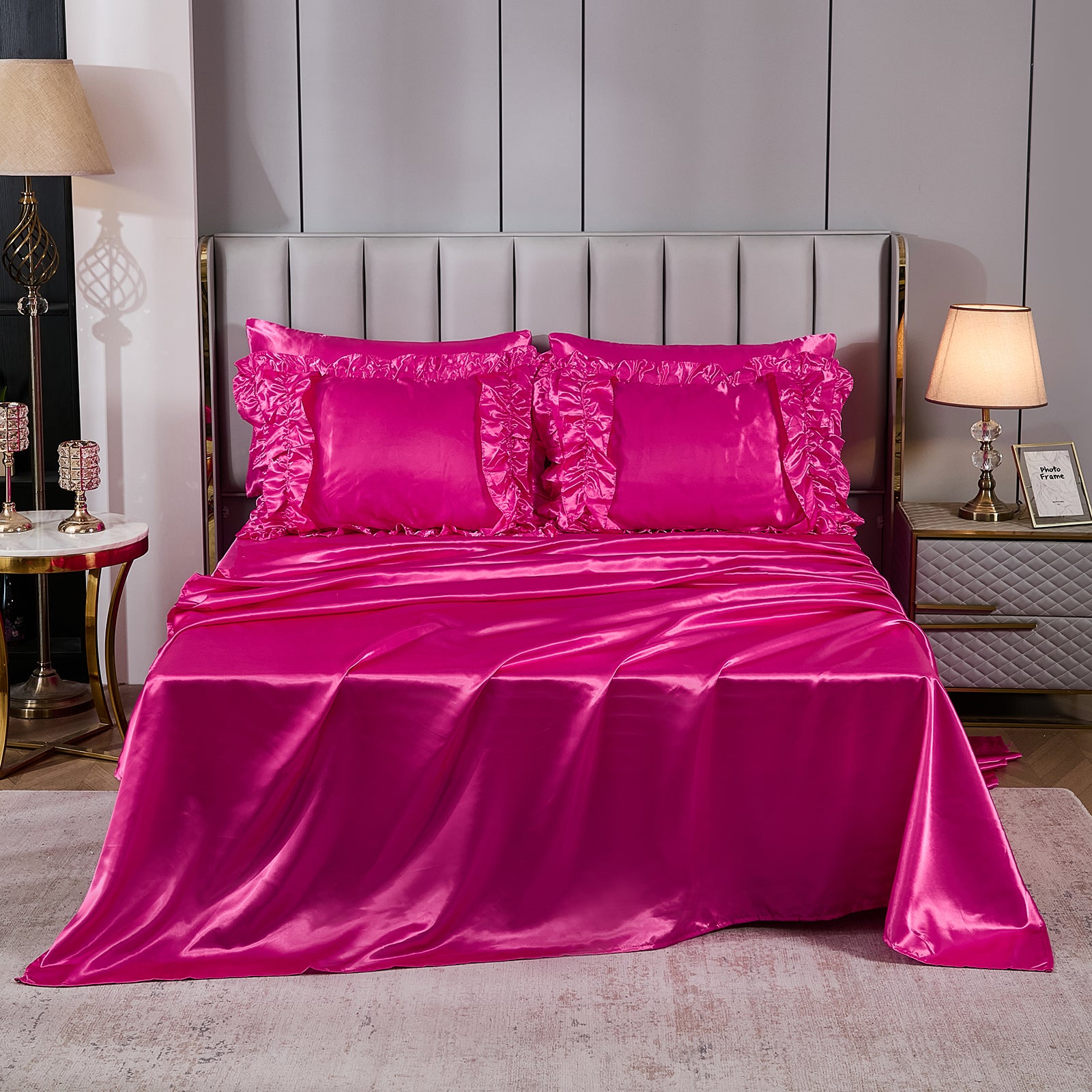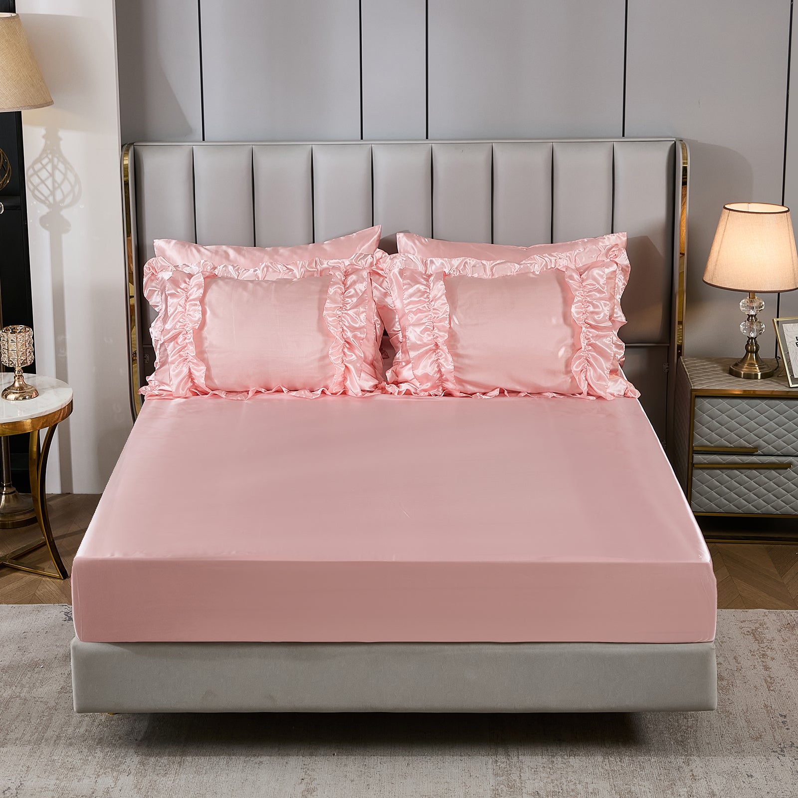 Transform your bedroom with the Satin Ruffle Comforter Set Bed in a Bag, featuring a classic waterfall ruffle design that brings romance and elegance to your space. The cascading ruffles add a princess-inspired charm, making this set perfect for farmhouse, shabby chic, or boho bedrooms.