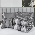 Each 8-piece set includes a comforter, flat sheet, fitted sheet with a 16" pocket, 4 pillowcases, and a cushion cover for a complete bedding upgrade. Available in King and Queen sizes, this bedding set ensures both beauty and functionality.