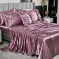 Satin Ruffle Comforter Set Bed in a Bag – 8-Piece Luxury Waterfall Farmhouse Bedding with Sheets, Pillowcases & Cushion Cover, King/Queen Options