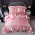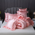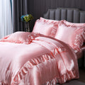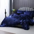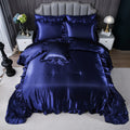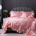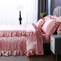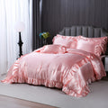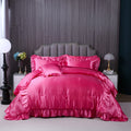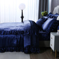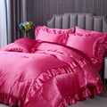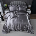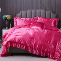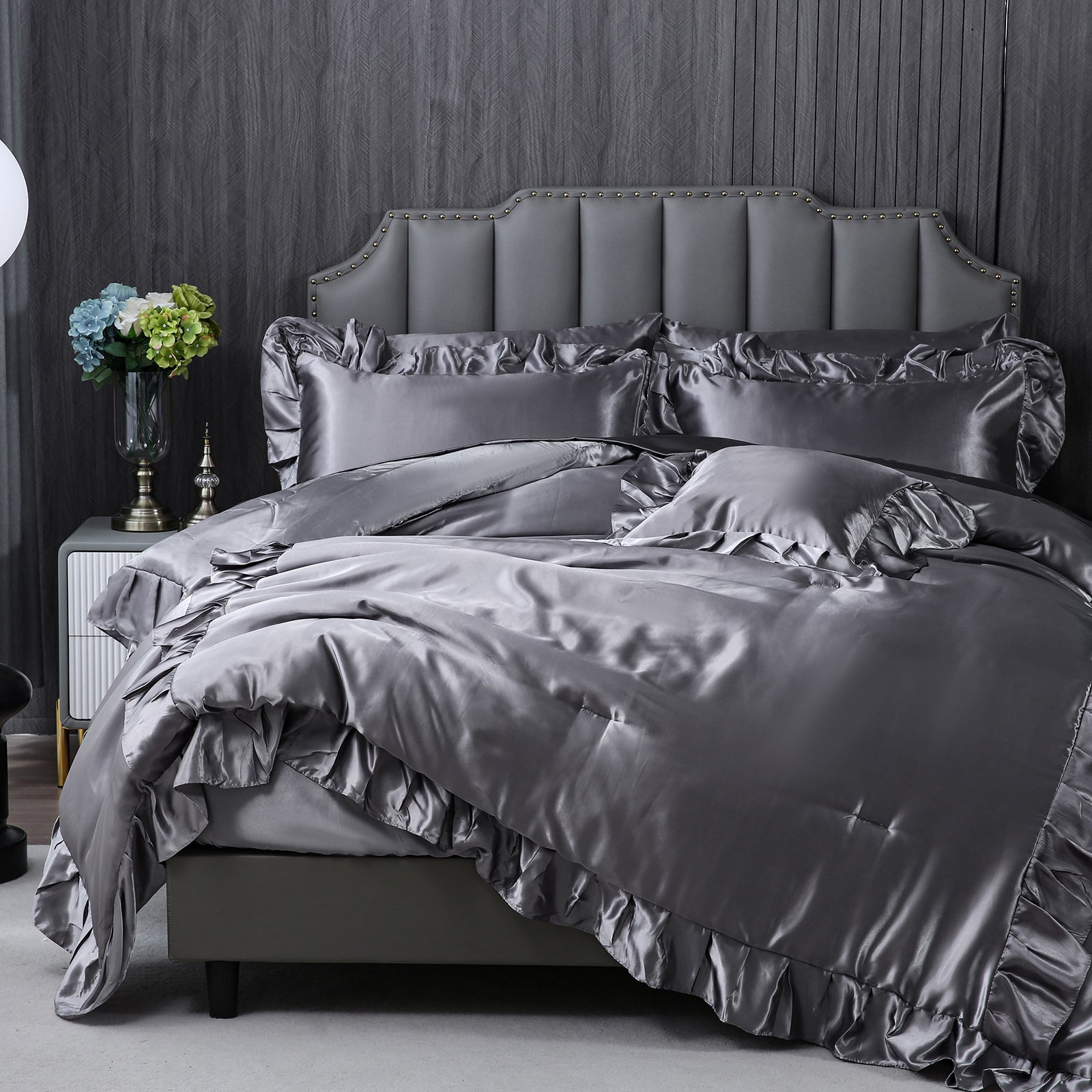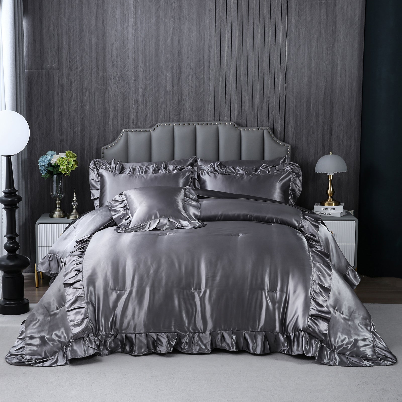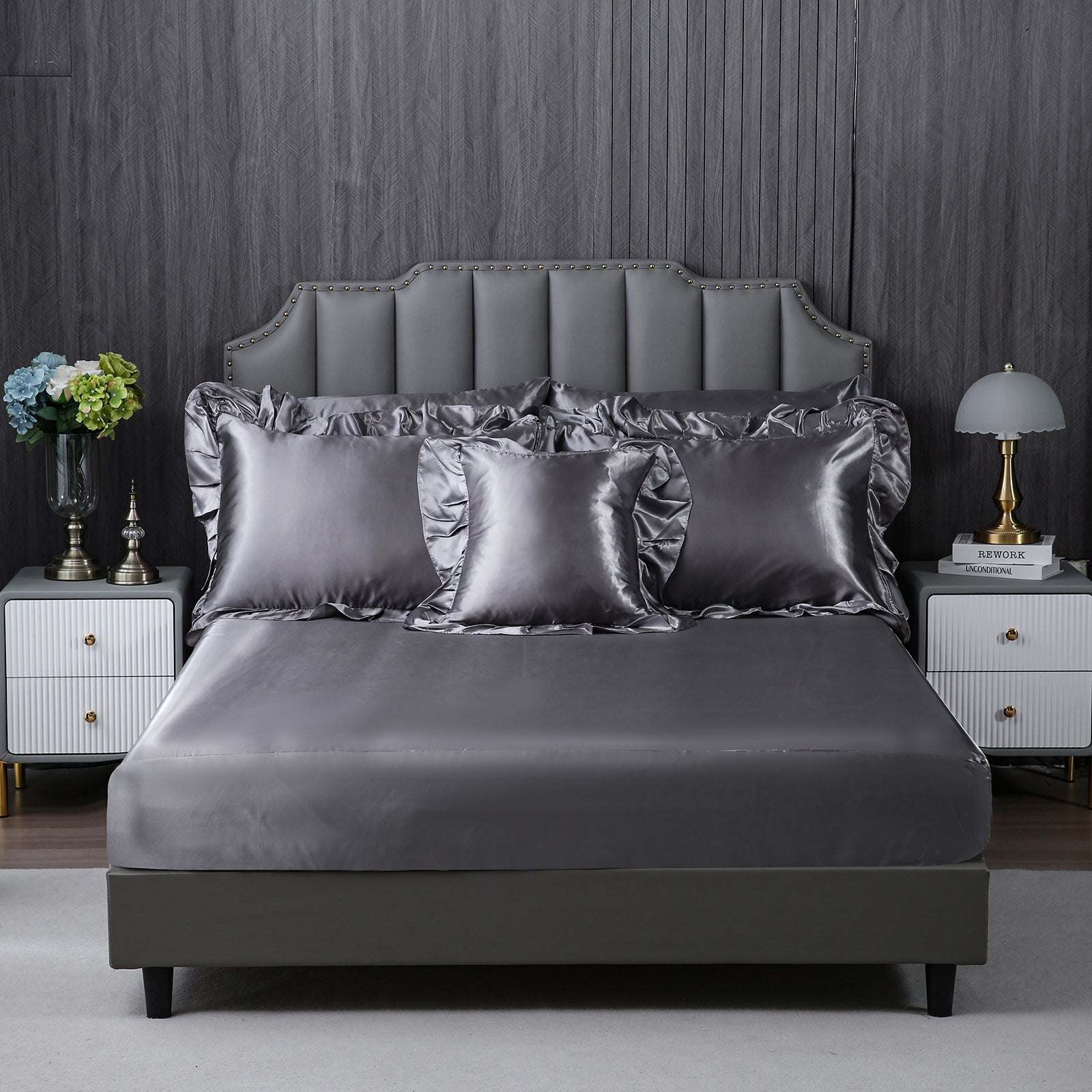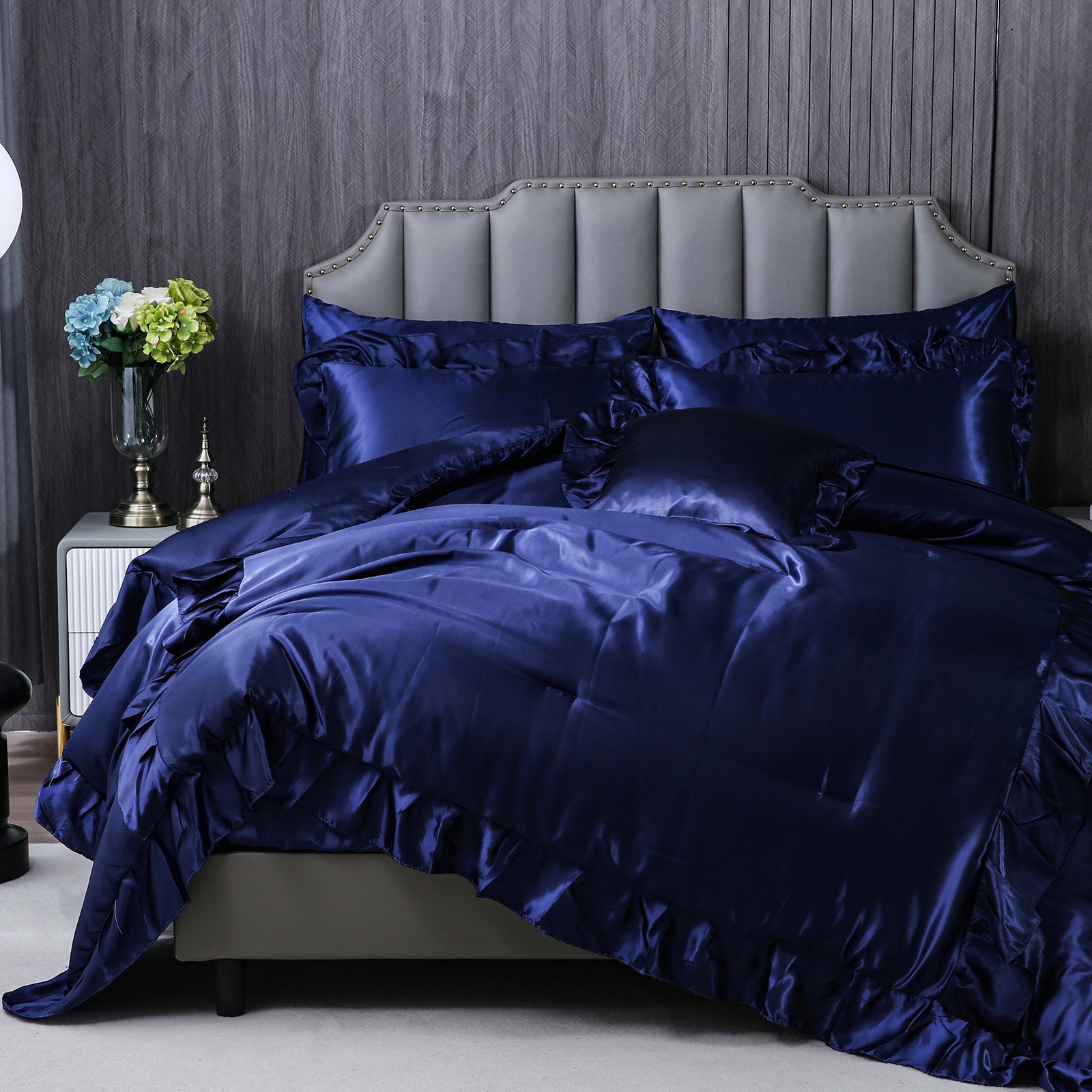 Satin Ruffle Comforter Set with Sheets – 8-Piece Bed in a Bag, Luxury Silk-Like Soft Bedding with Pillowcases & Cushion Cover, Queen/King/Full