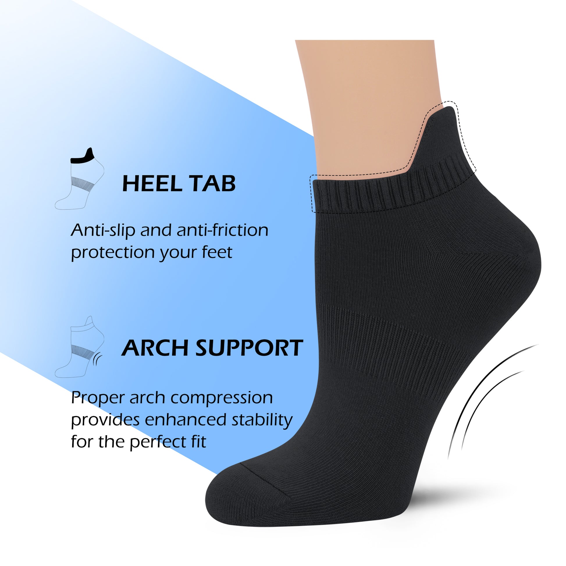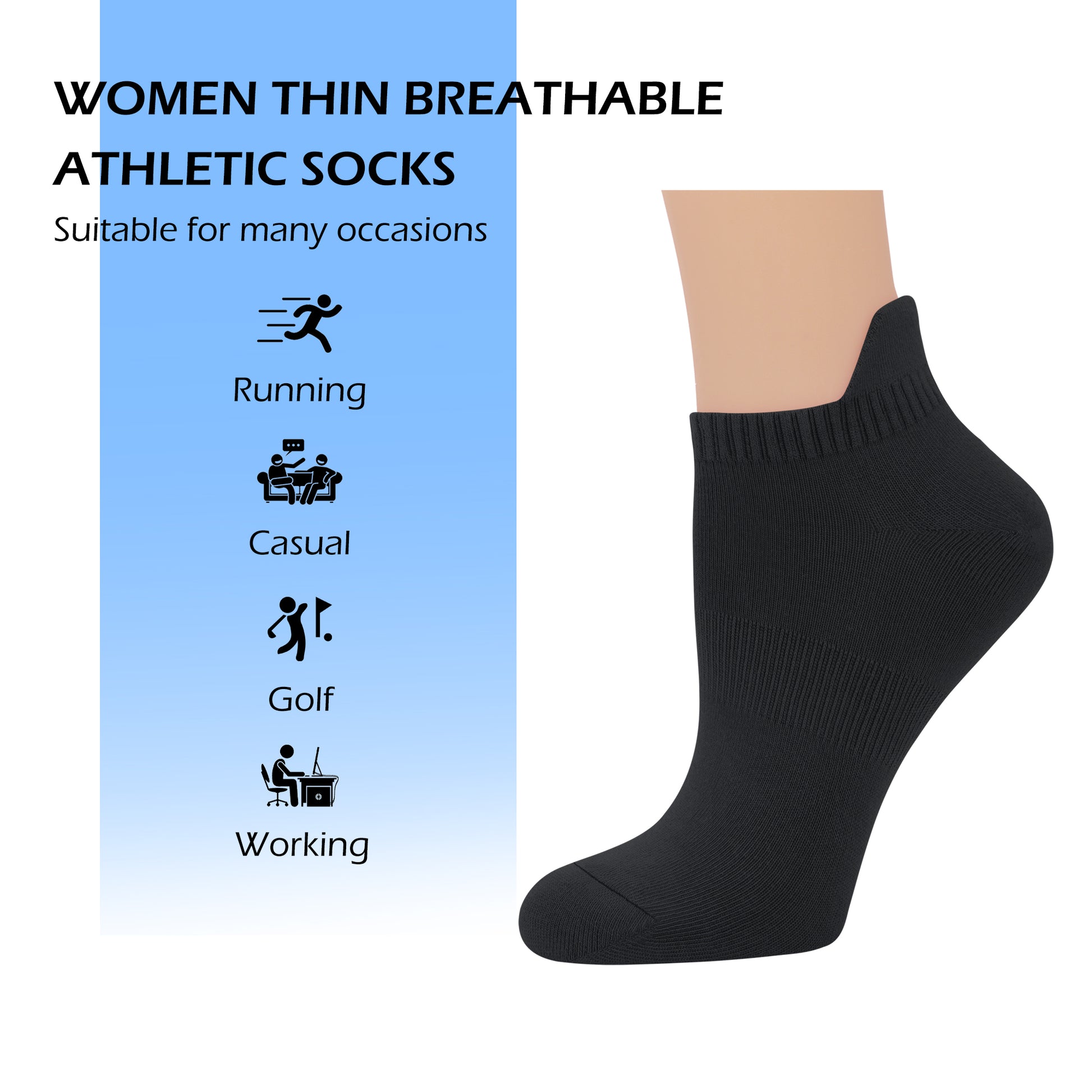 SERISIMPLE Women's No-Show Bamboo Socks – Thin, Low-Cut, Breathable with Arch Support, Athletic Fit, Black, Medium, 5 Pairs