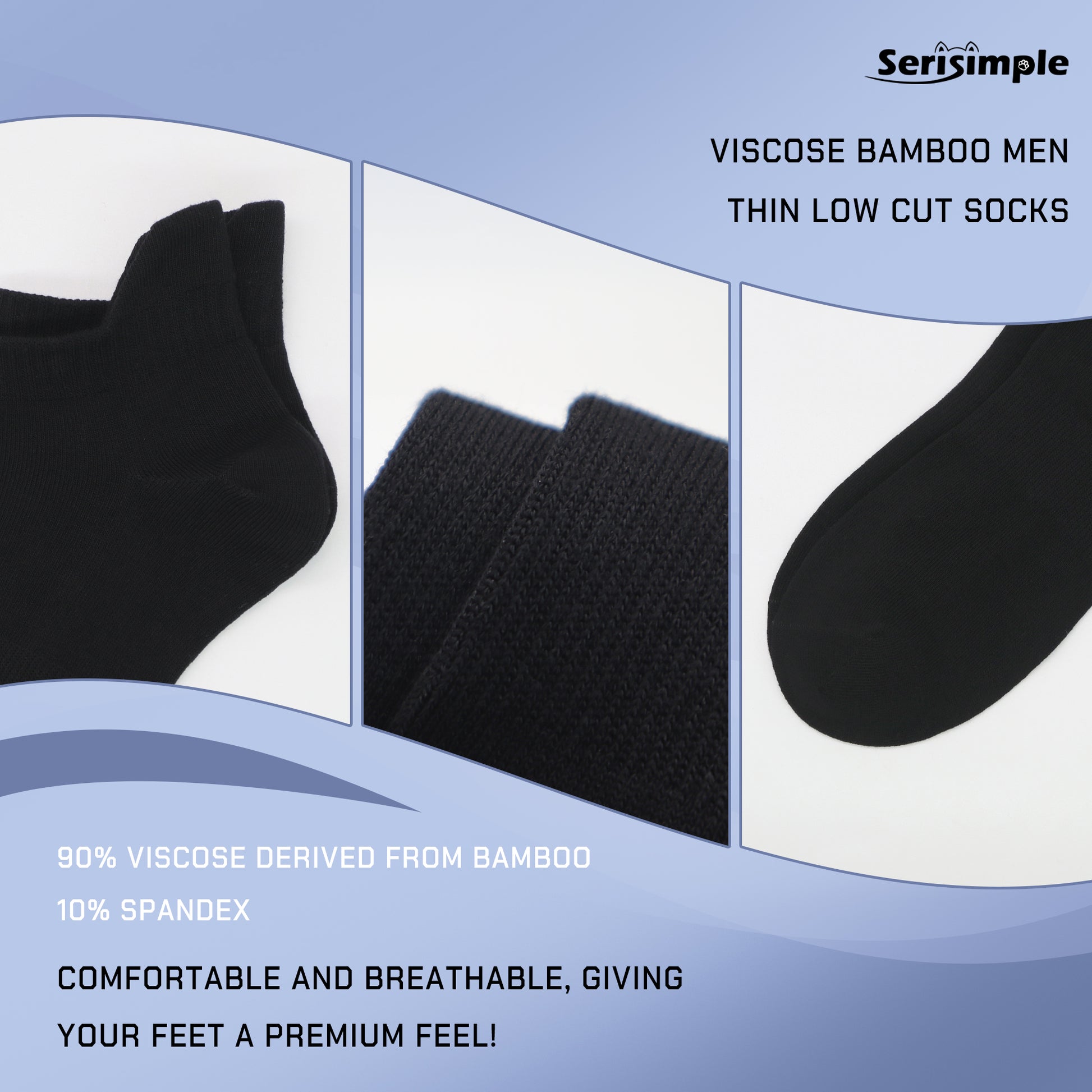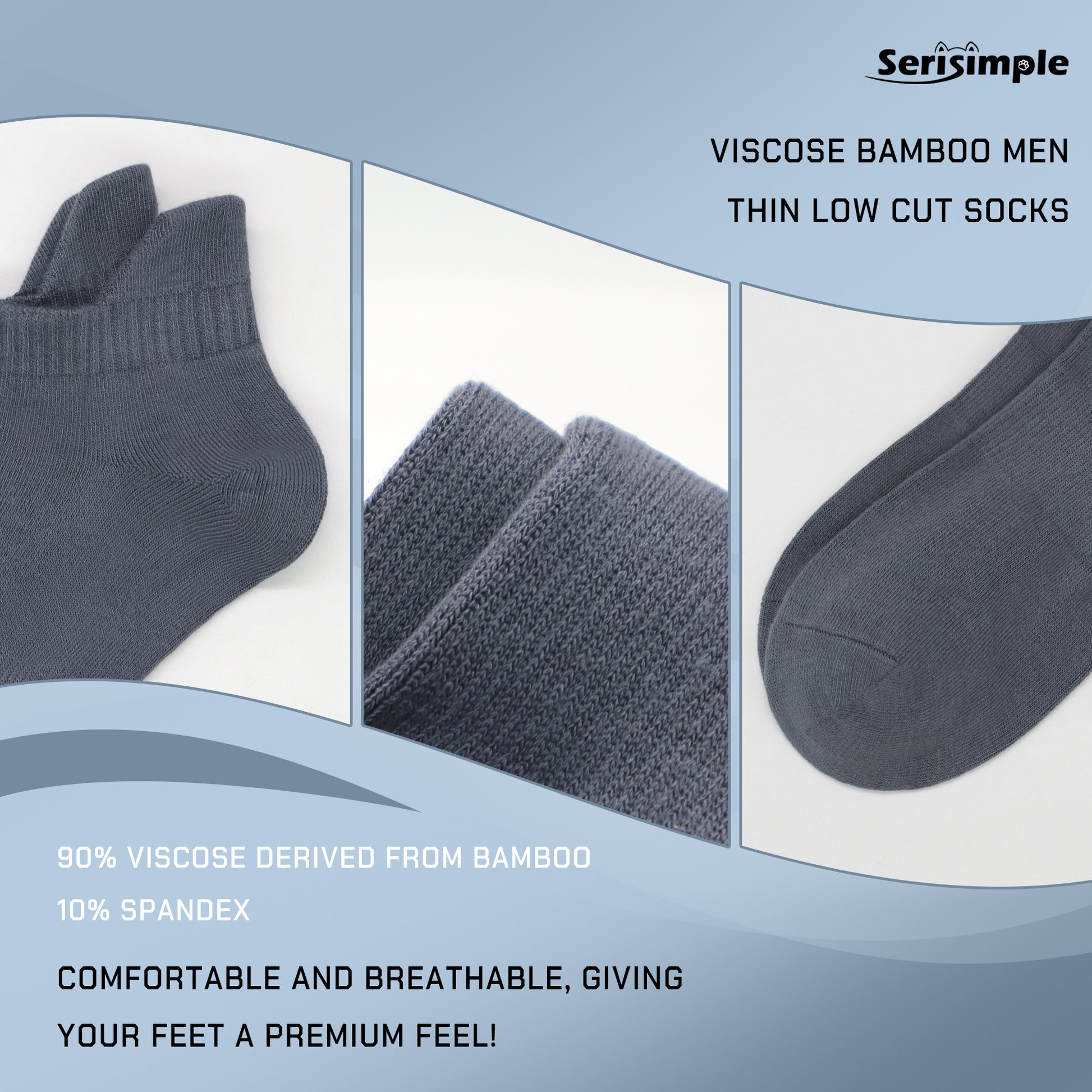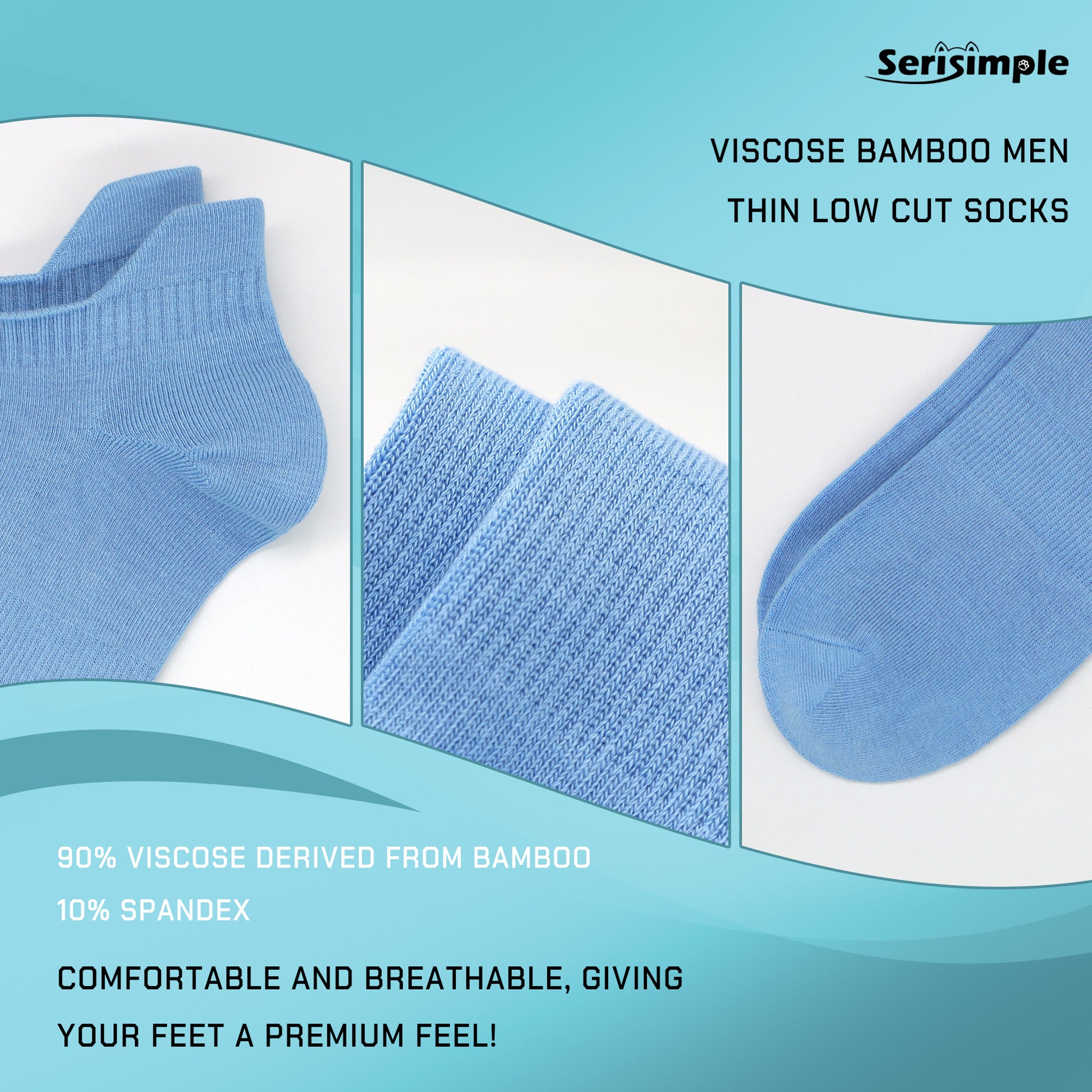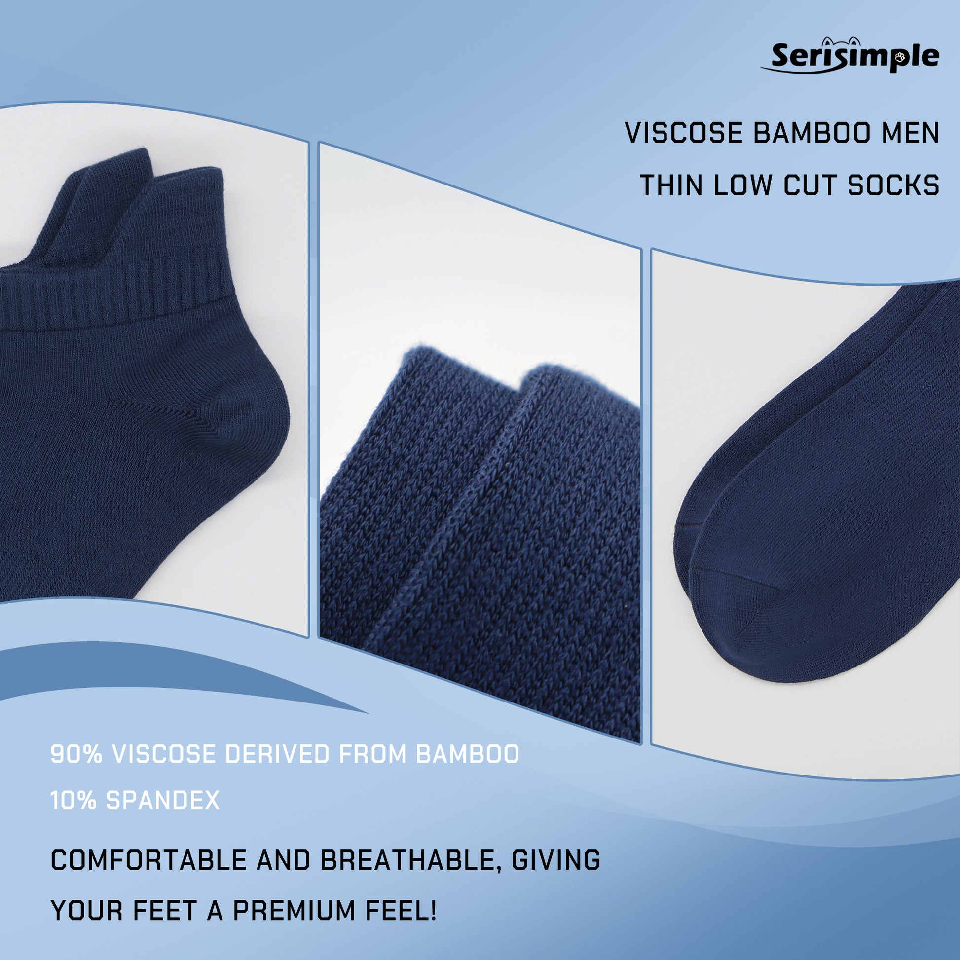 SERISIMPLE Men Thin Viscose Bamboo No Show Low Cut Odor Resistant Breathable Low Cut Socks Navy Blue Large 5 Pairs