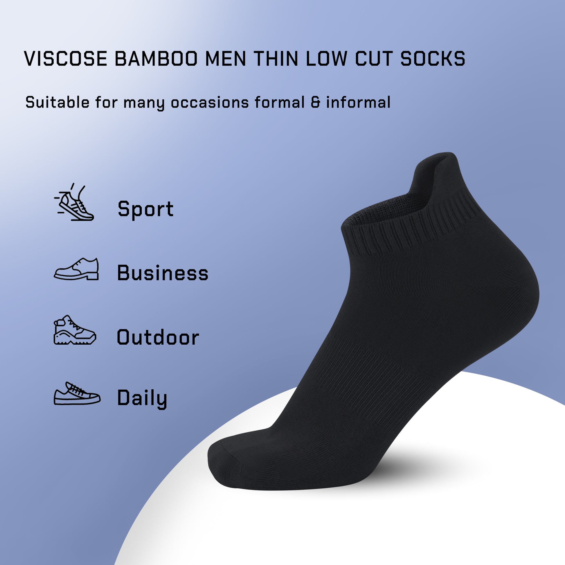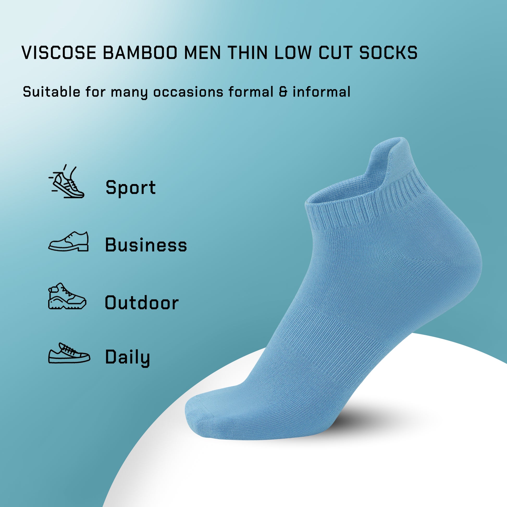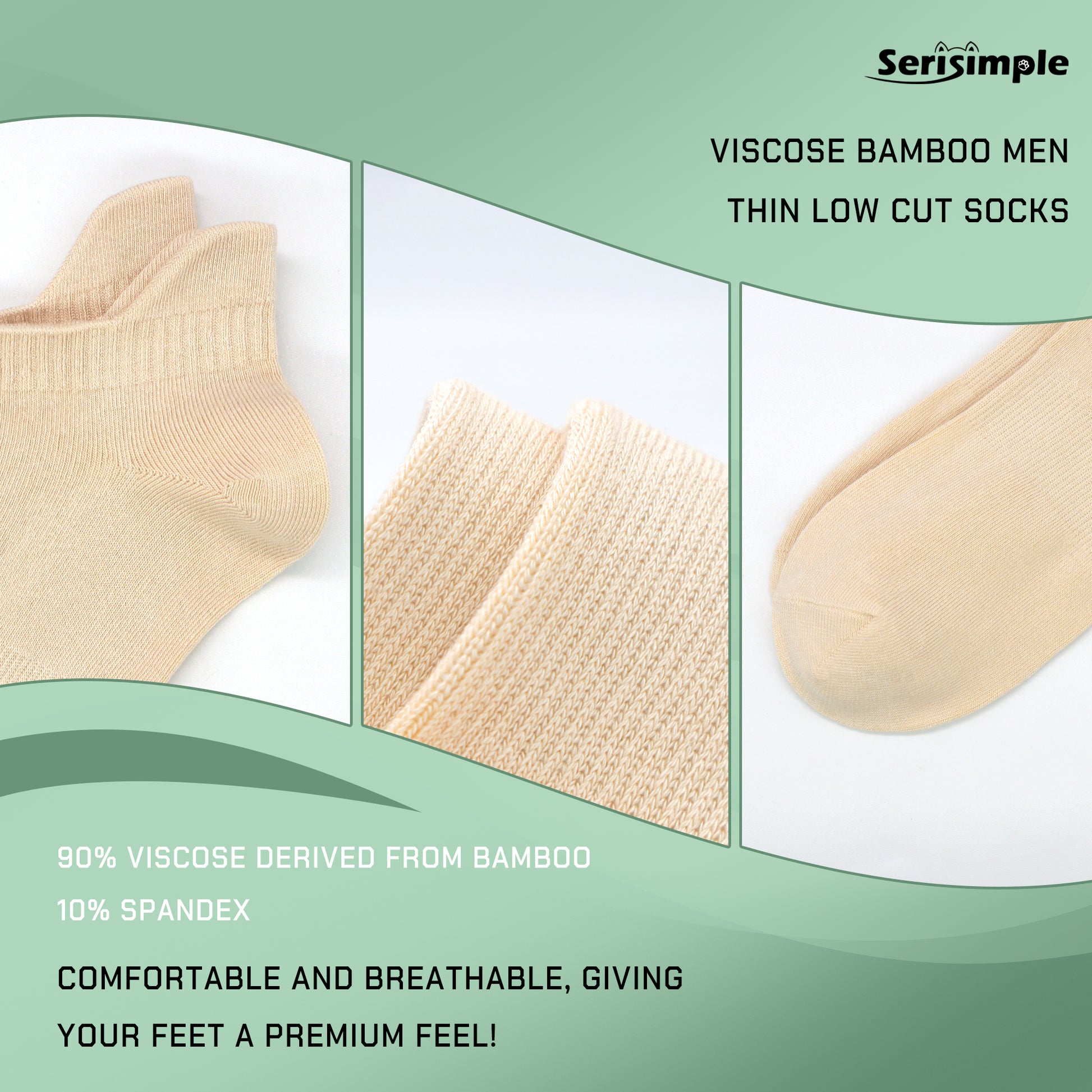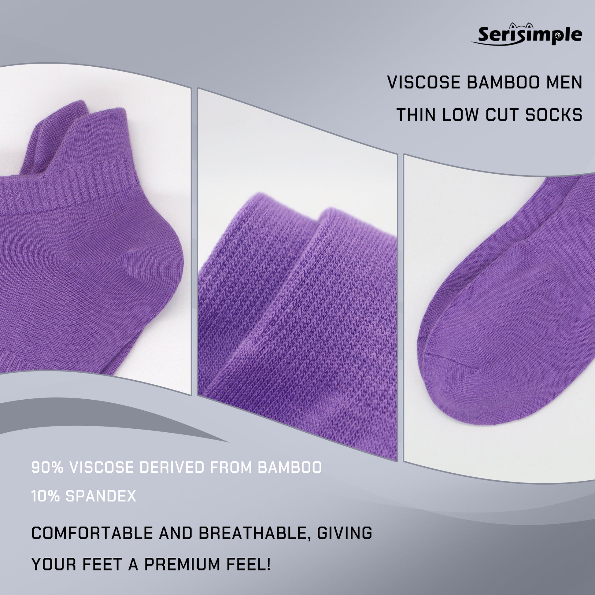 SERISIMPLE Men Thin Viscose Bamboo No Show Low Cut Odor Resistant Breathable Low Cut Socks Navy Blue Large 5 Pairs