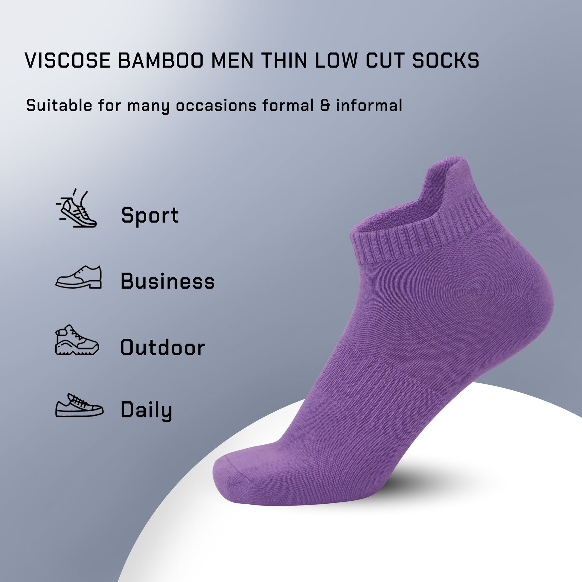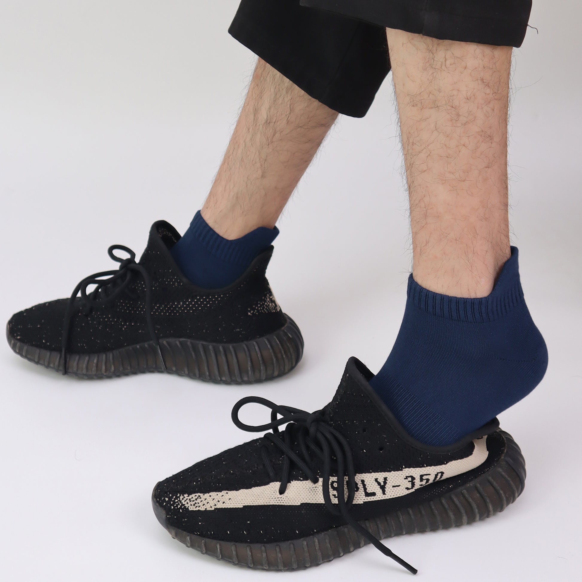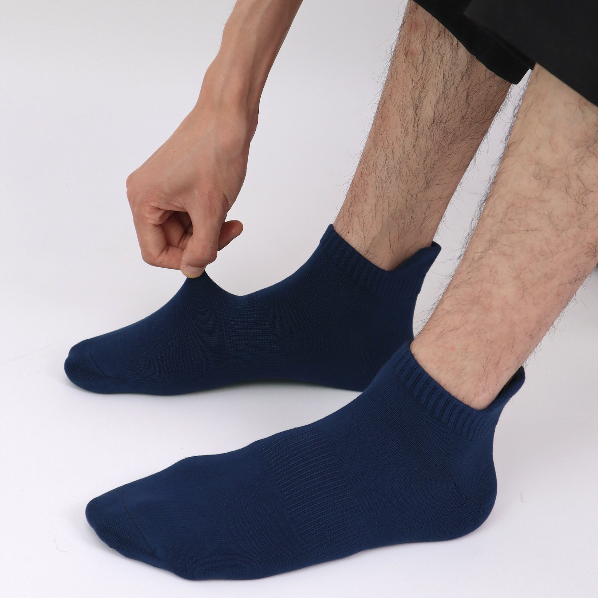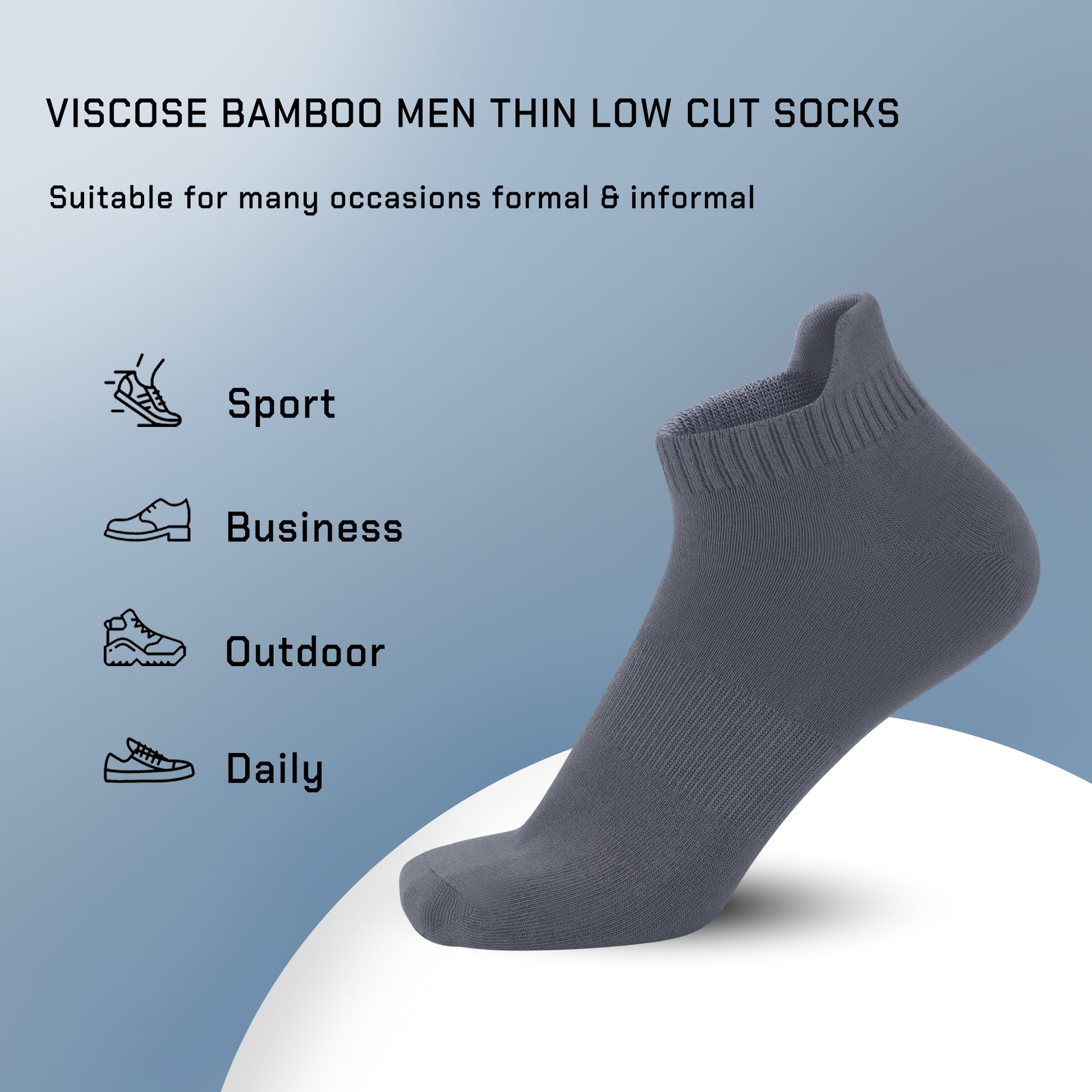 SERISIMPLE Men Thin Viscose Bamboo No Show Low Cut Odor Resistant Breathable Low Cut Socks Navy Blue Large 5 Pairs