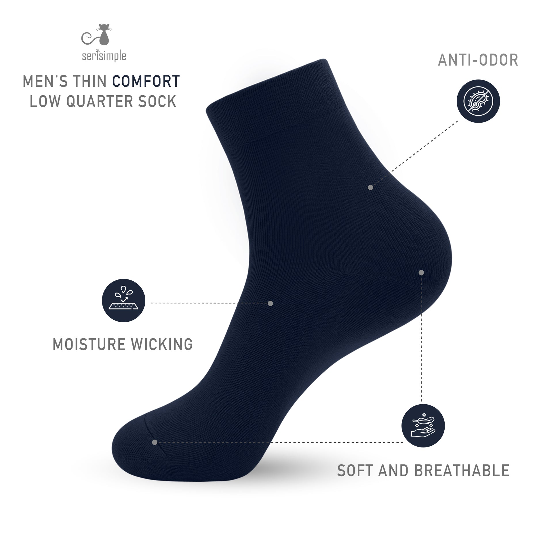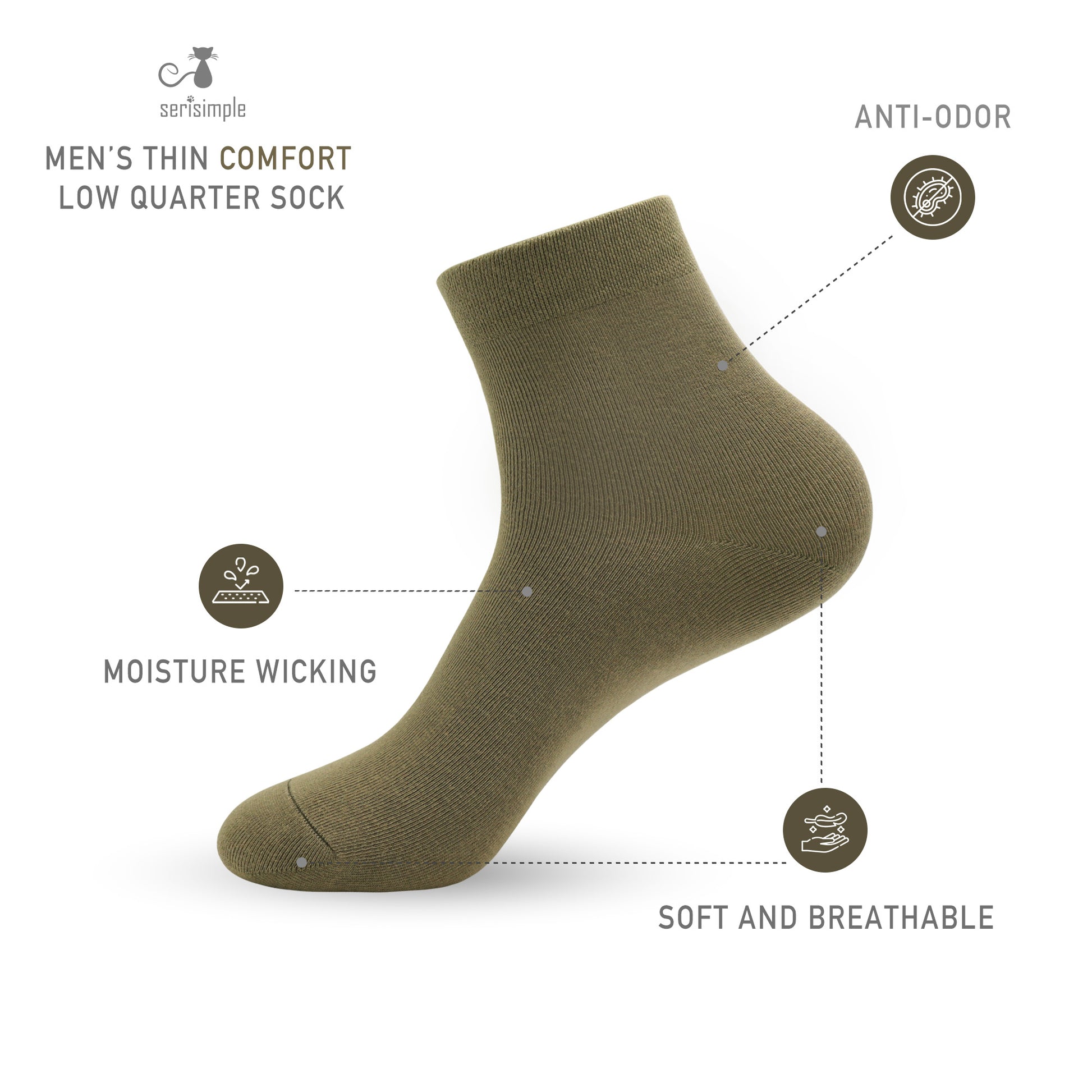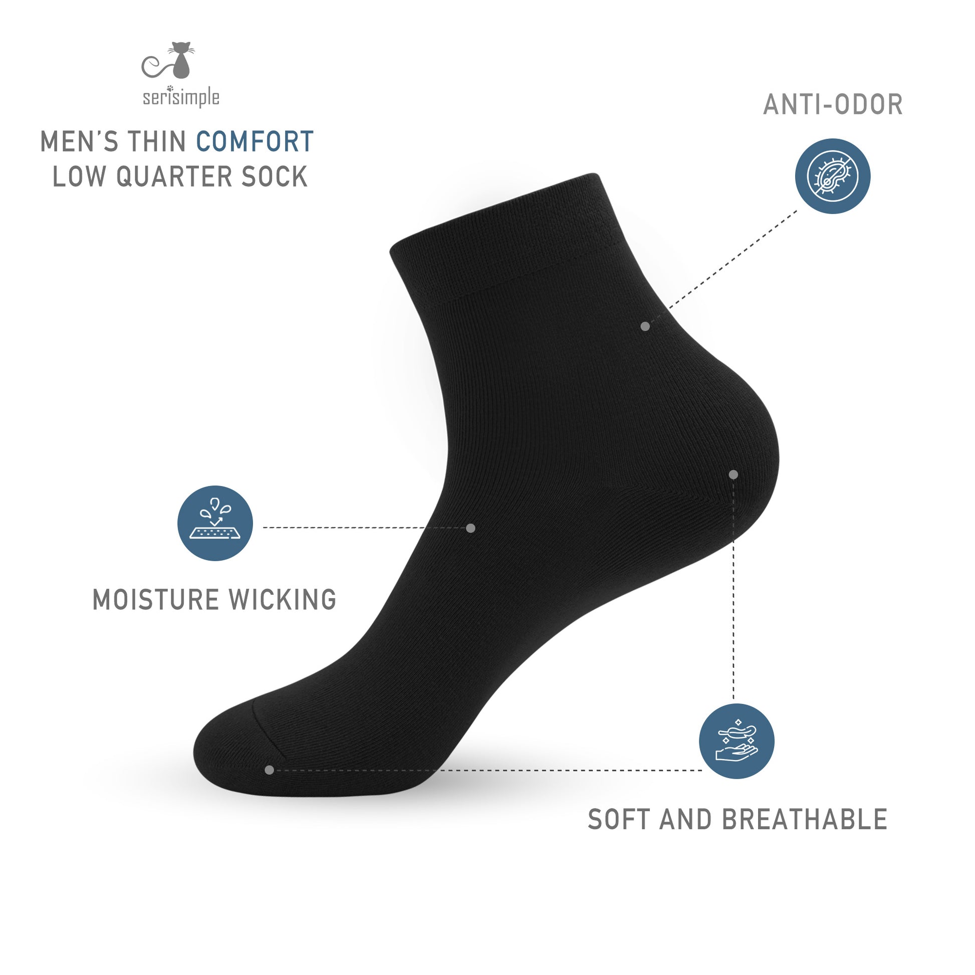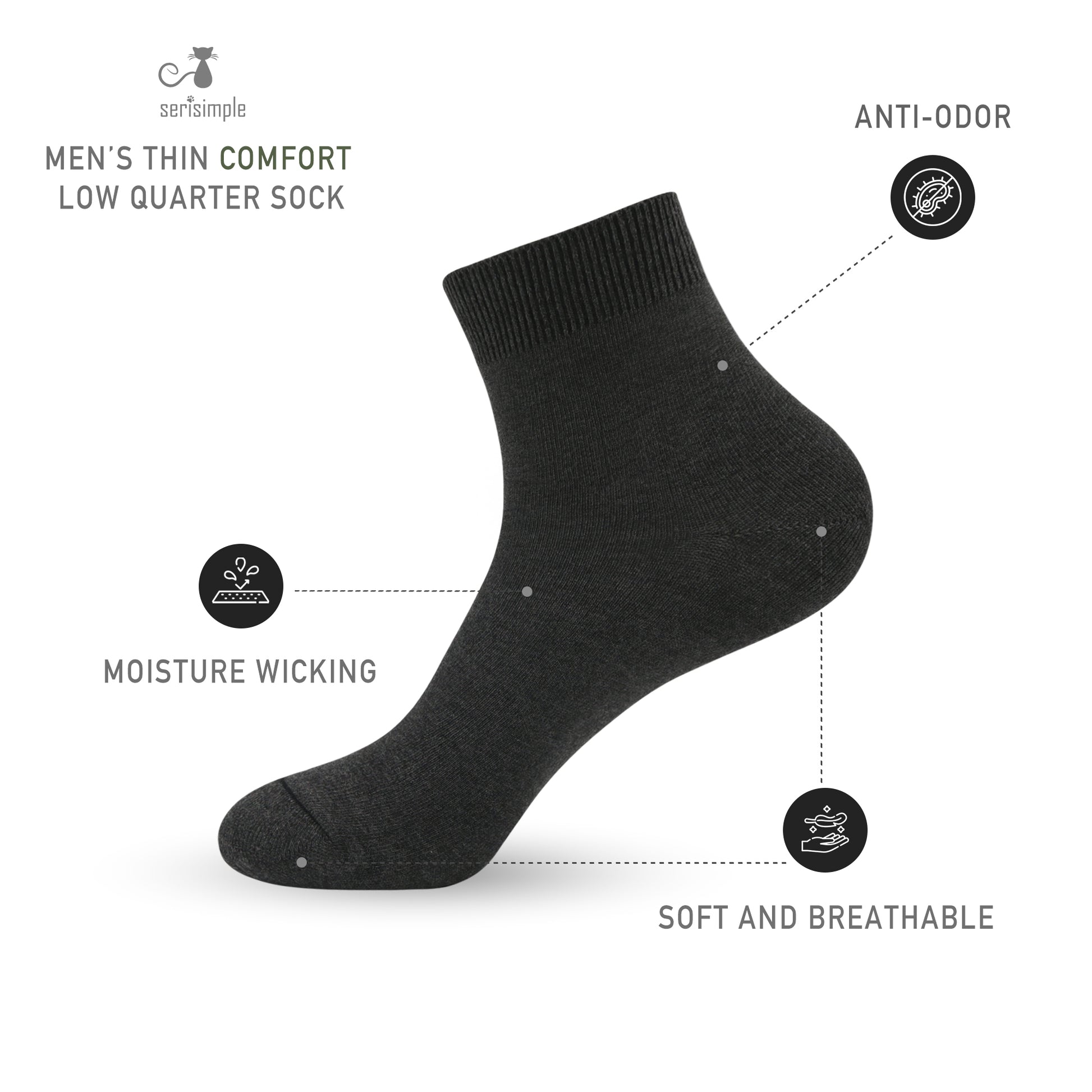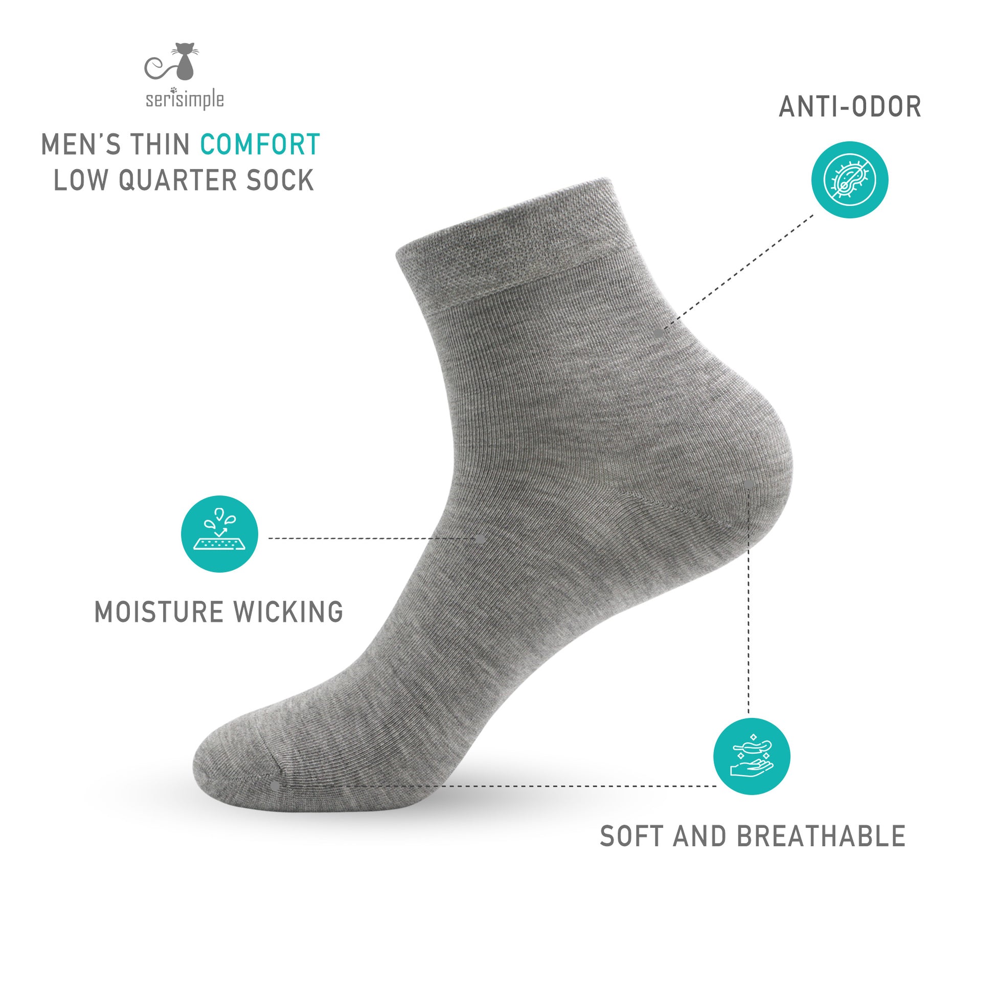 SERISIMPLE Men Viscose Bamboo Quarter Thin Ankle High Breathable Comfort Cool Soft Quarter Ankle Socks Grey Large 5 Pairs