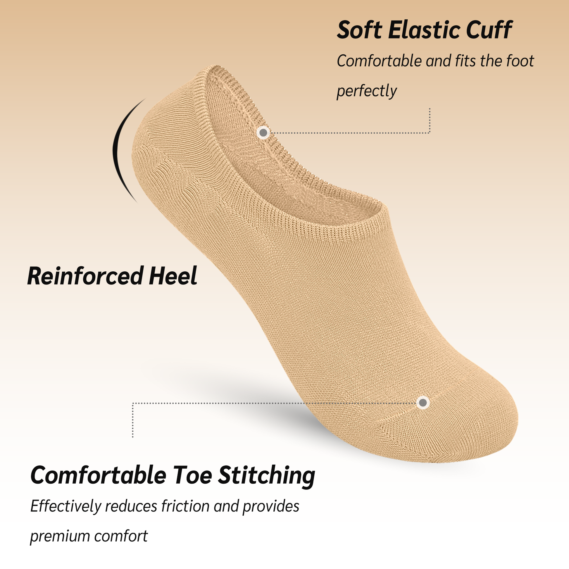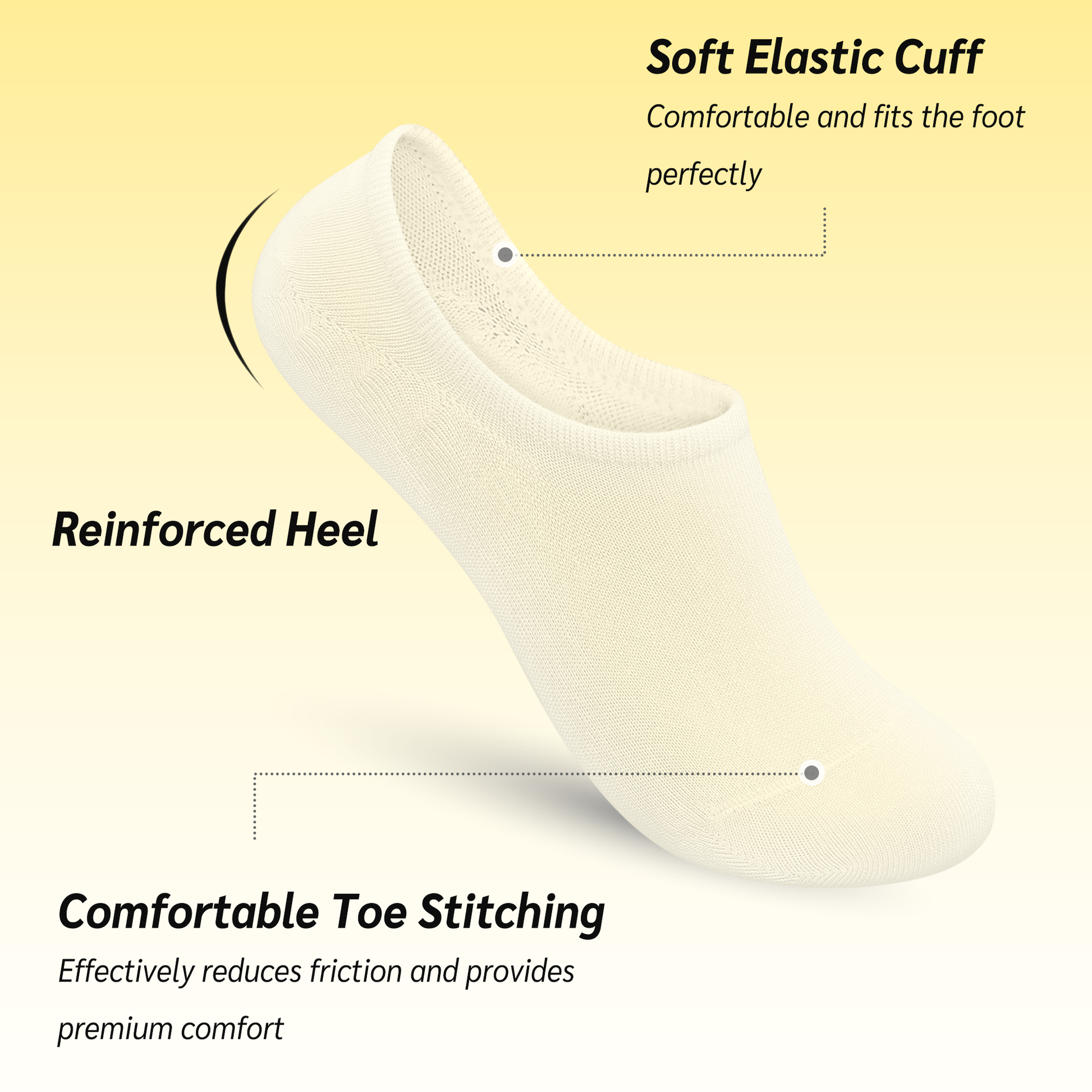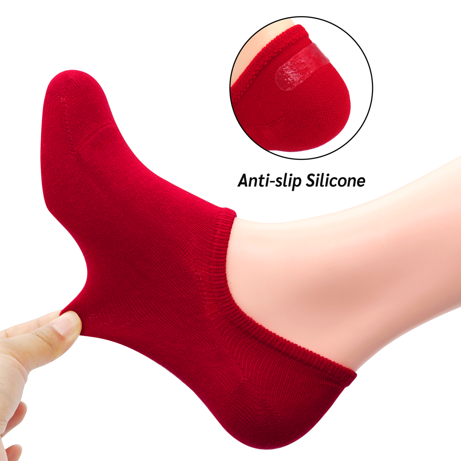 Anti-Slip Design: These women¡¯s no-show socks feature non-slip silicone grips inside the heel, ensuring they stay securely in place and won¡¯t easily slip off, providing you with comfort and confidence throughout the day.