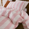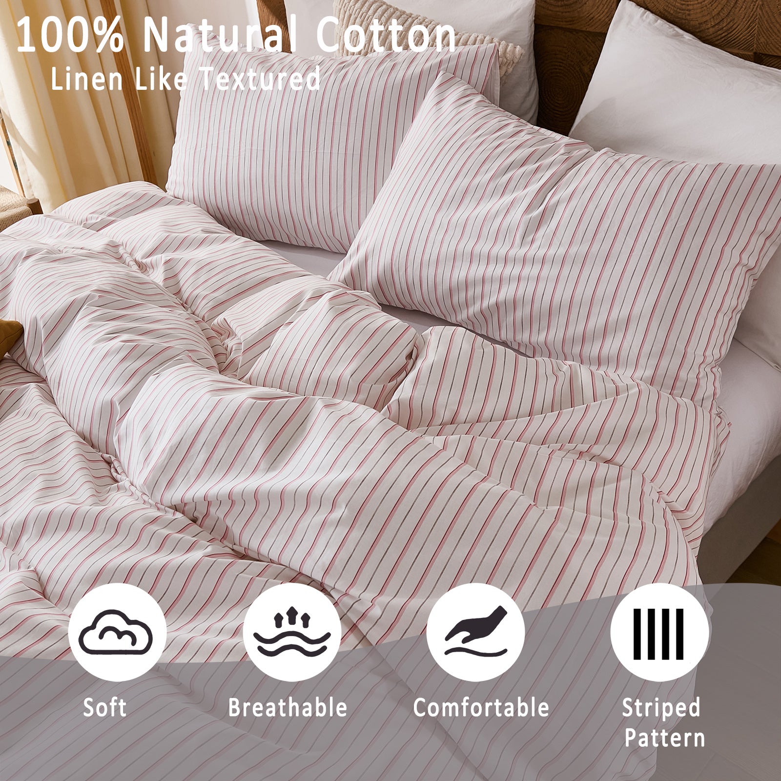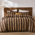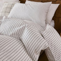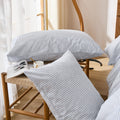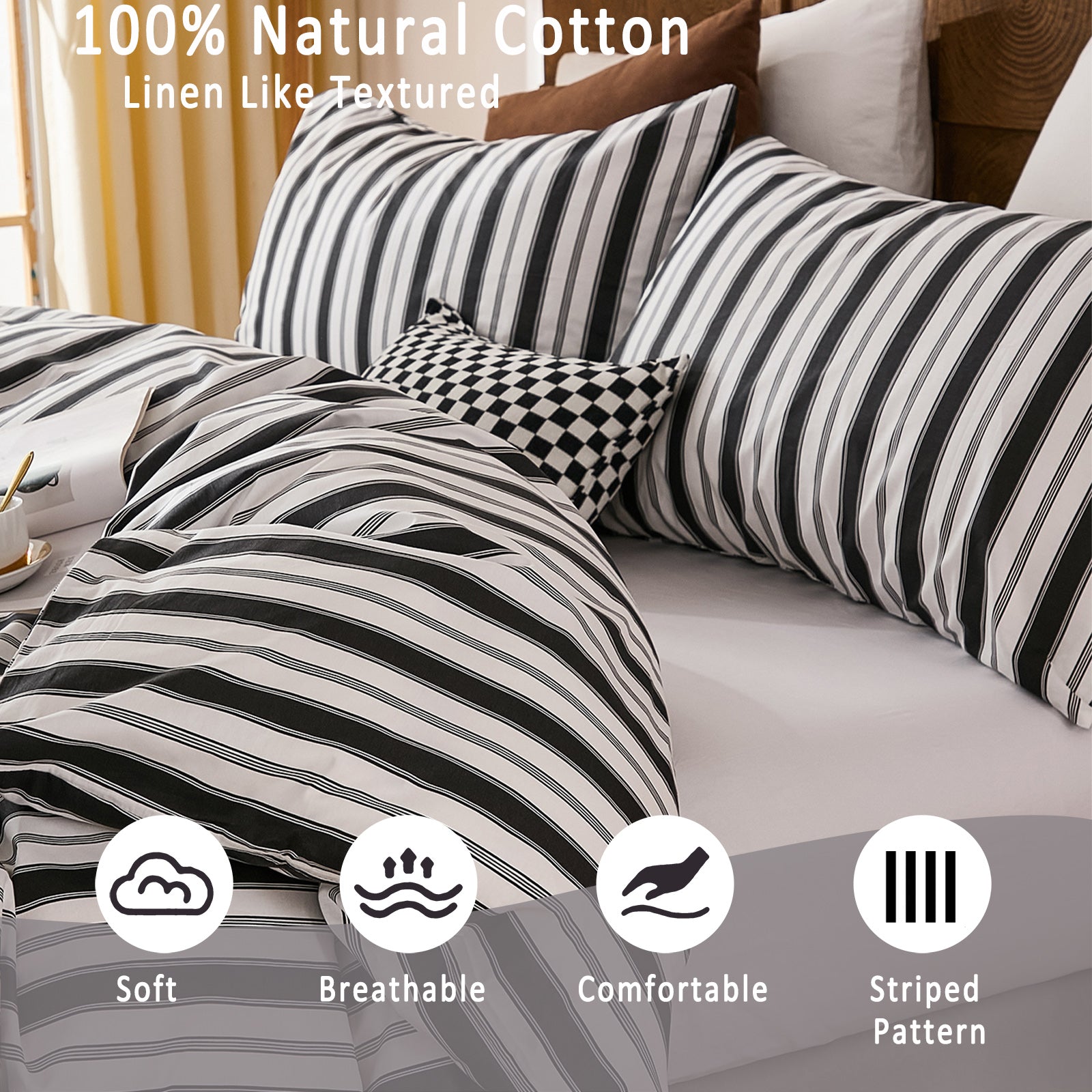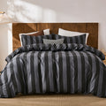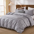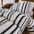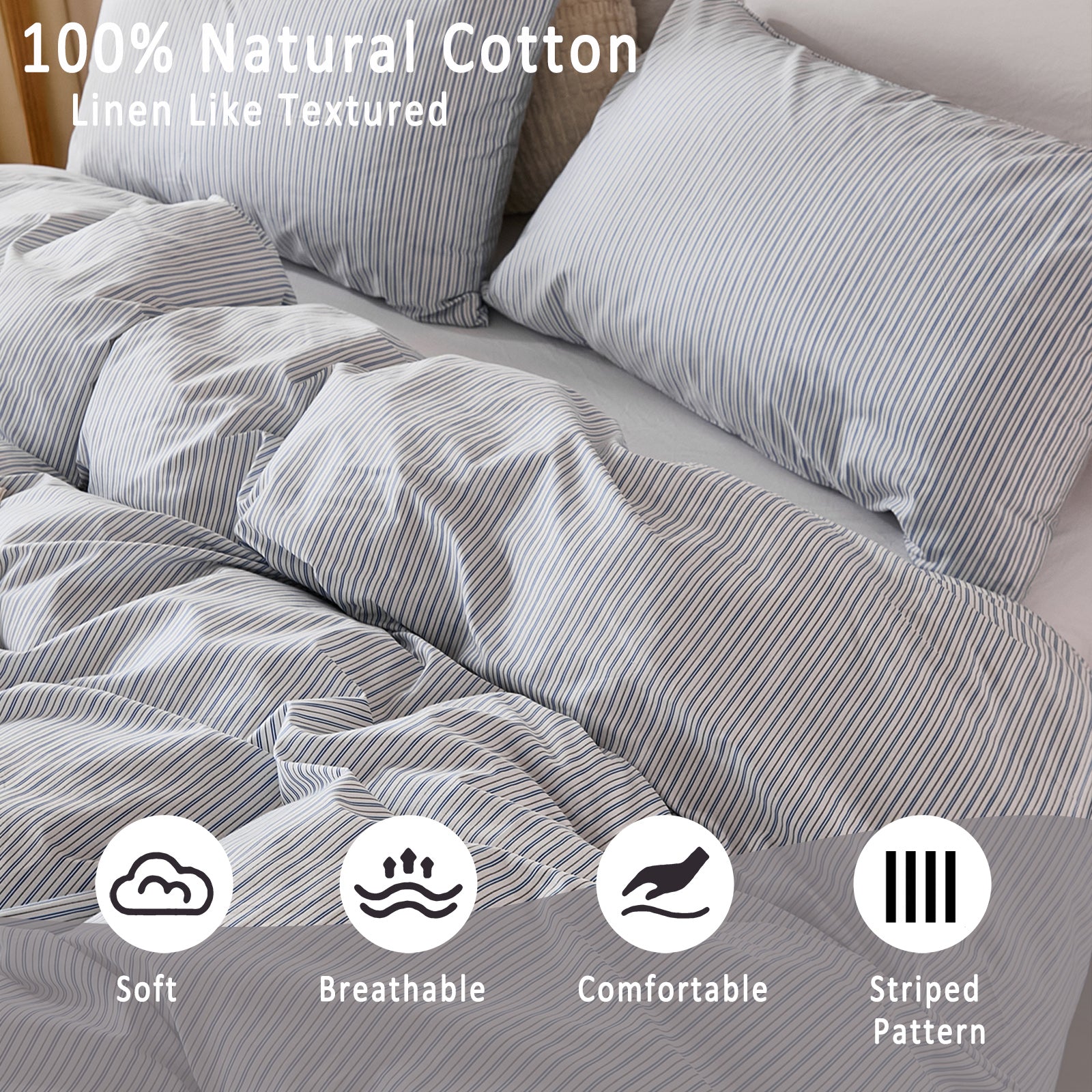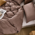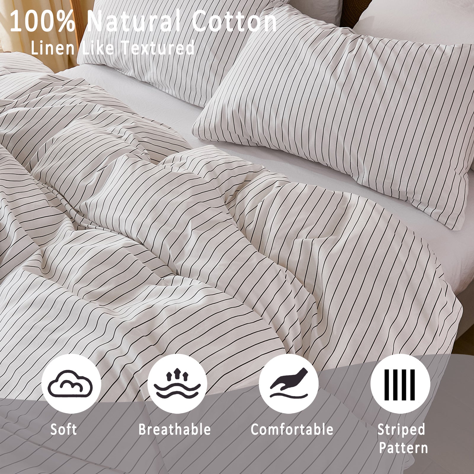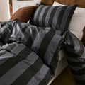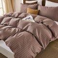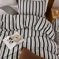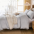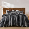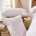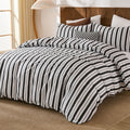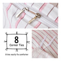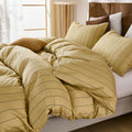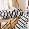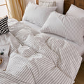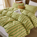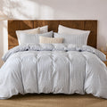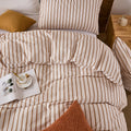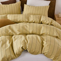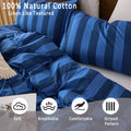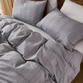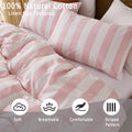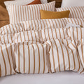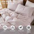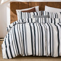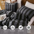 Striped Cotton Duvet Cover Set - Linen Like Reversible Bedding with Zipper and 8 Corner Ties, Soft All Season Cover,
