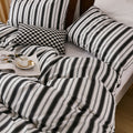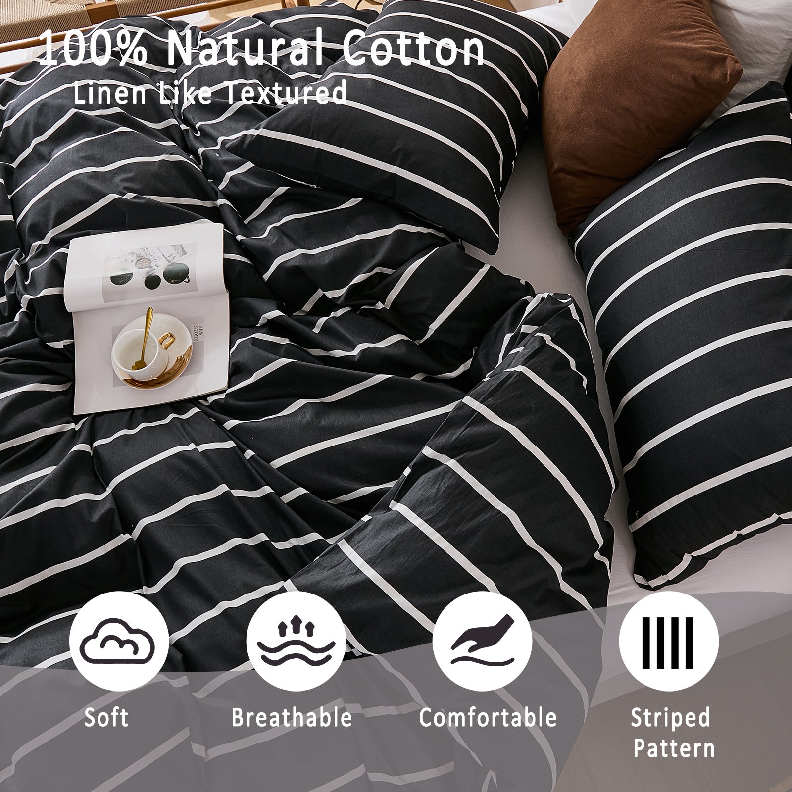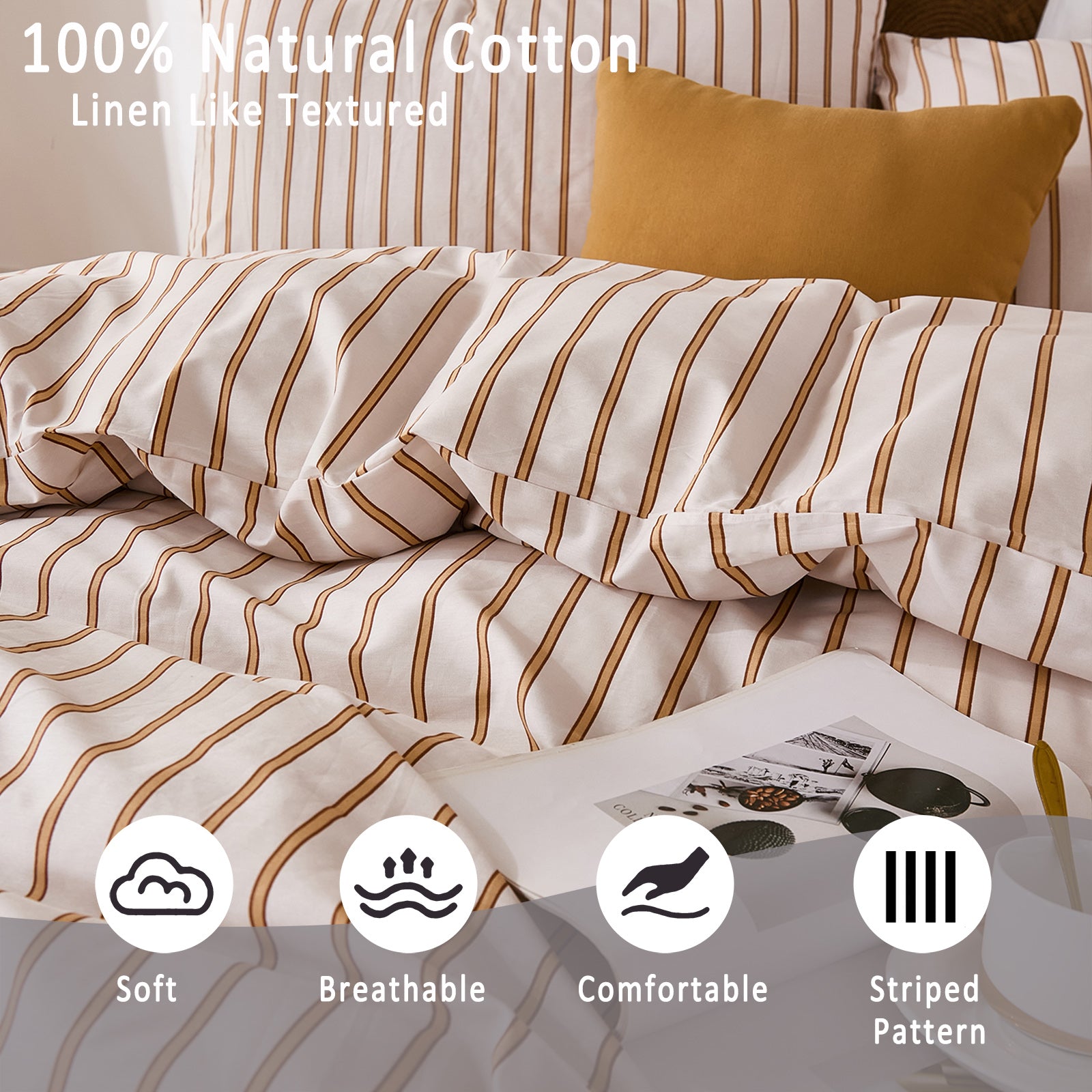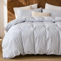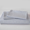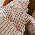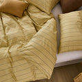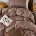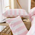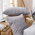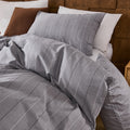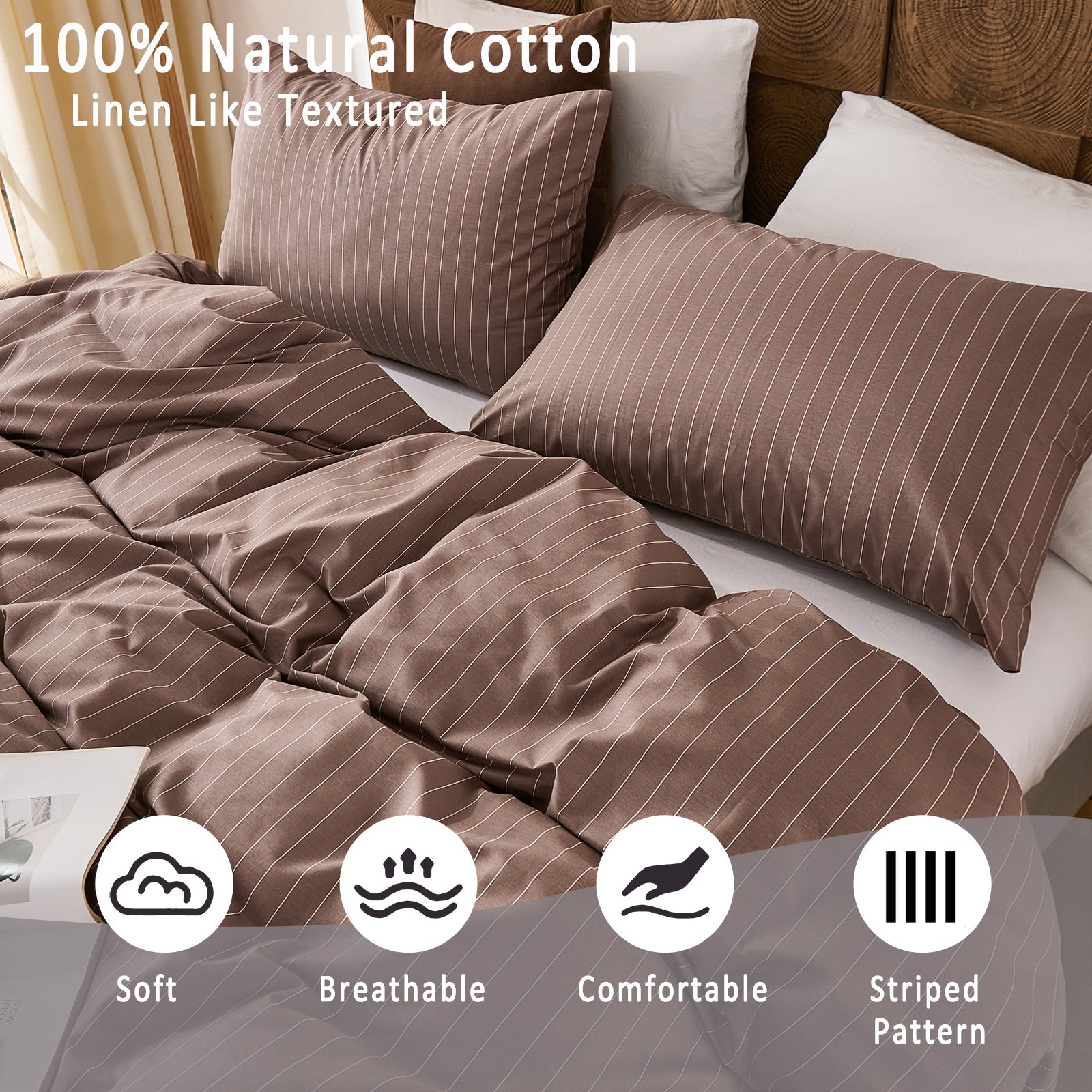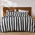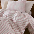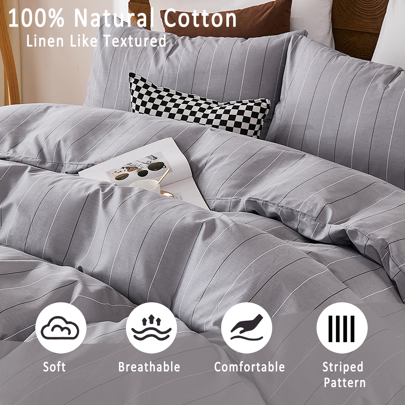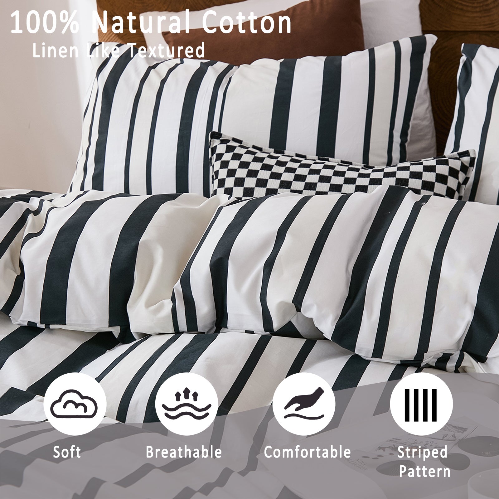 Striped Cotton Duvet Cover Set - Linen Like Reversible Bedding with Zipper and 8 Corner Ties, Soft All Season Cover,