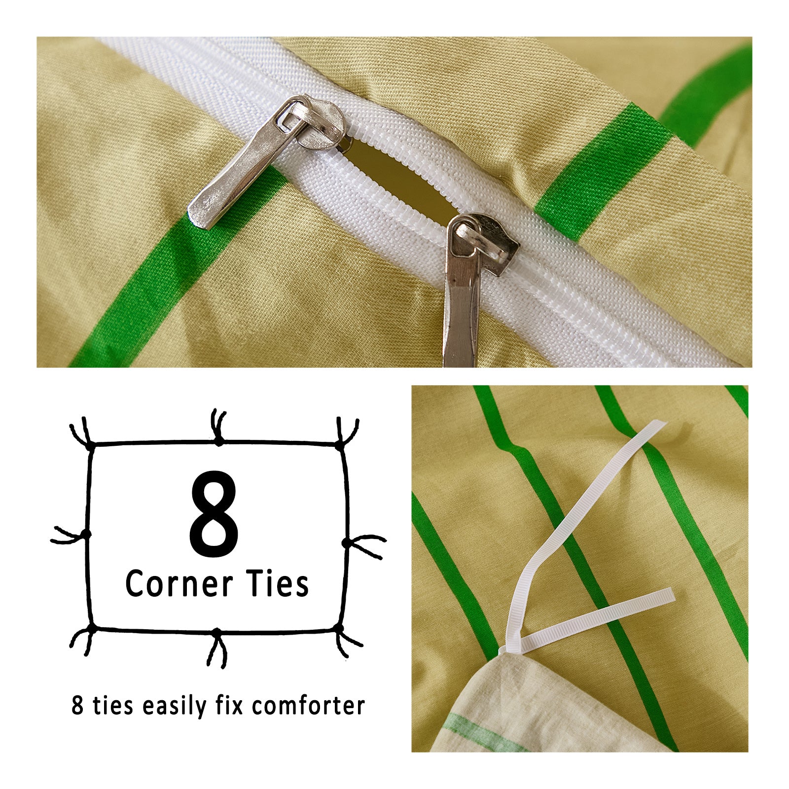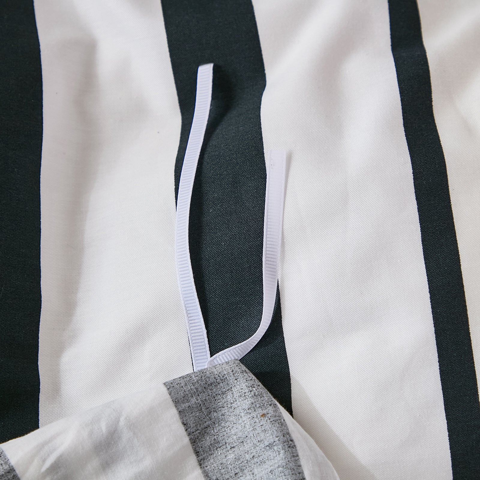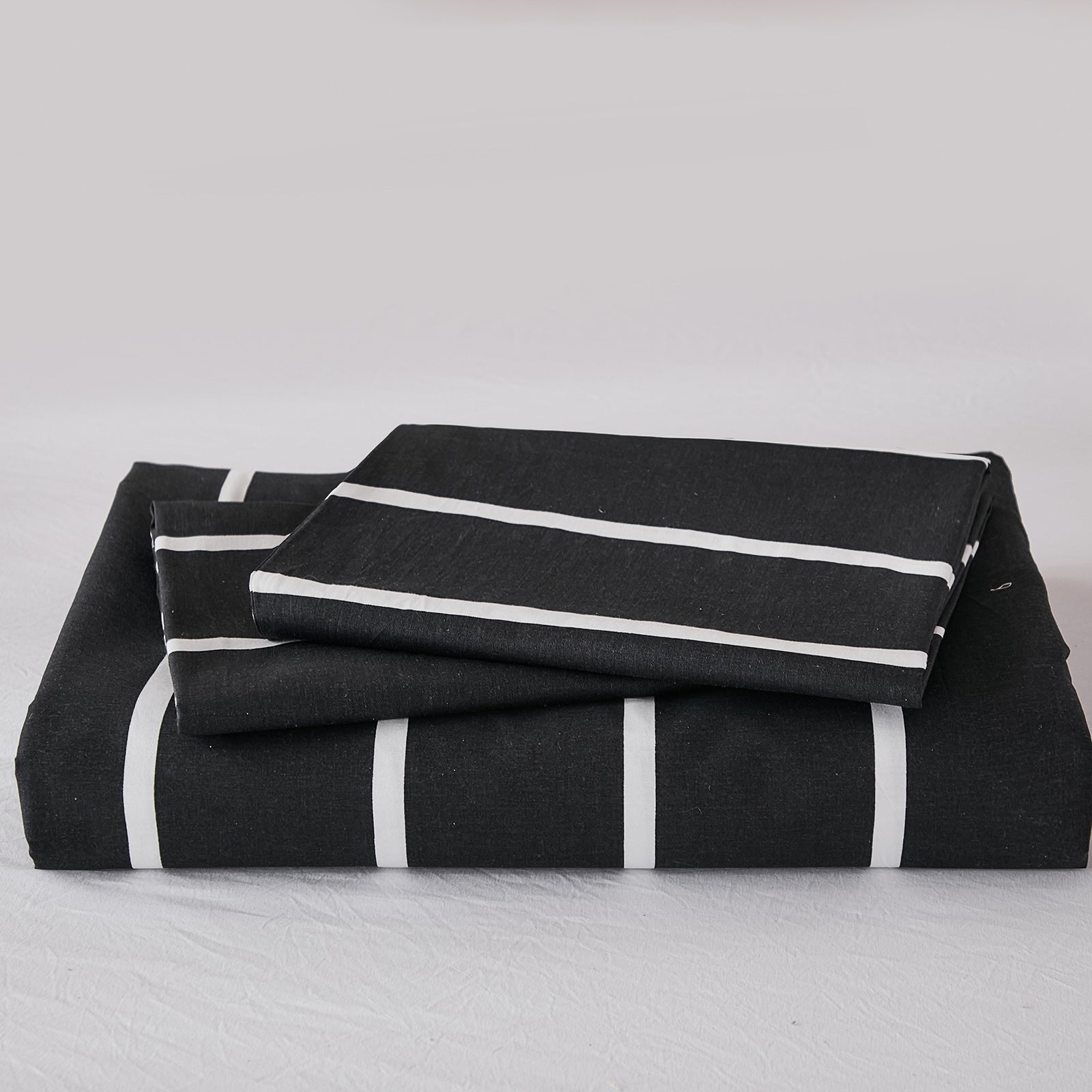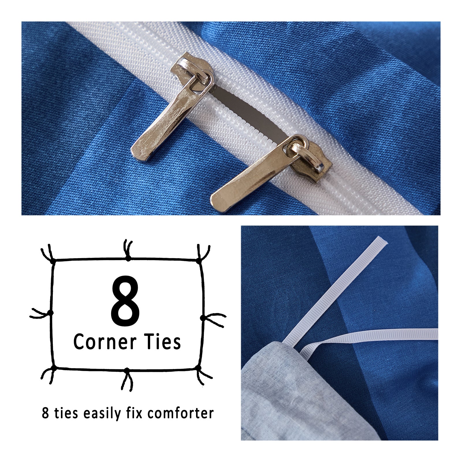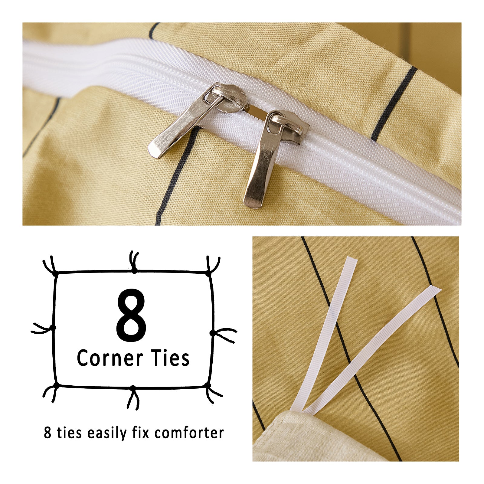 Striped Cotton Duvet Cover Set - Linen Like Reversible Bedding with Zipper and 8 Corner Ties, Soft All Season Cover,