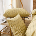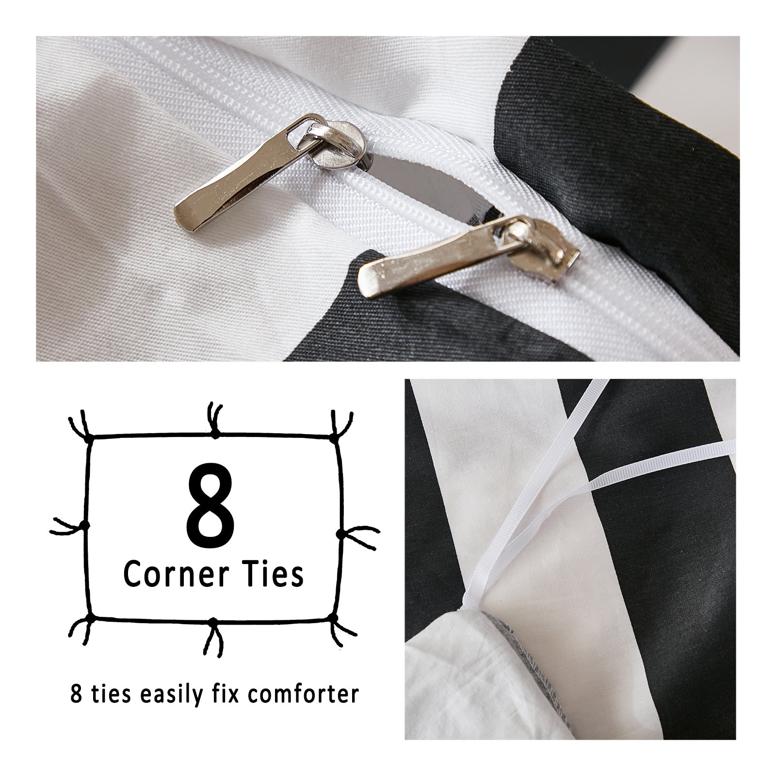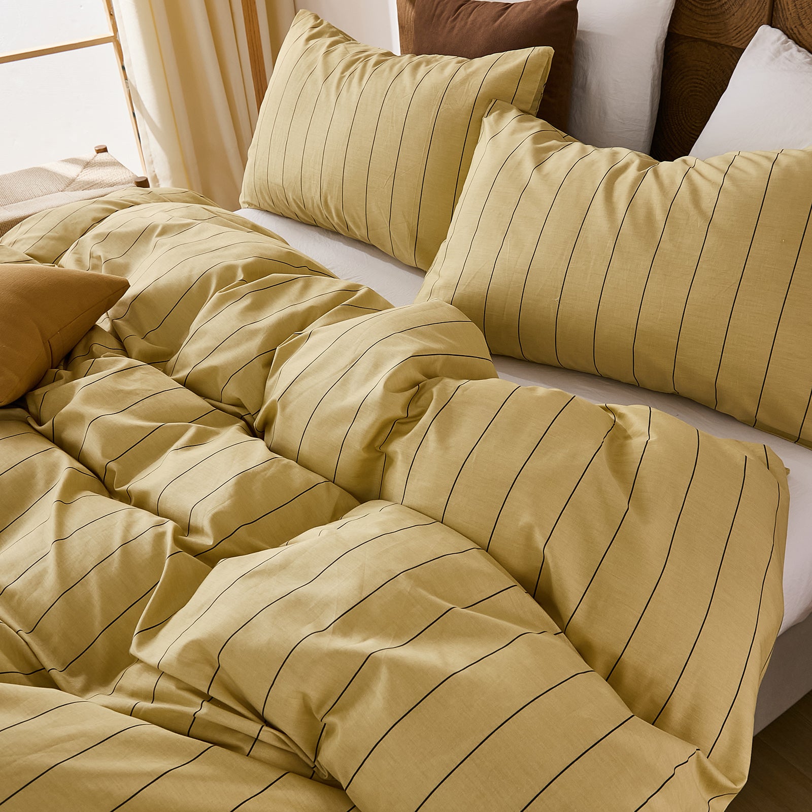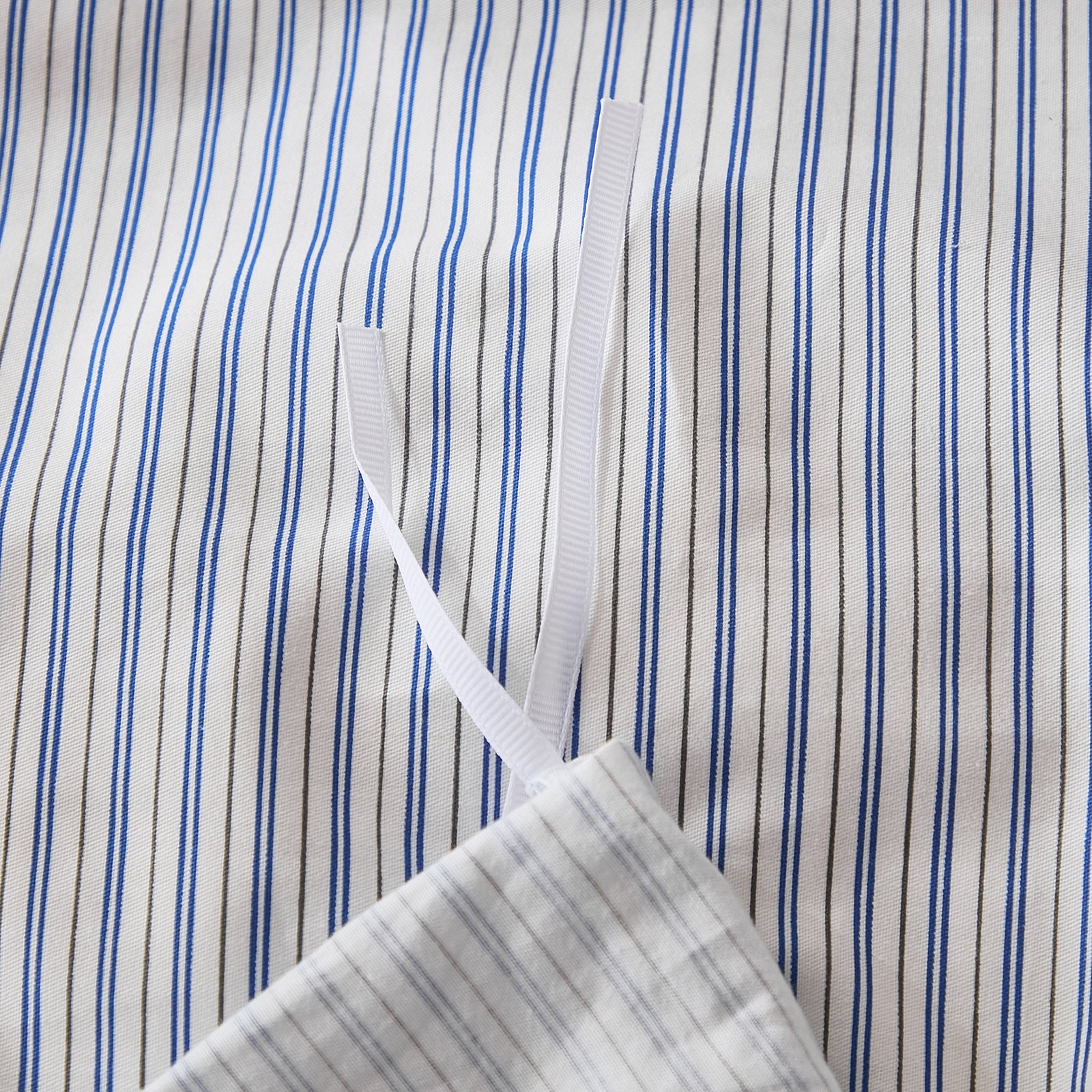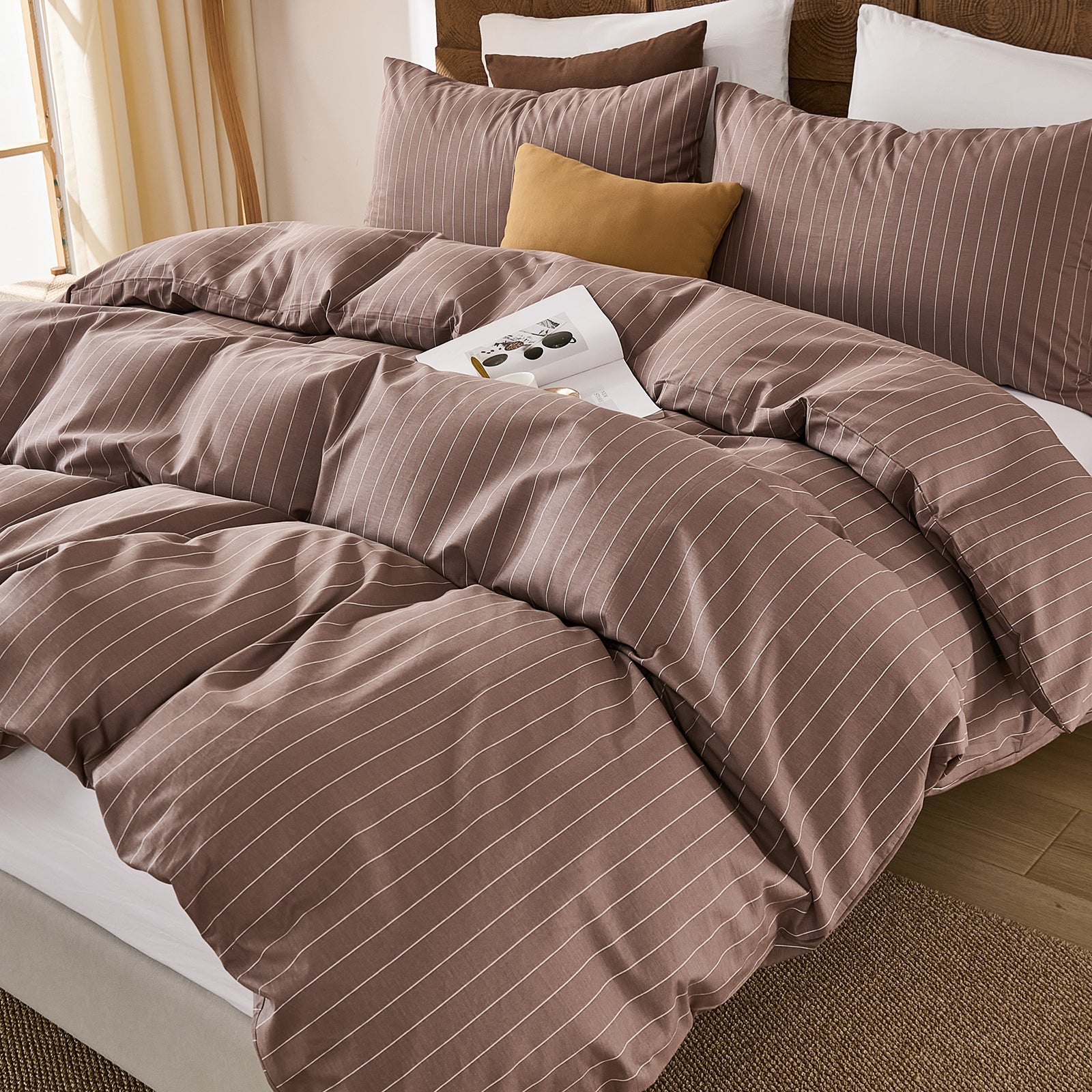 Striped Cotton Duvet Cover Set - Linen Like Reversible Bedding with Zipper and 8 Corner Ties, Soft All Season Cover,