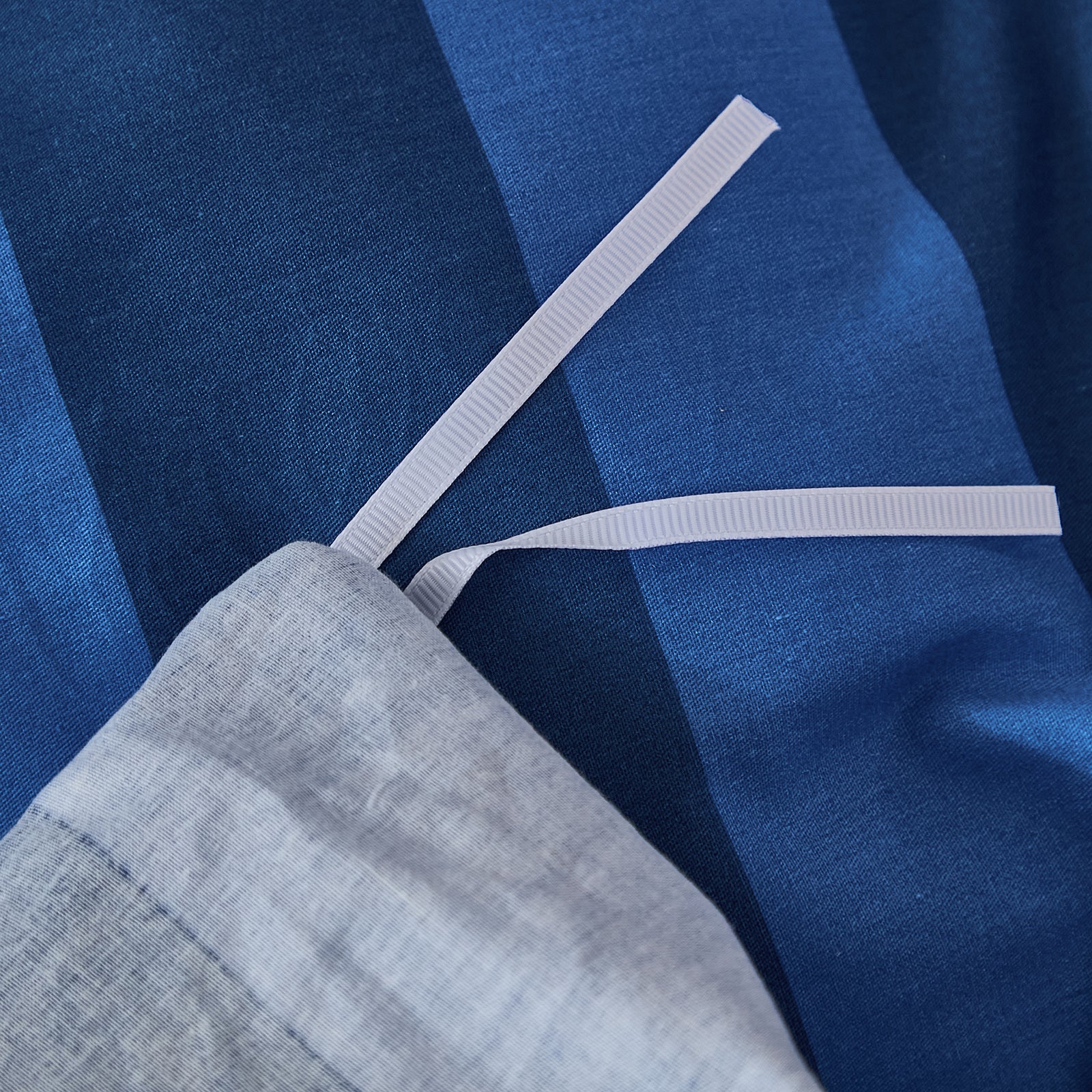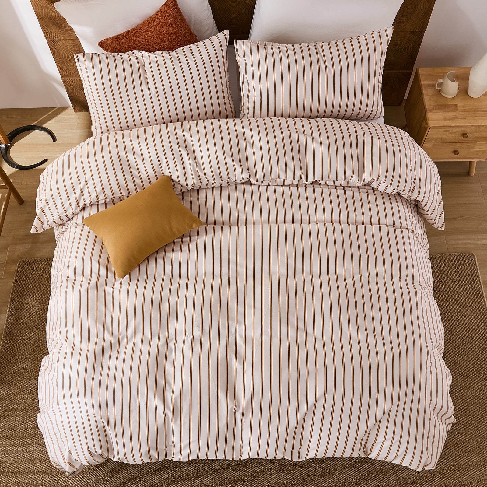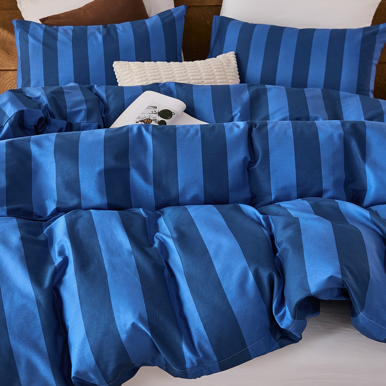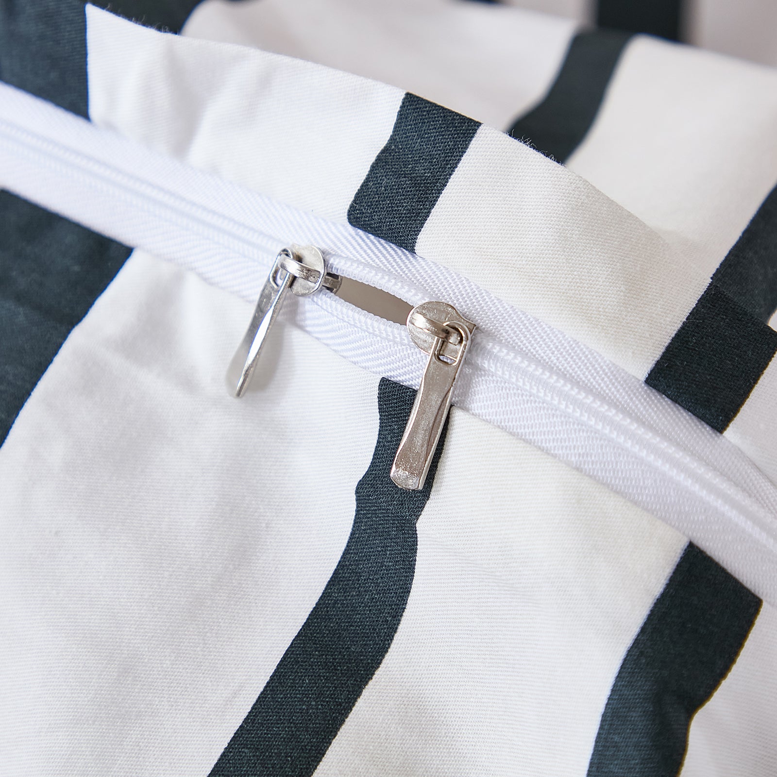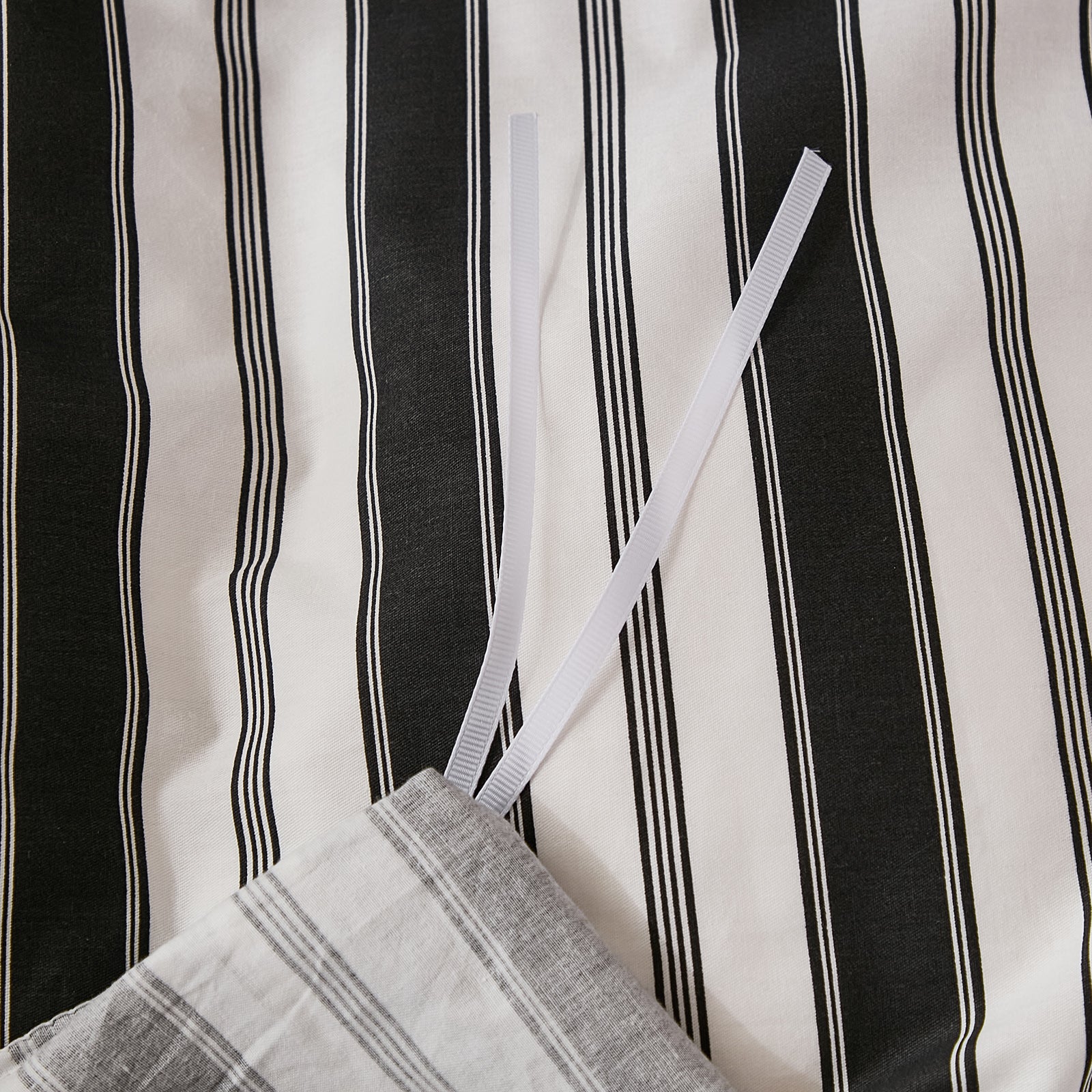 Striped Cotton Duvet Cover Set - Linen Like Reversible Bedding with Zipper and 8 Corner Ties, Soft All Season Cover,