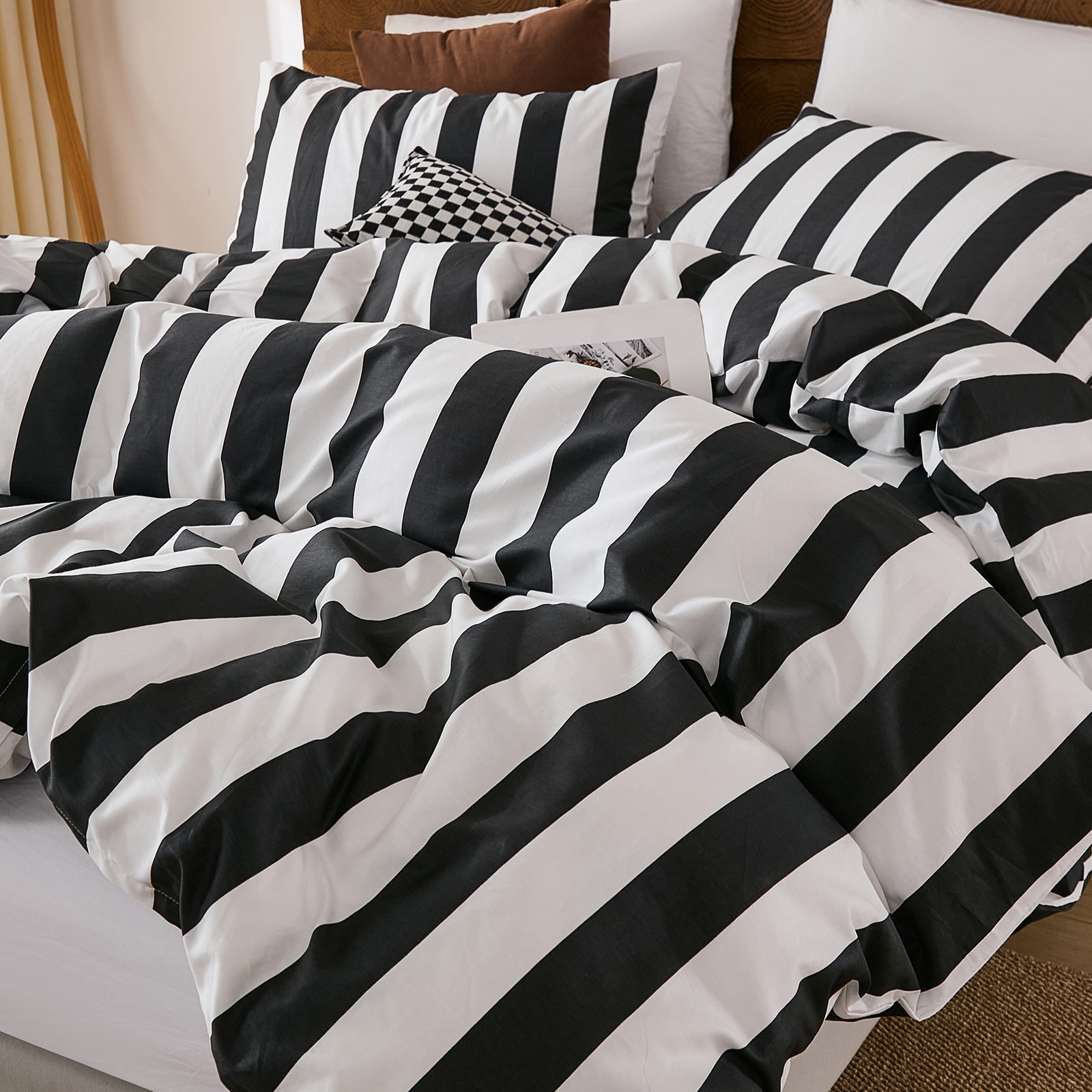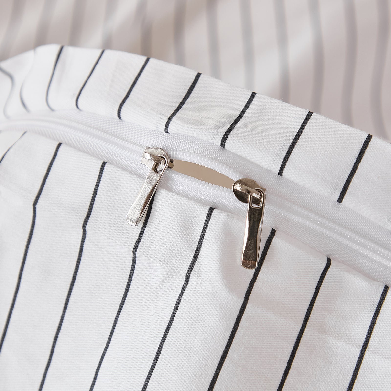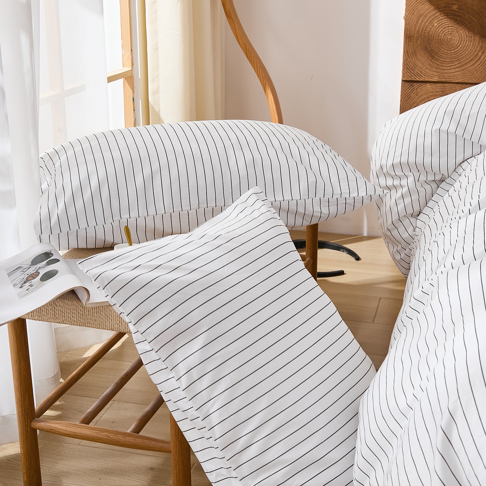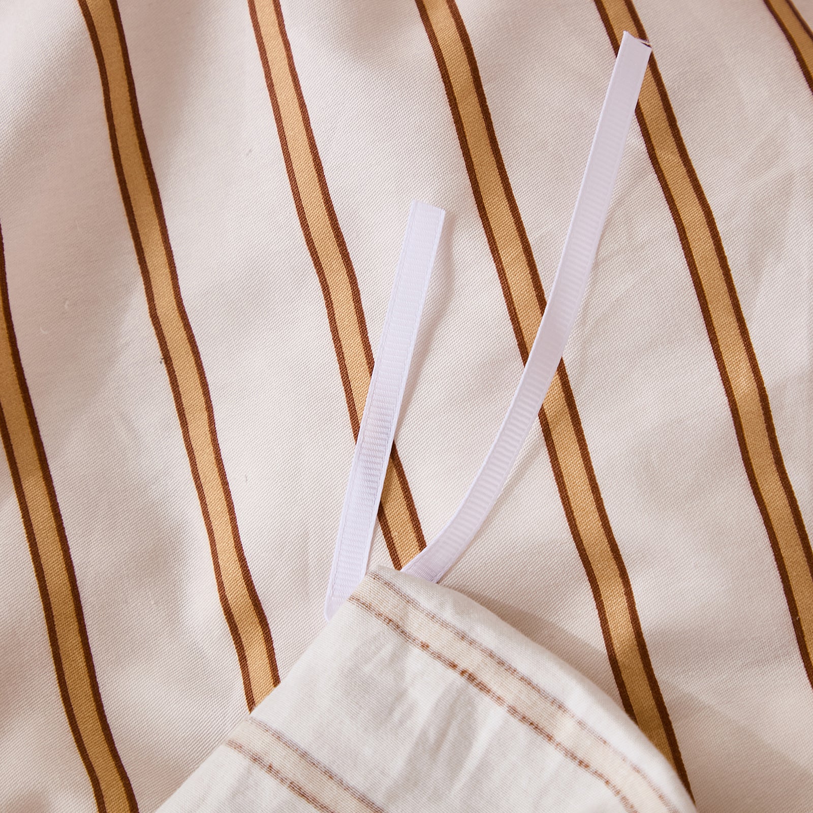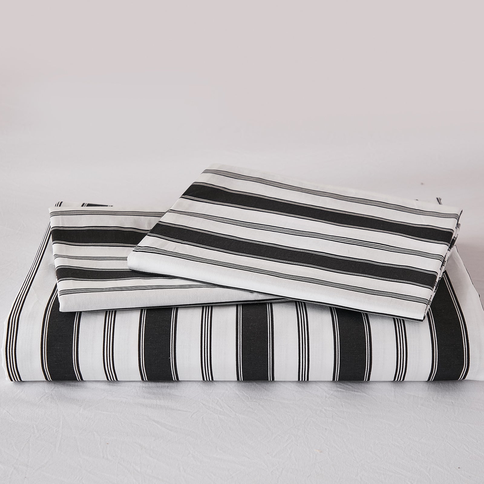 Striped Cotton Duvet Cover Set - Linen Like Reversible Bedding with Zipper and 8 Corner Ties, Soft All Season Cover,