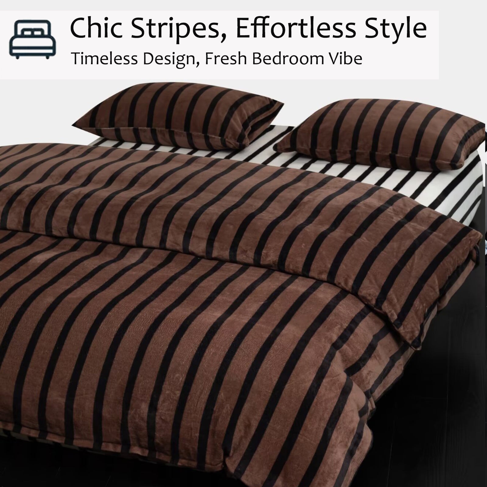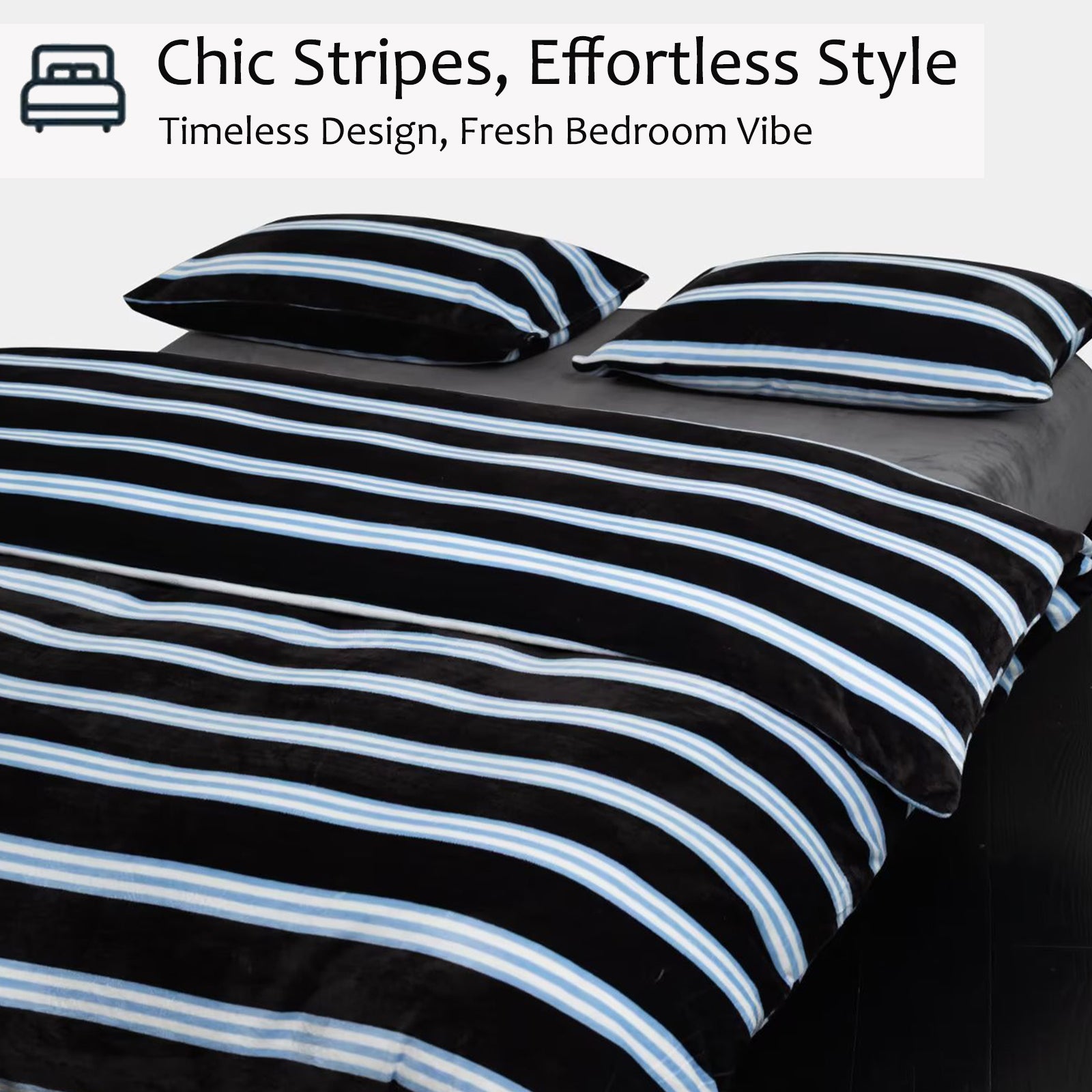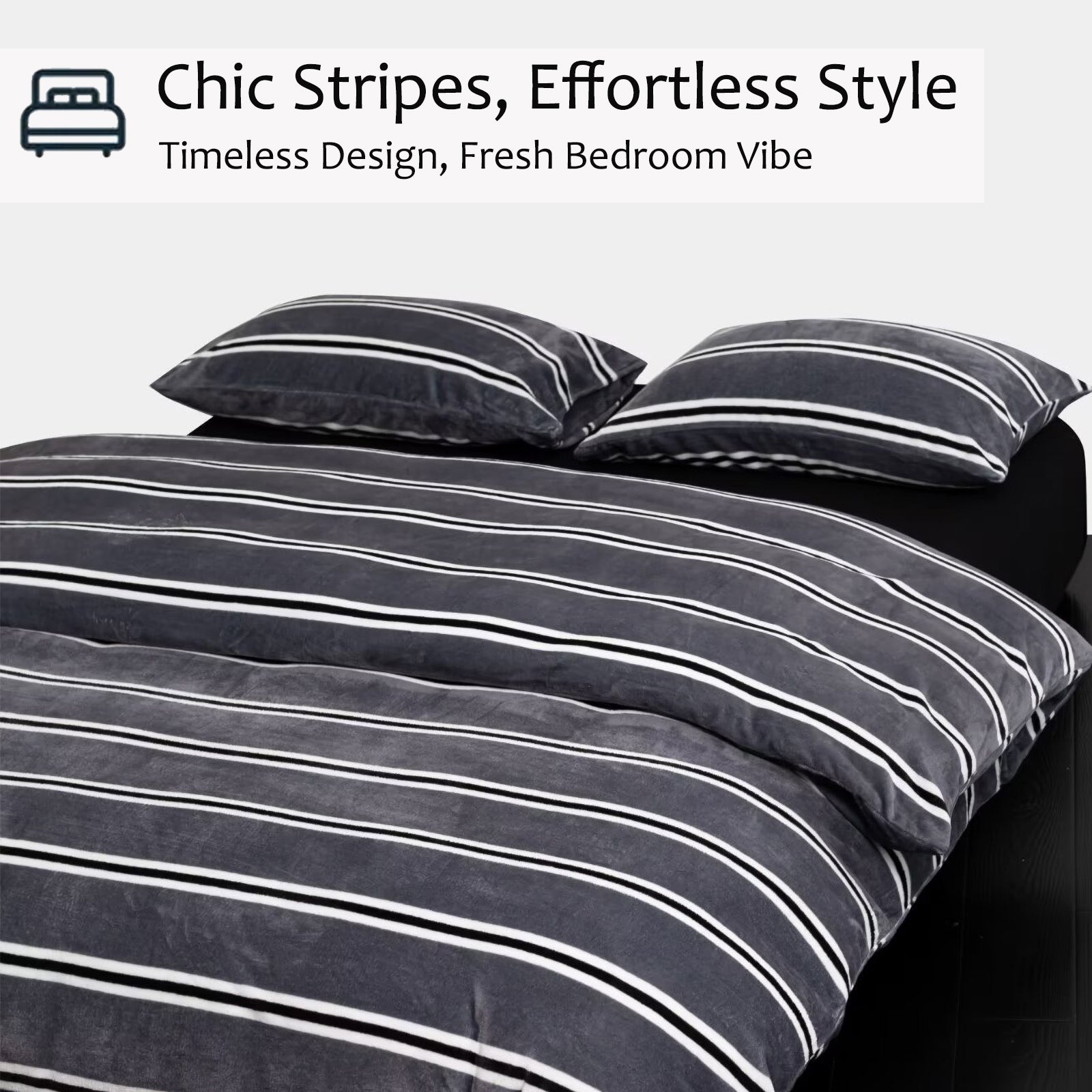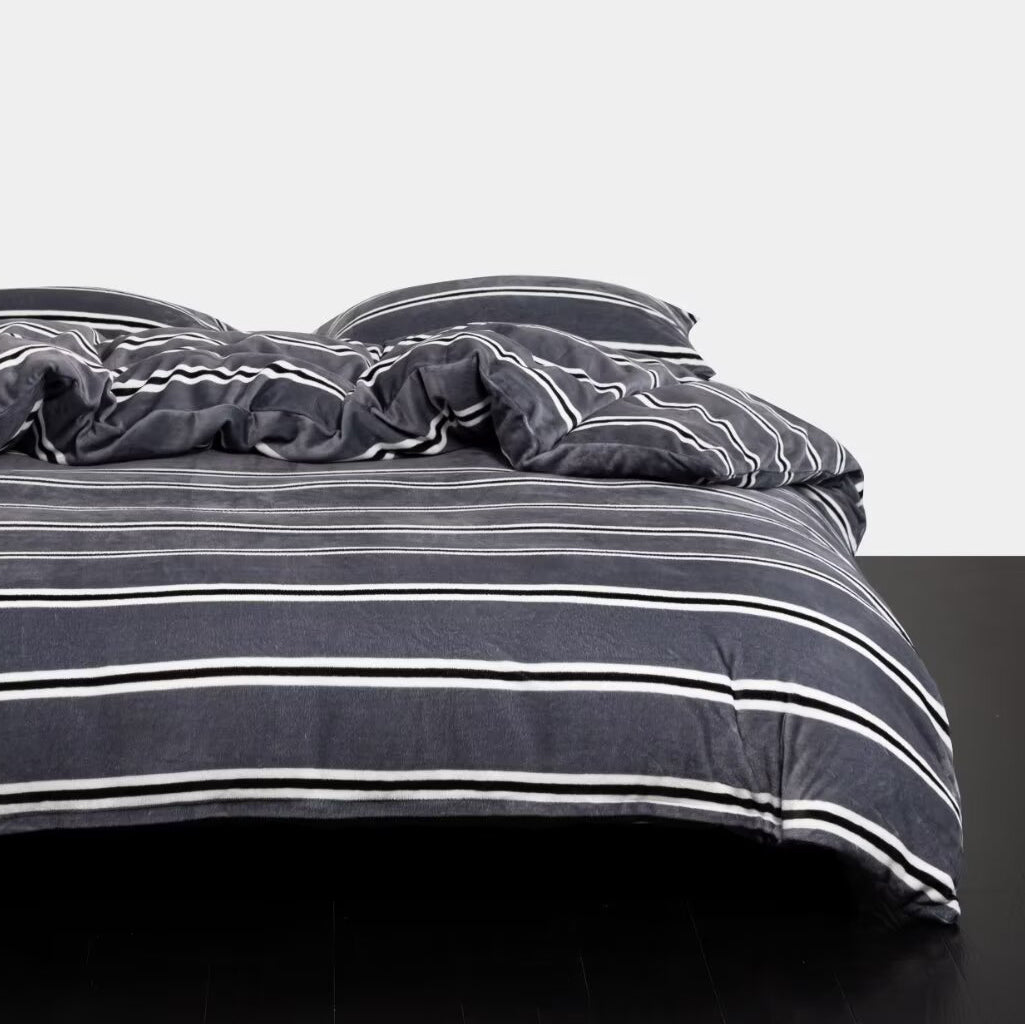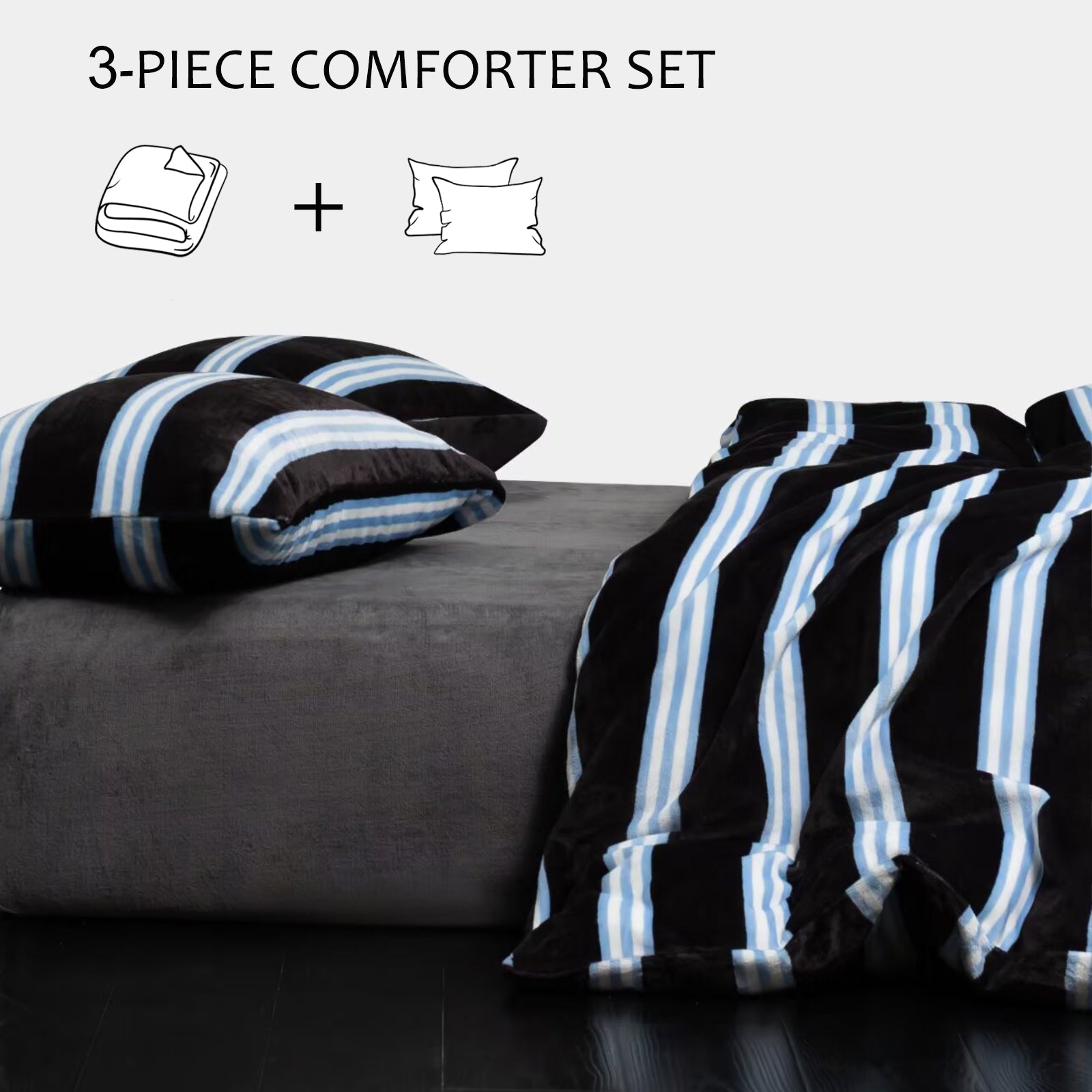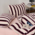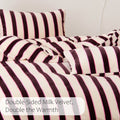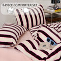 Striped Velvet Fleece Comforter Set – 3-Piece Cozy Reversible Flannel Bedding, Soft Warm All-Season Quilt with Pillowcases