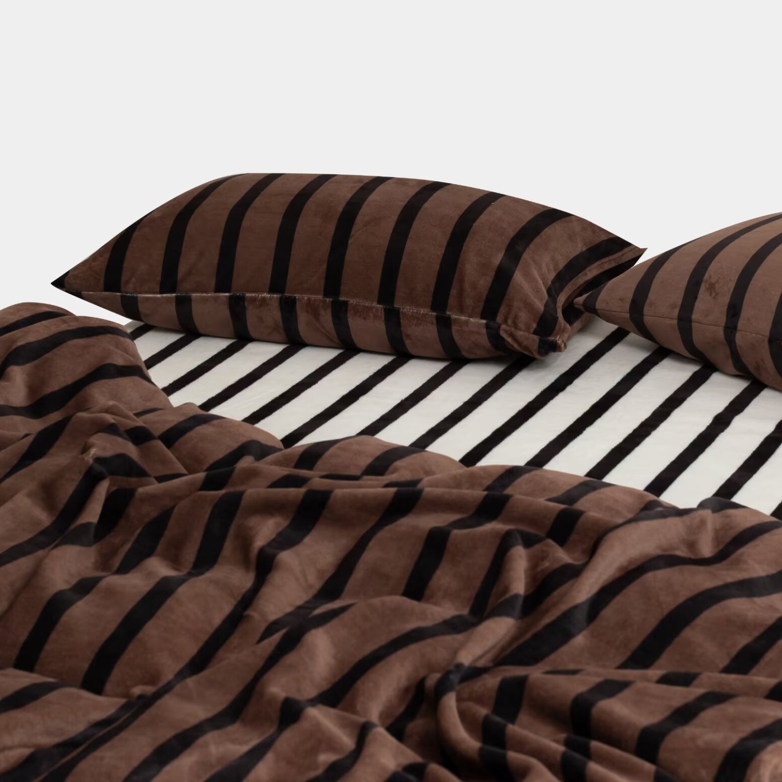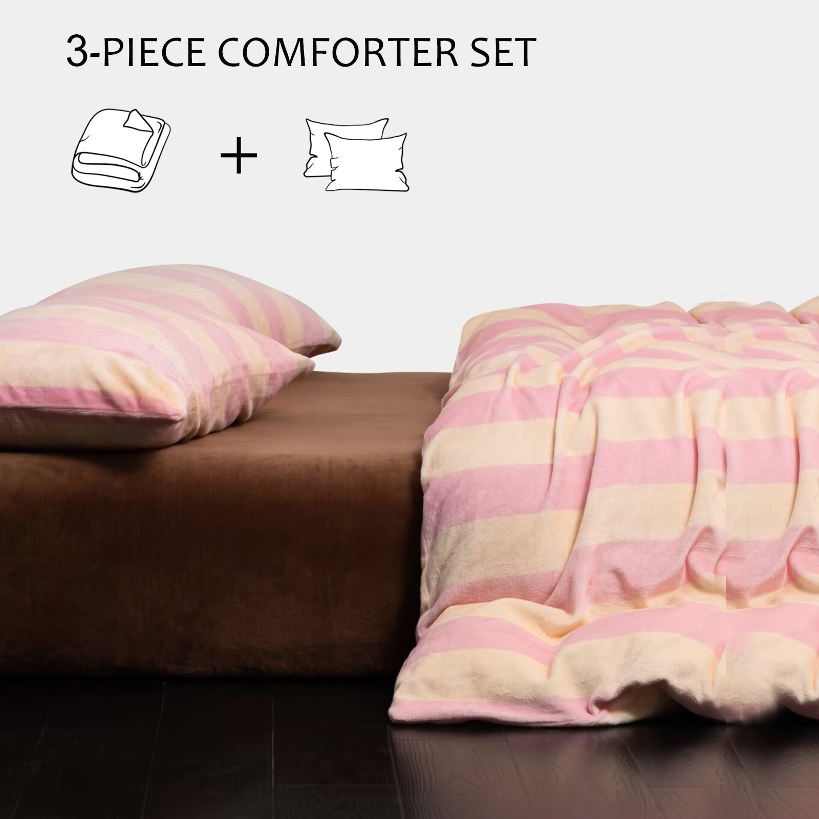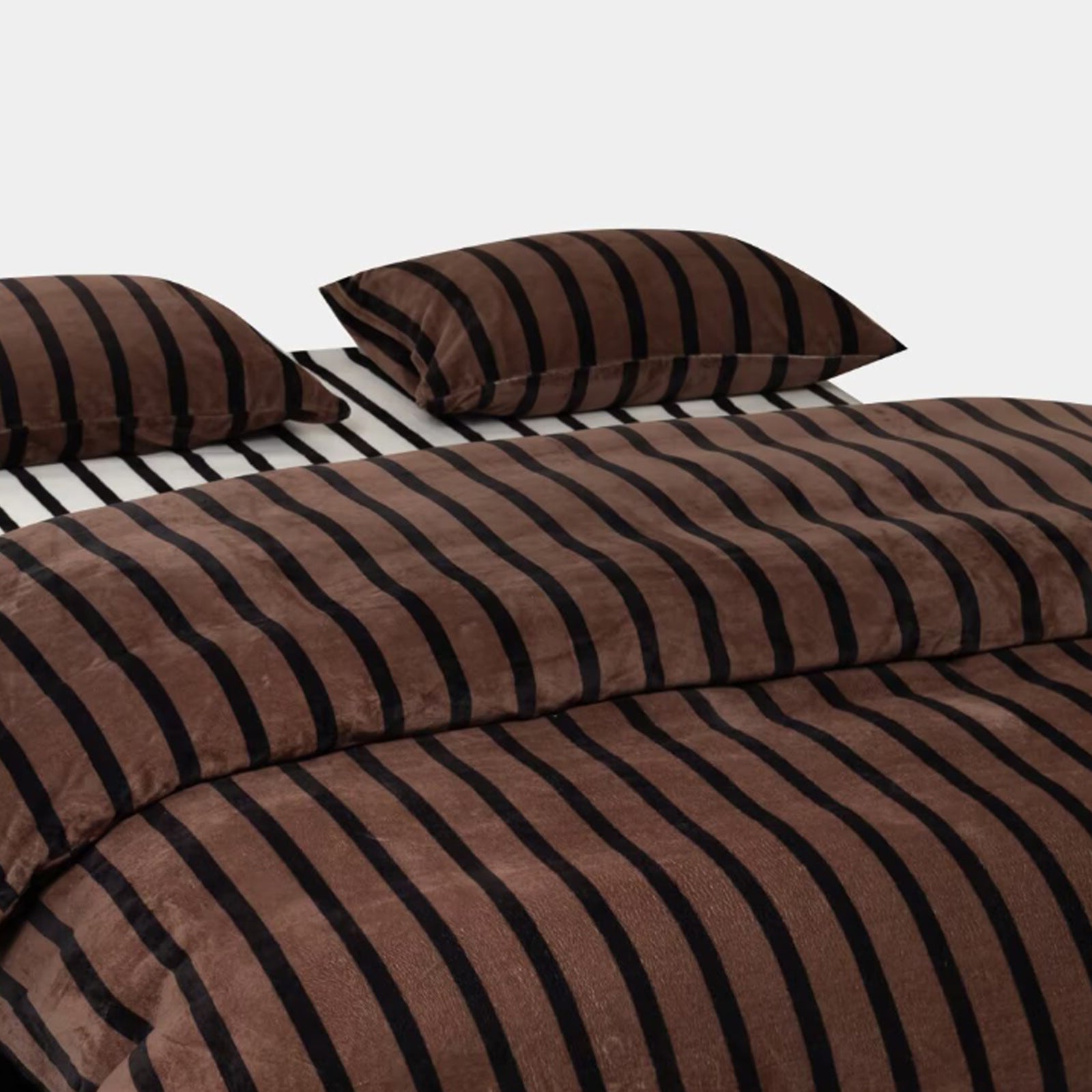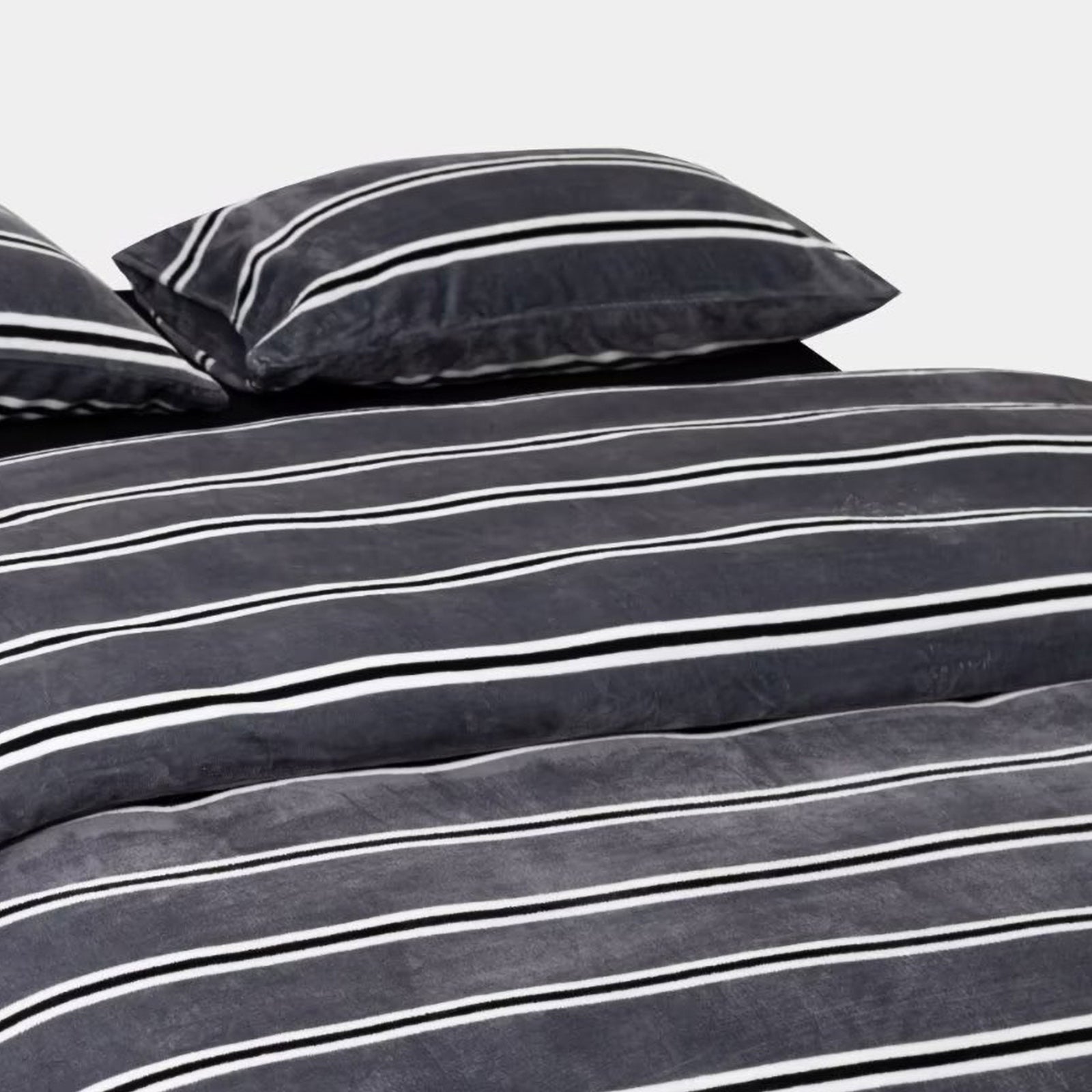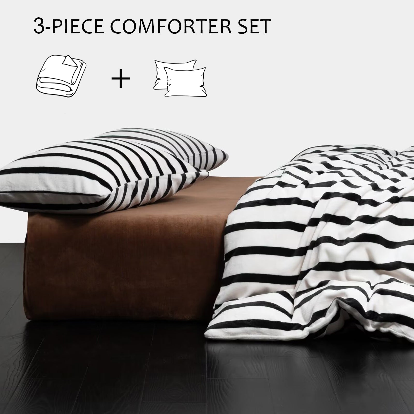 Striped Velvet Fleece Comforter Set – 3-Piece Cozy Reversible Flannel Bedding, Soft Warm All-Season Quilt with Pillowcases