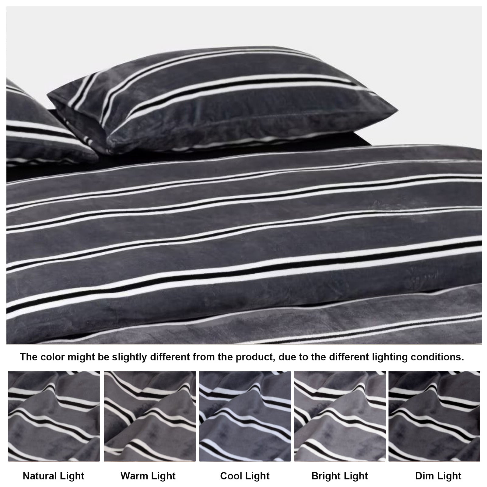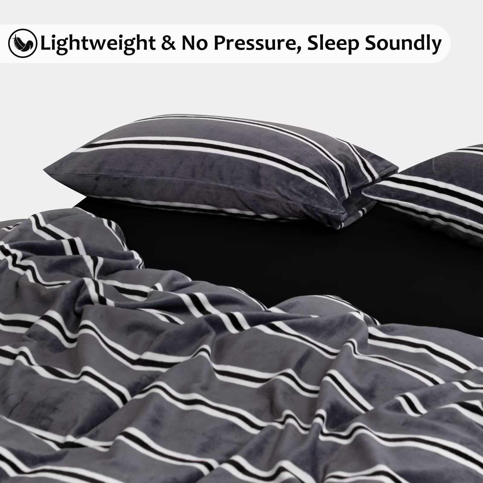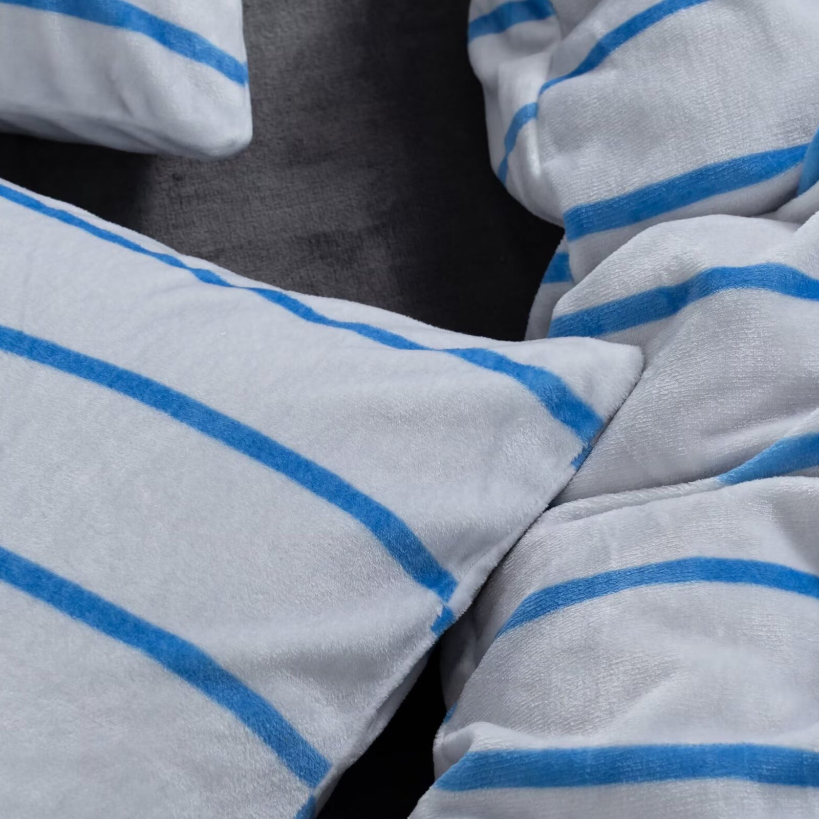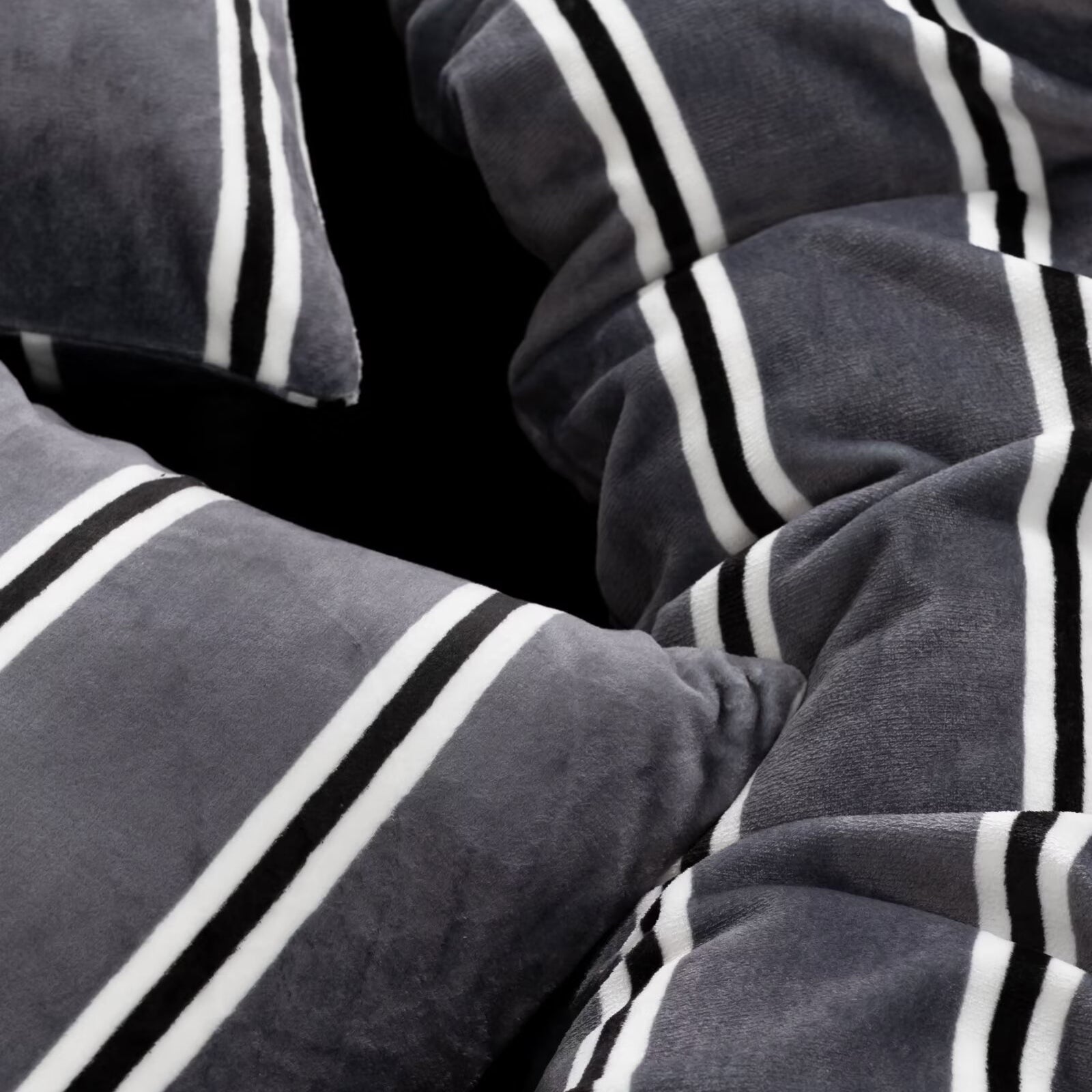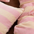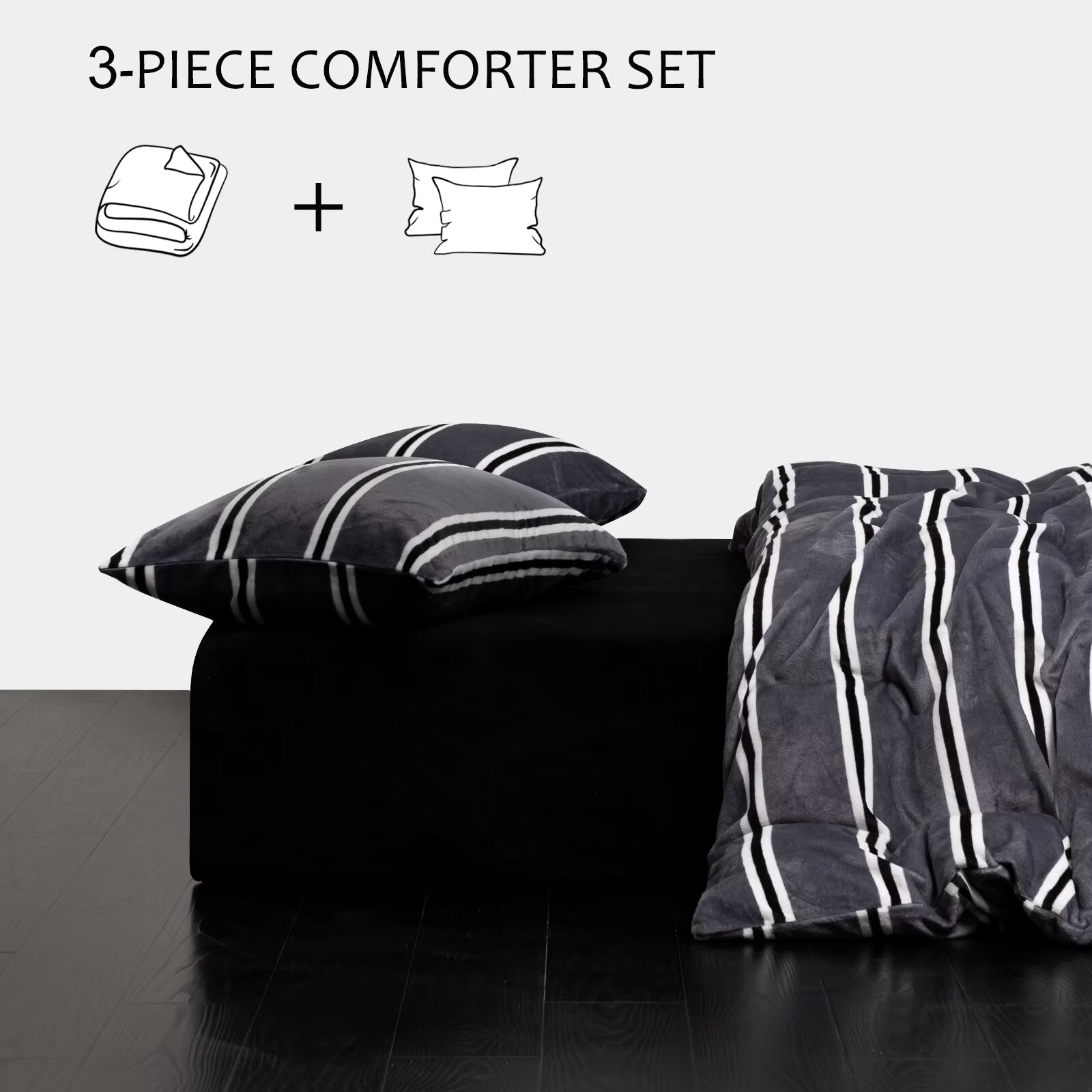 Striped Velvet Fleece Comforter Set – 3-Piece Cozy Reversible Flannel Bedding, Soft Warm All-Season Quilt with Pillowcases