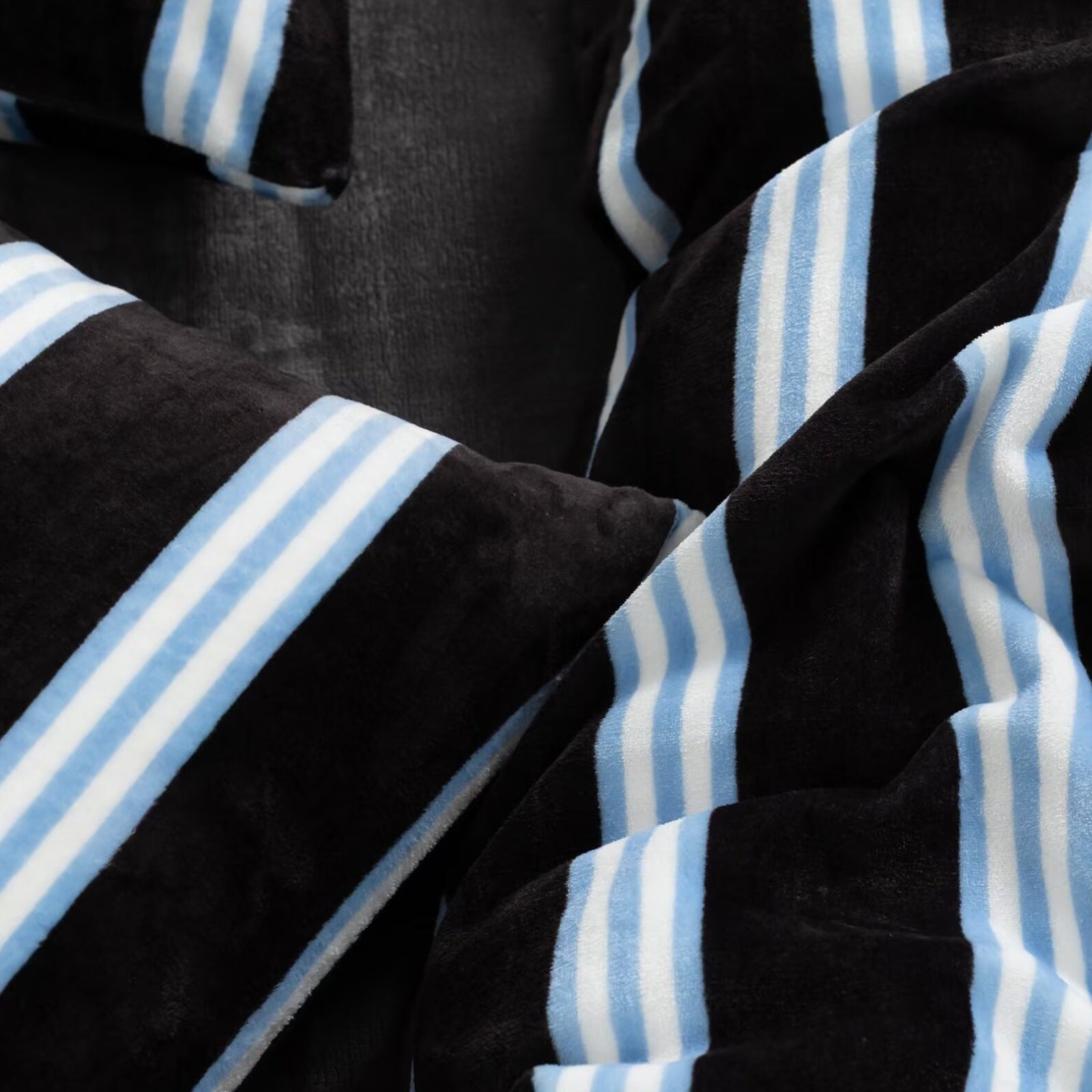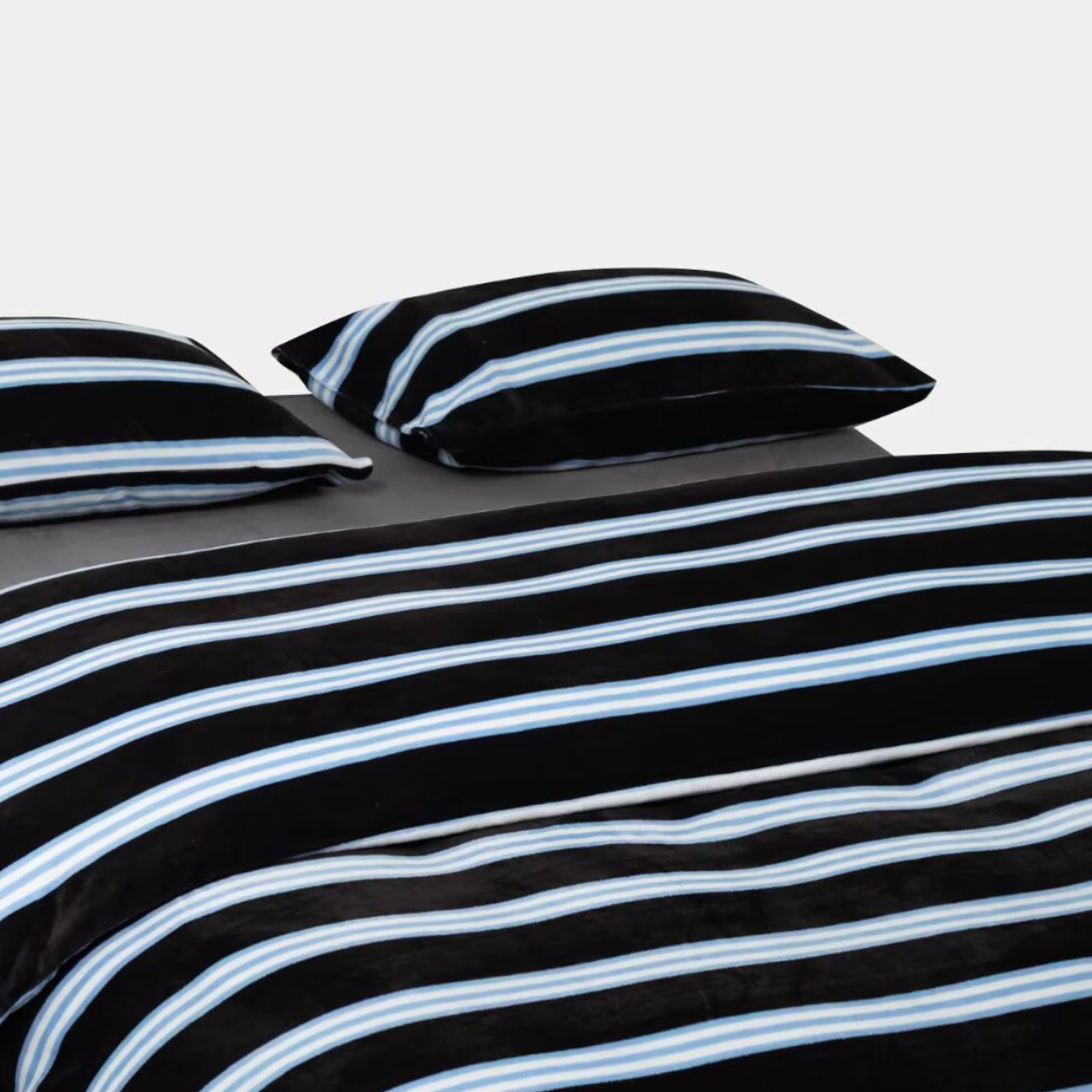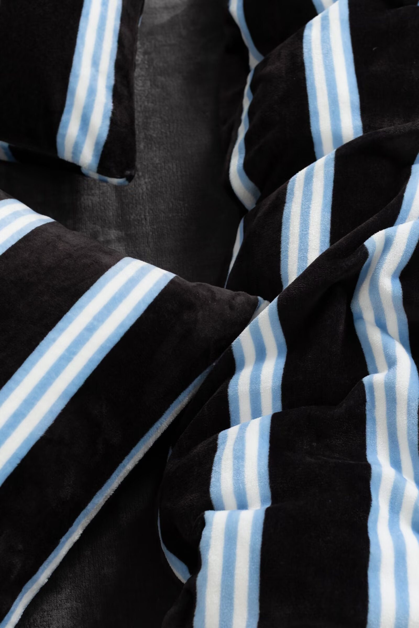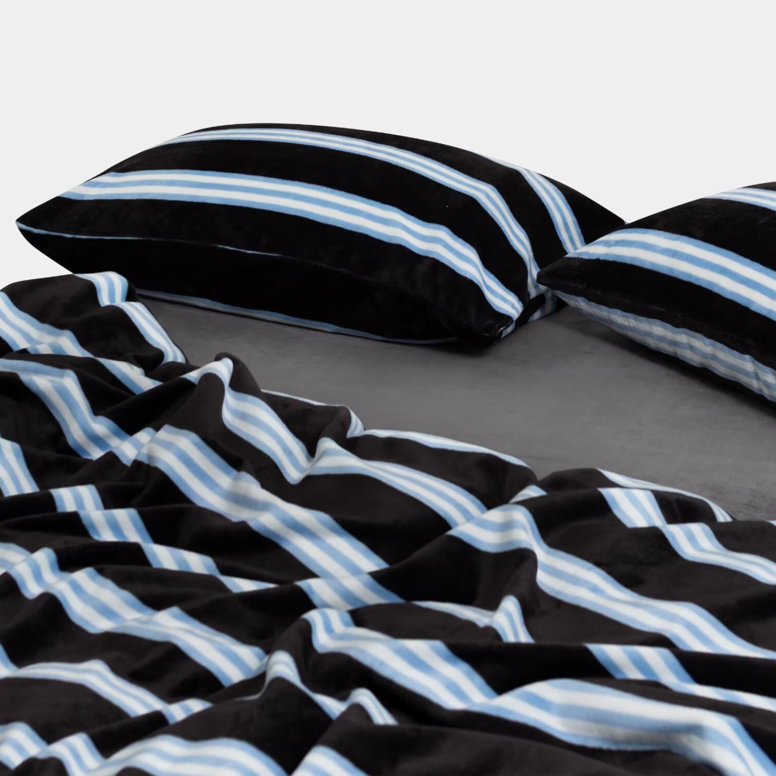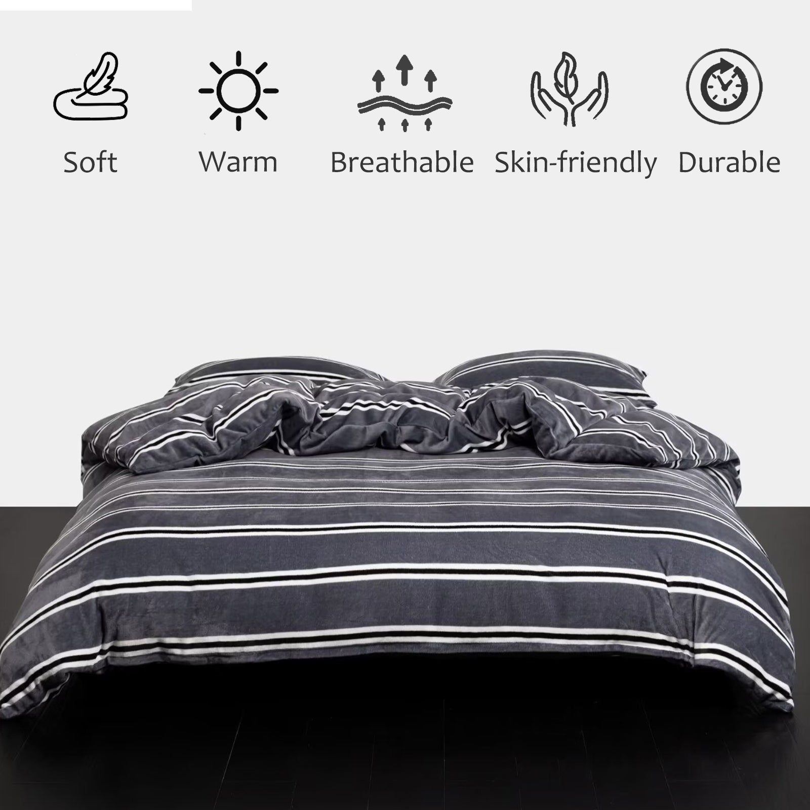 Striped Velvet Fleece Comforter Set – 3-Piece Cozy Reversible Flannel Bedding, Soft Warm All-Season Quilt with Pillowcases