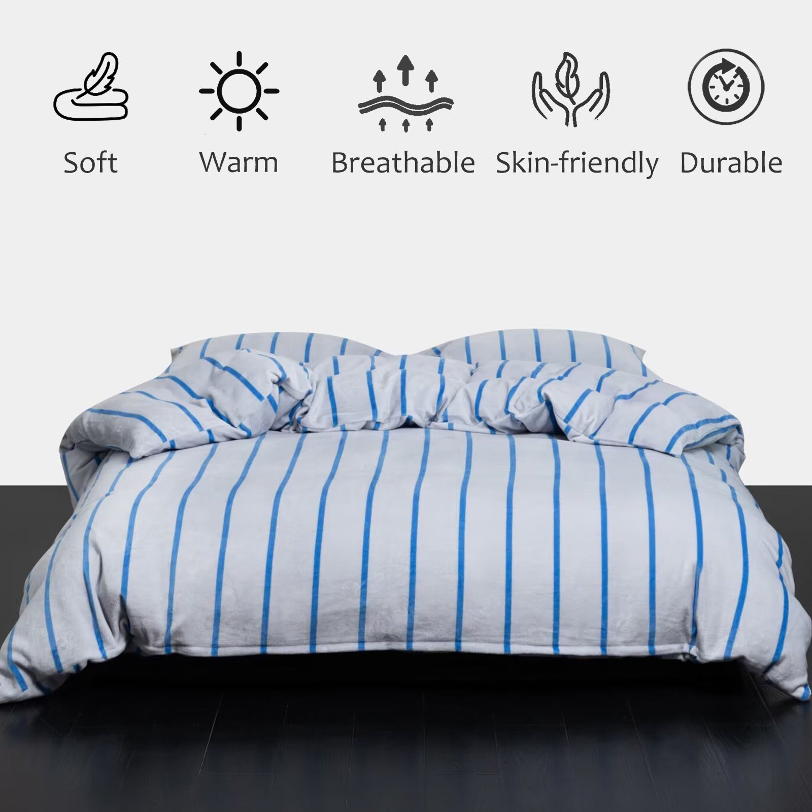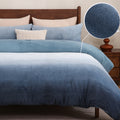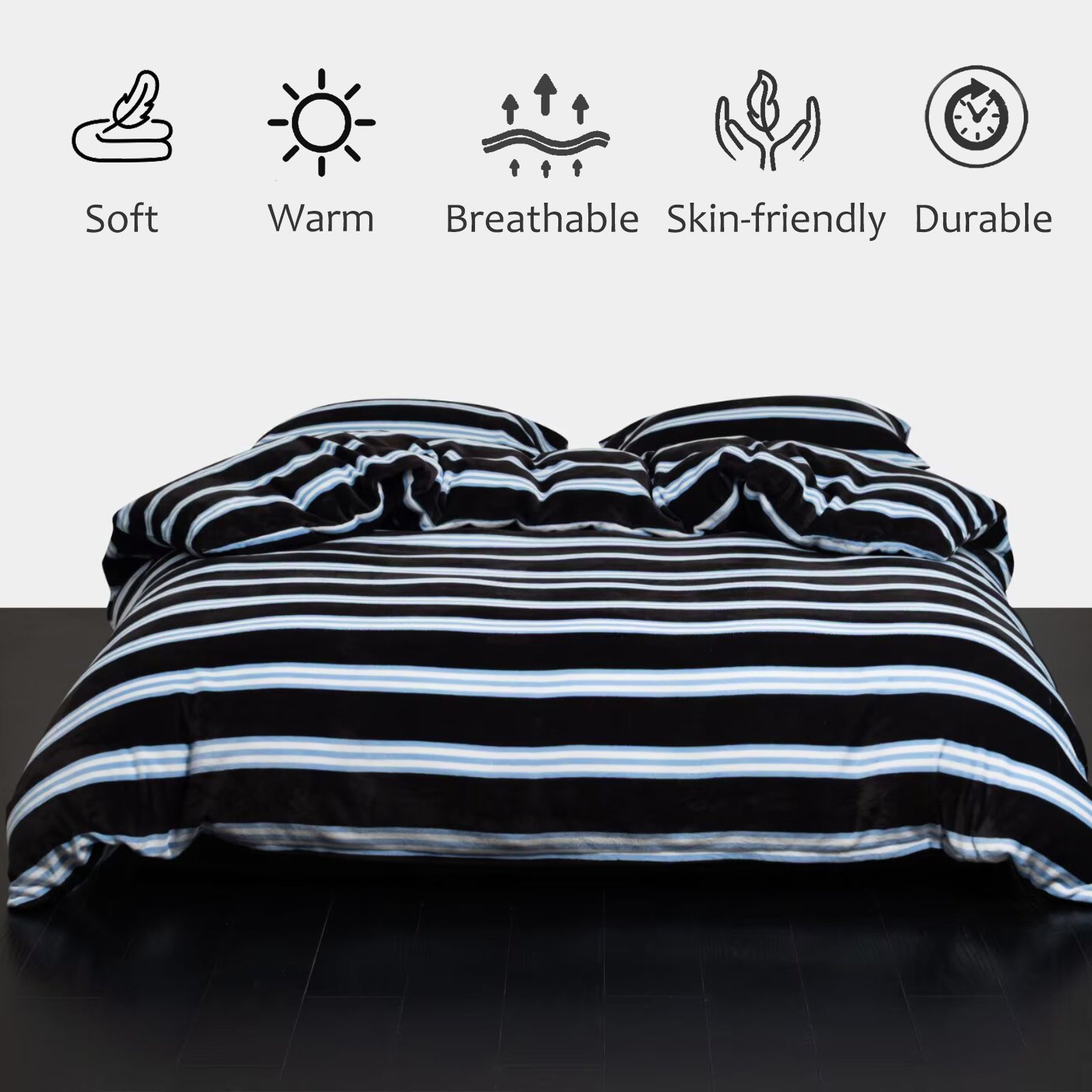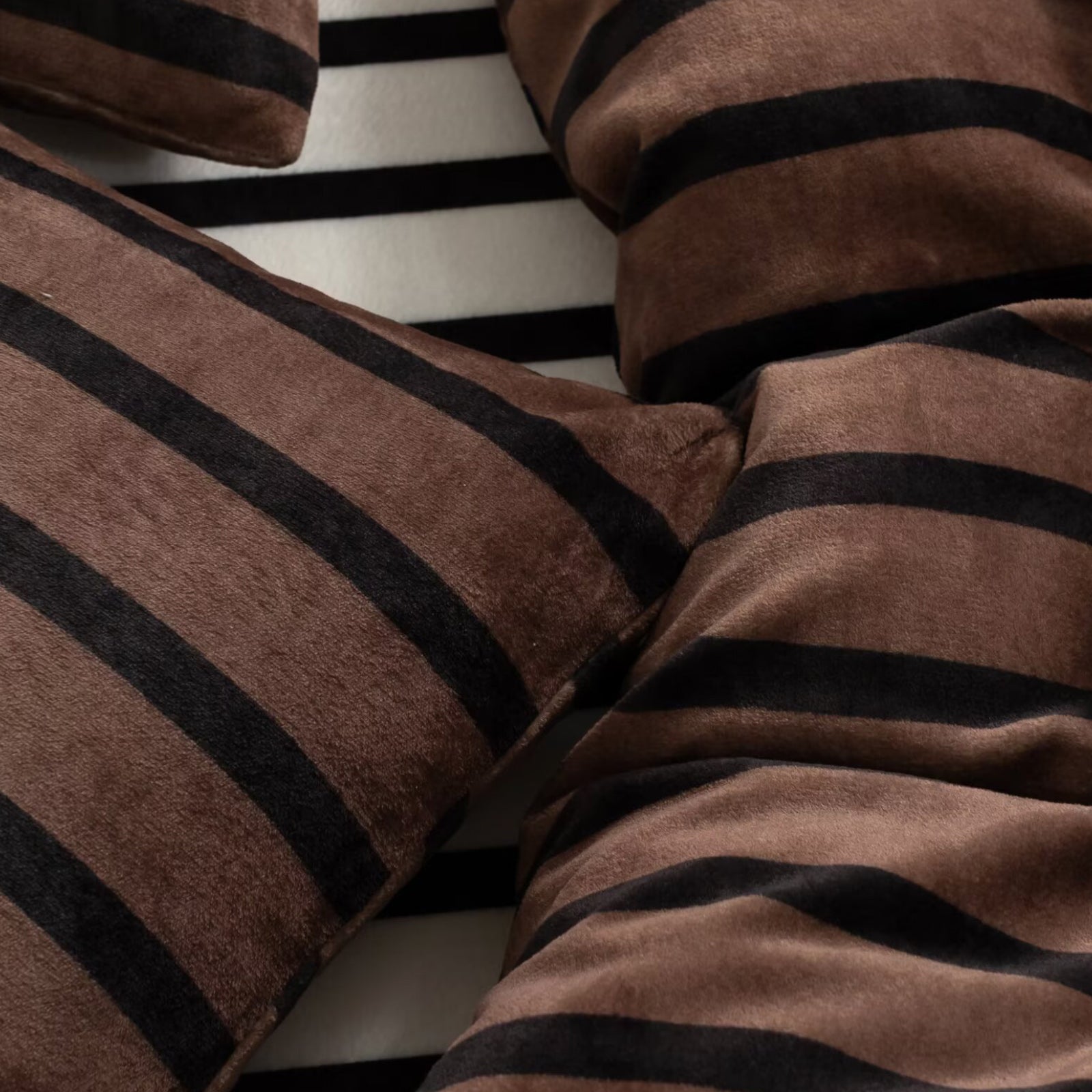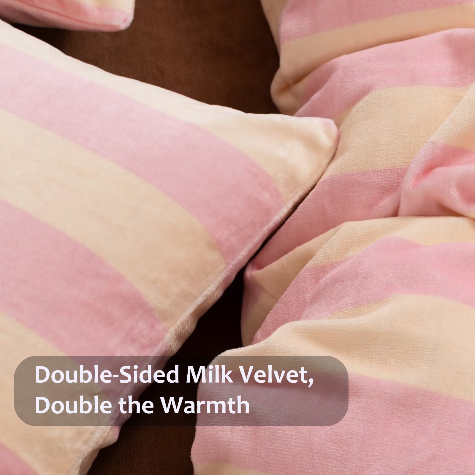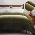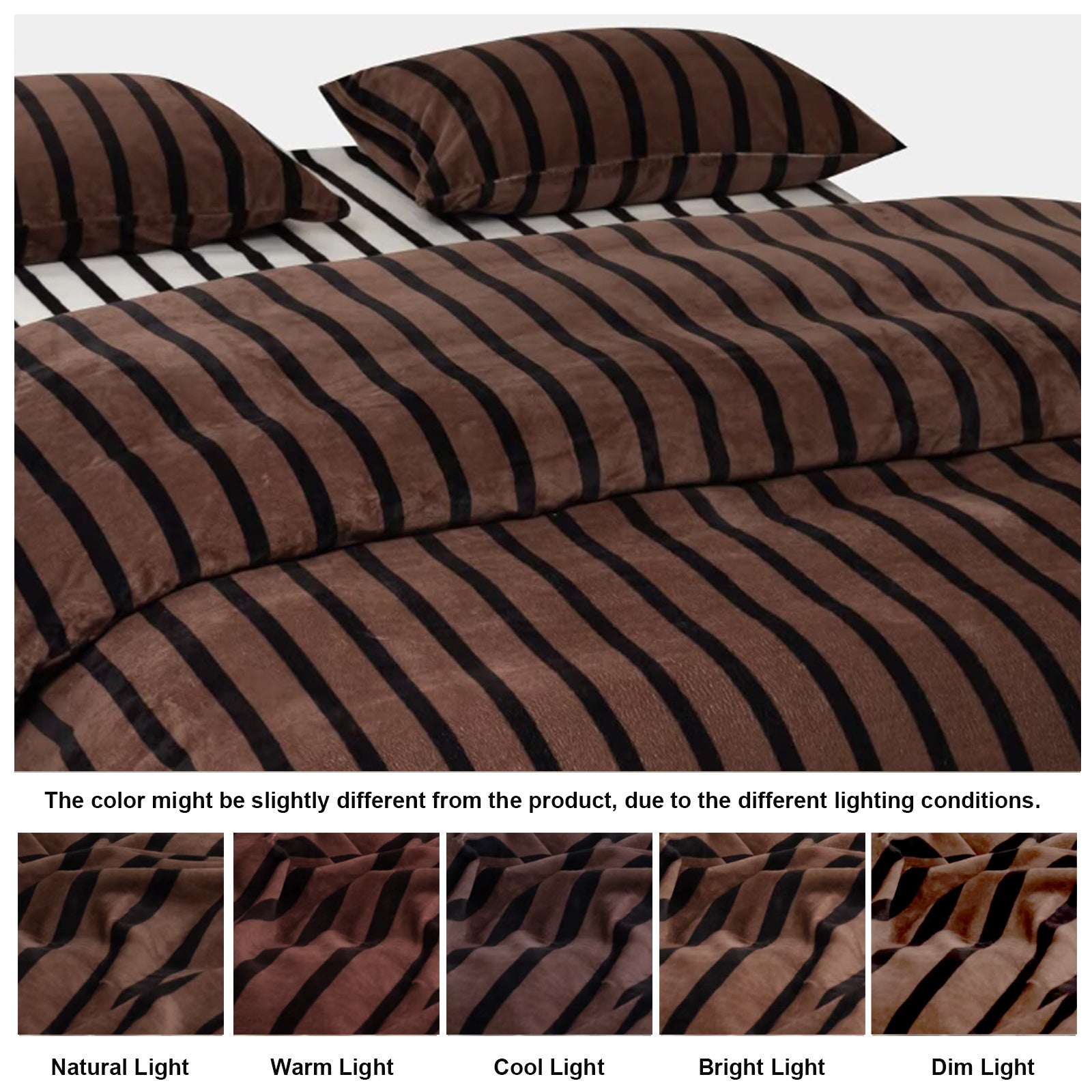 Striped Velvet Fleece Comforter Set – 3-Piece Cozy Reversible Flannel Bedding, Soft Warm All-Season Quilt with Pillowcases