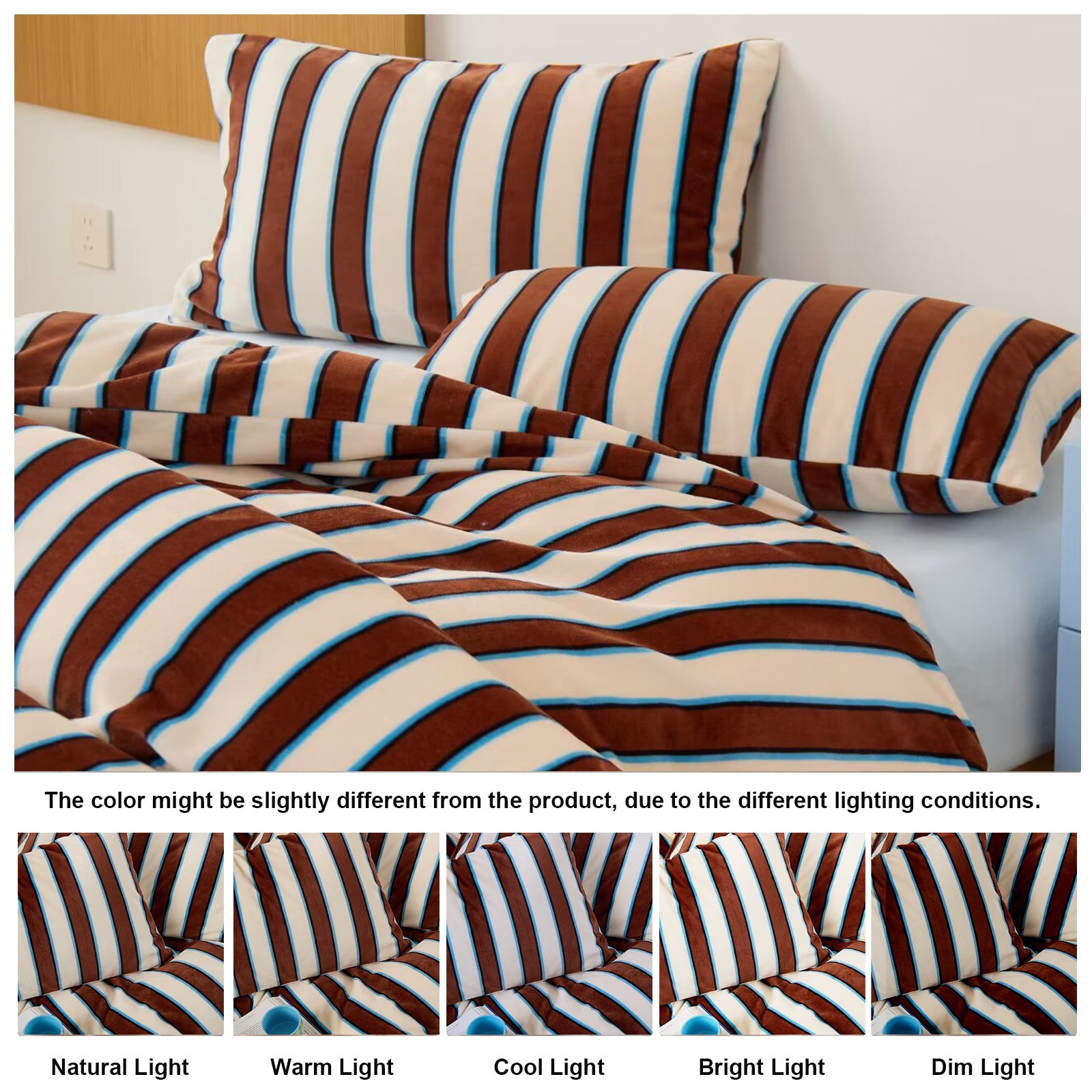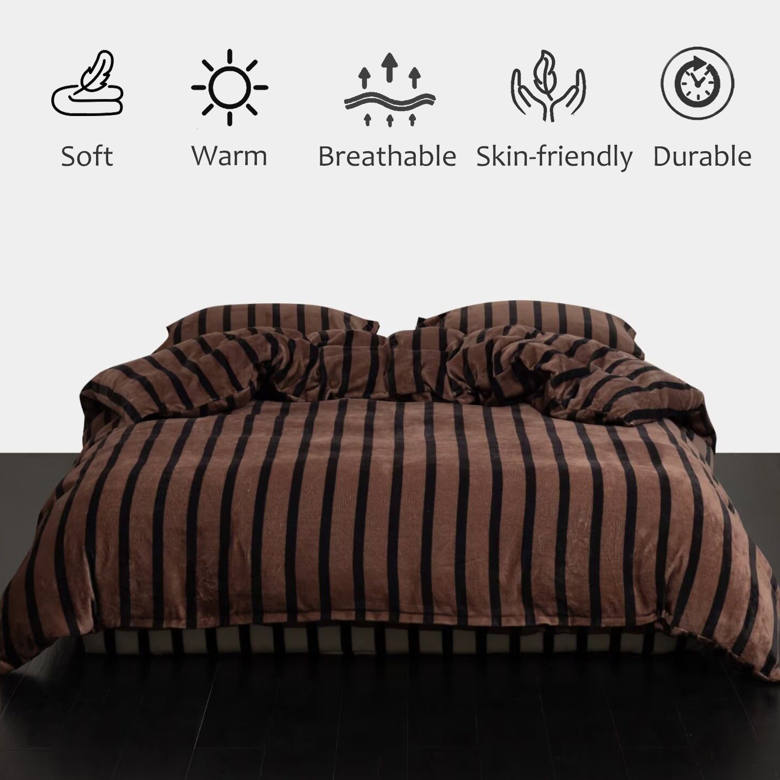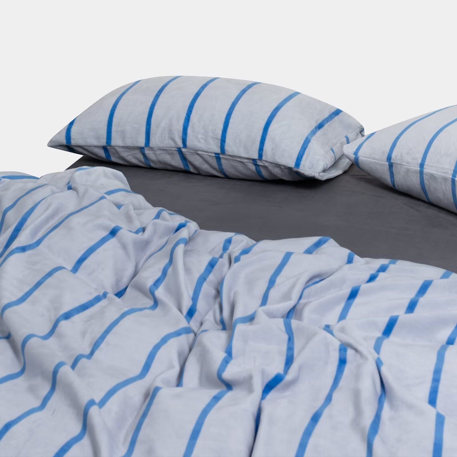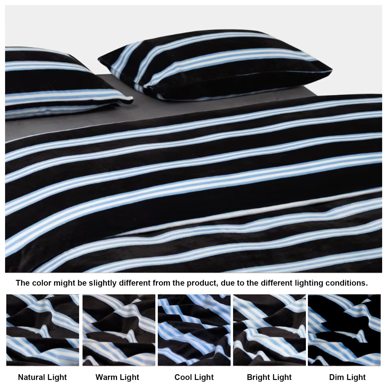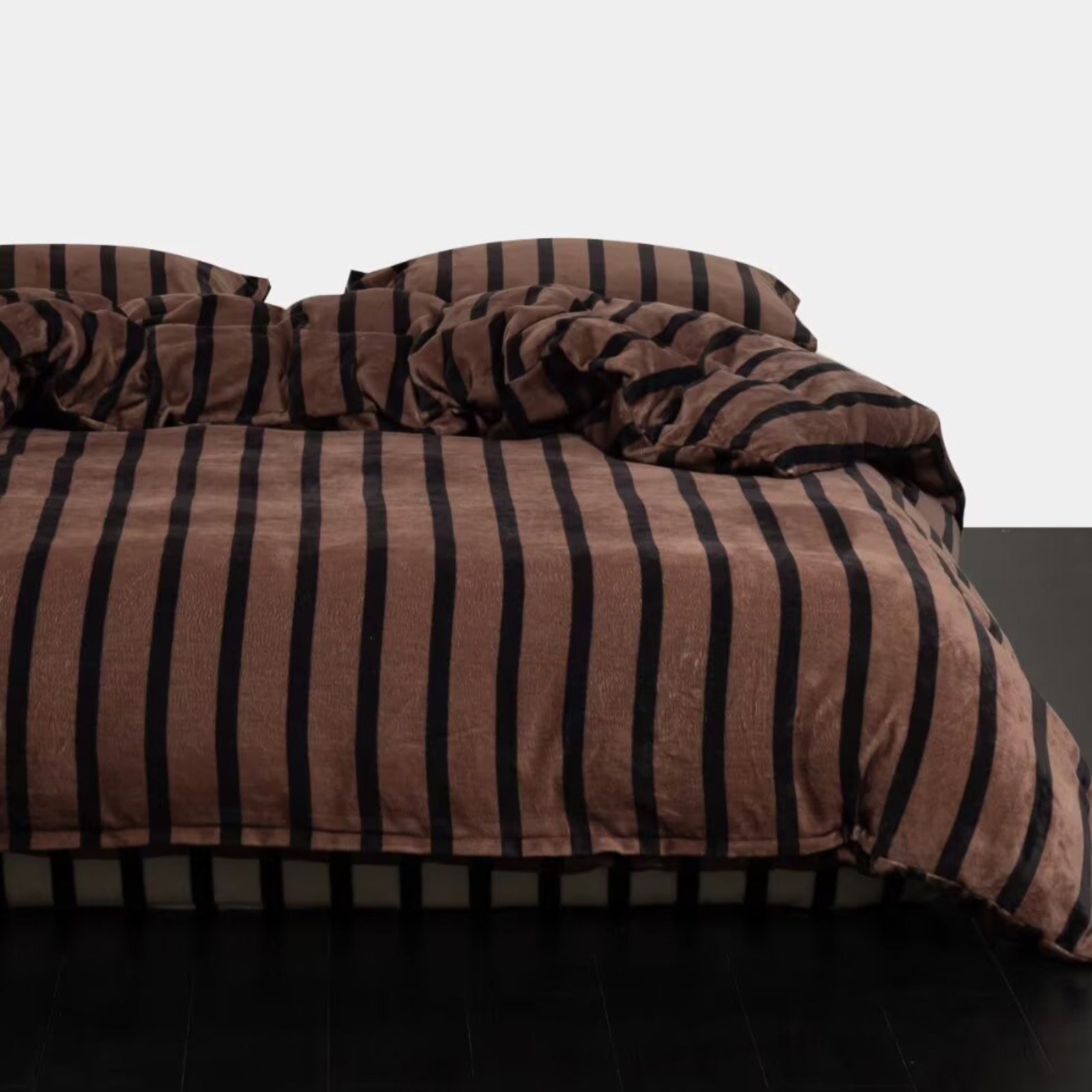 Striped Velvet Fleece Comforter Set – 3-Piece Cozy Reversible Flannel Bedding, Soft Warm All-Season Quilt with Pillowcases