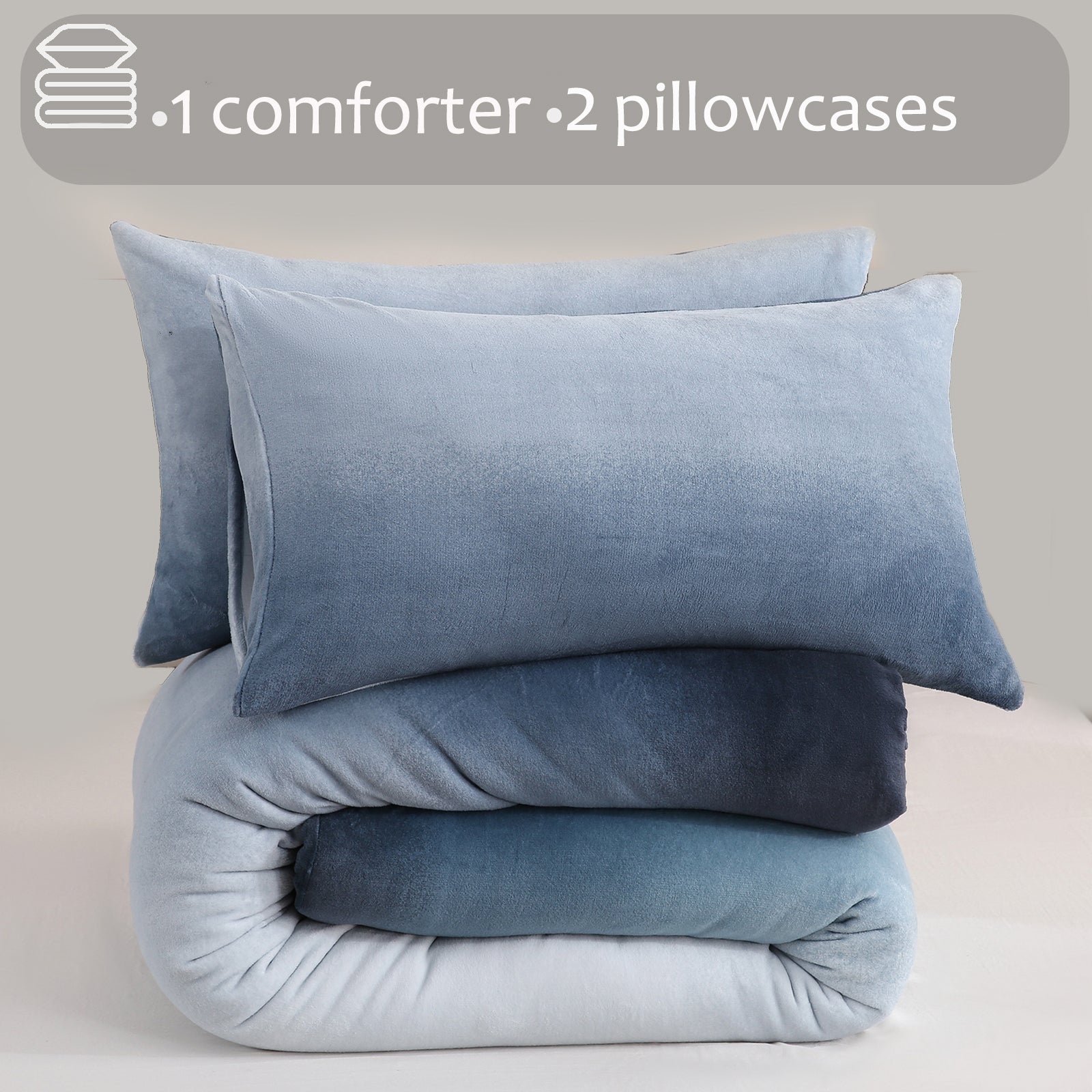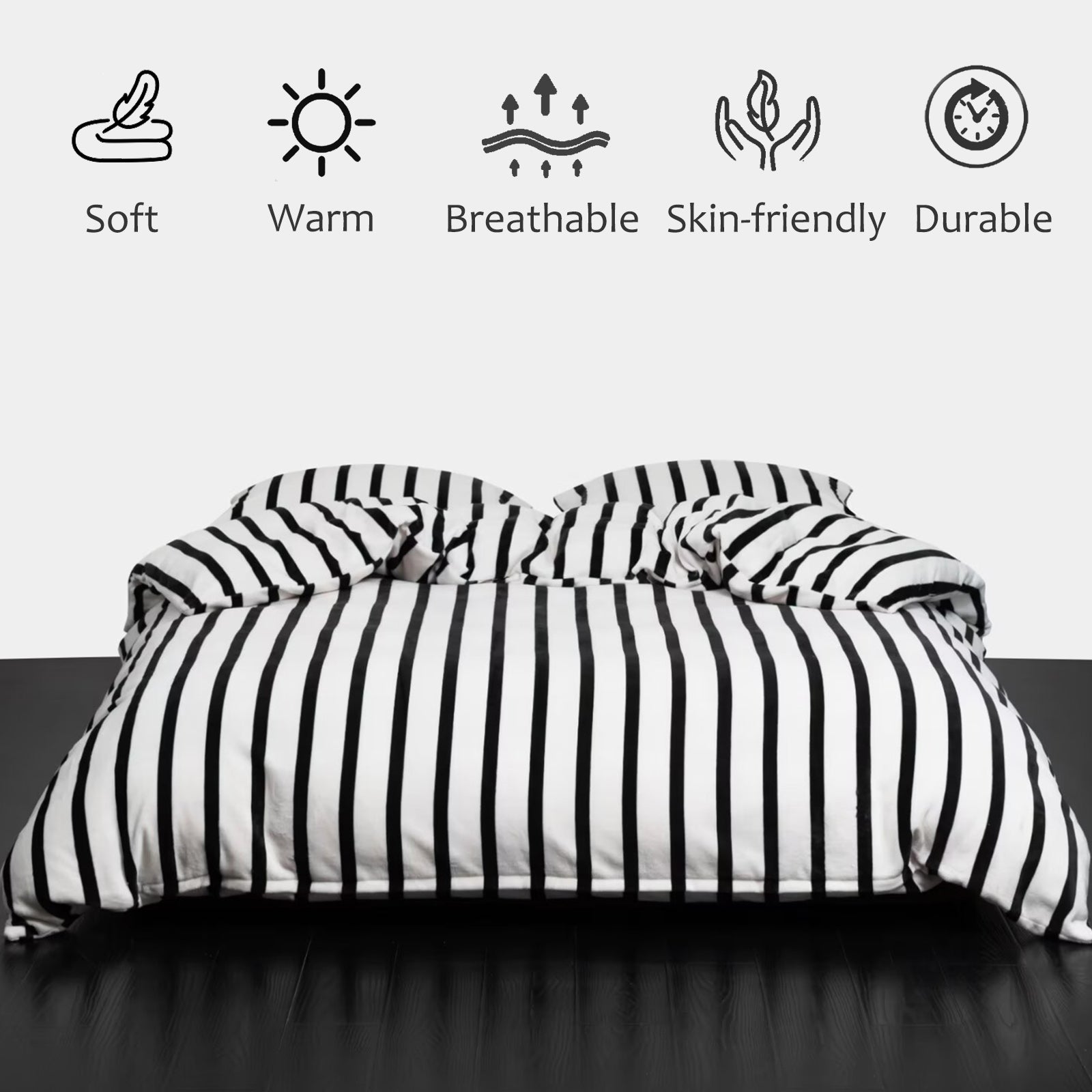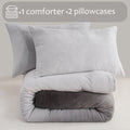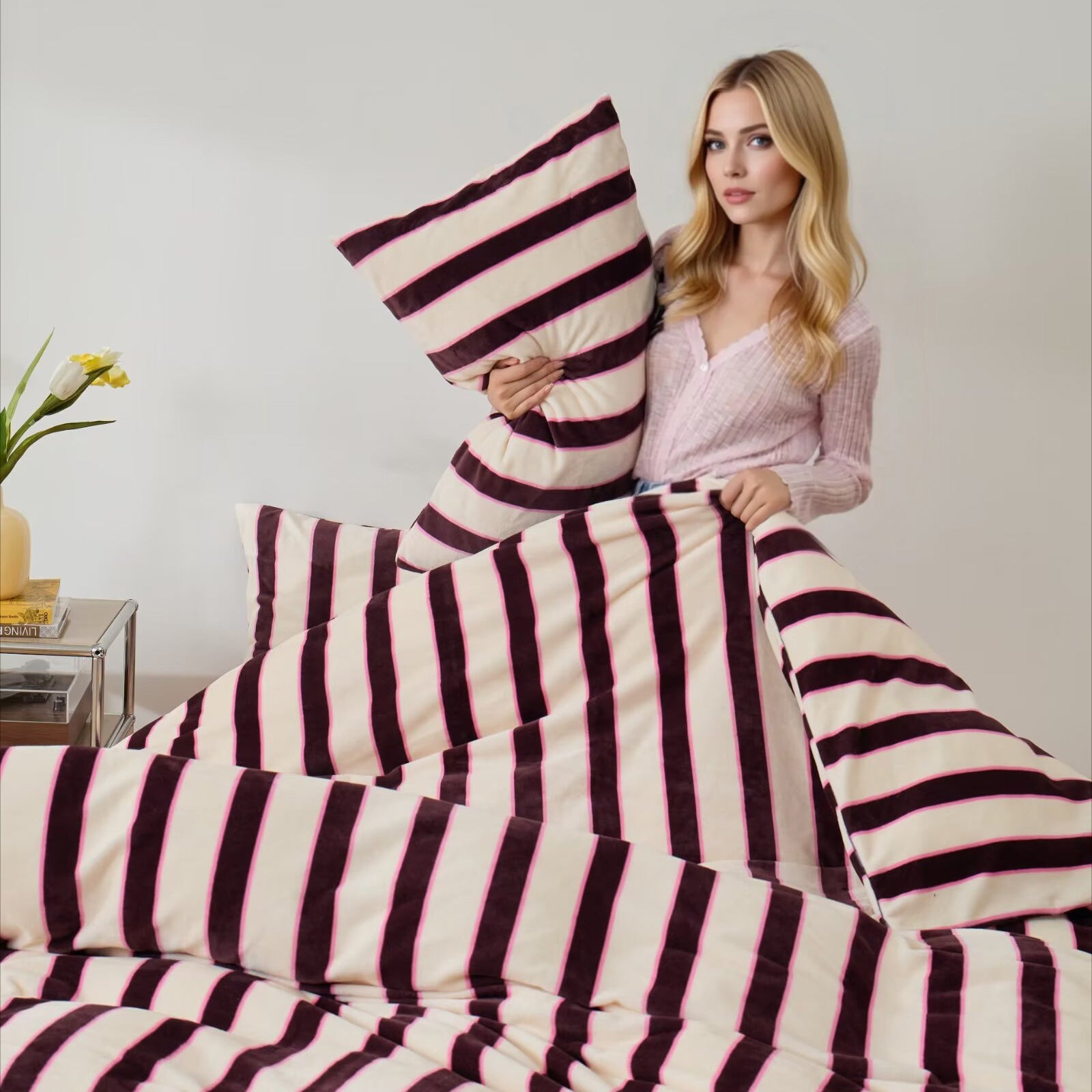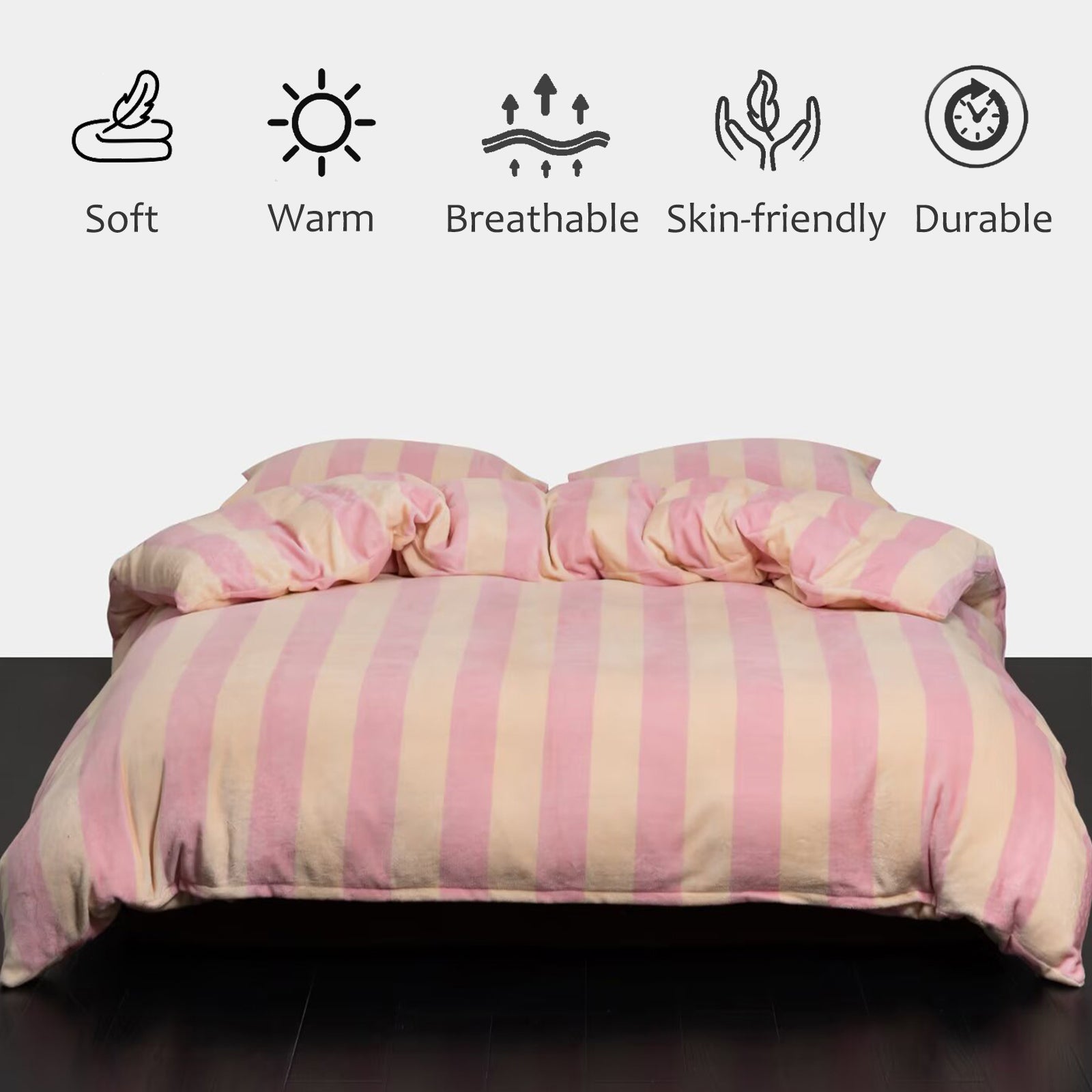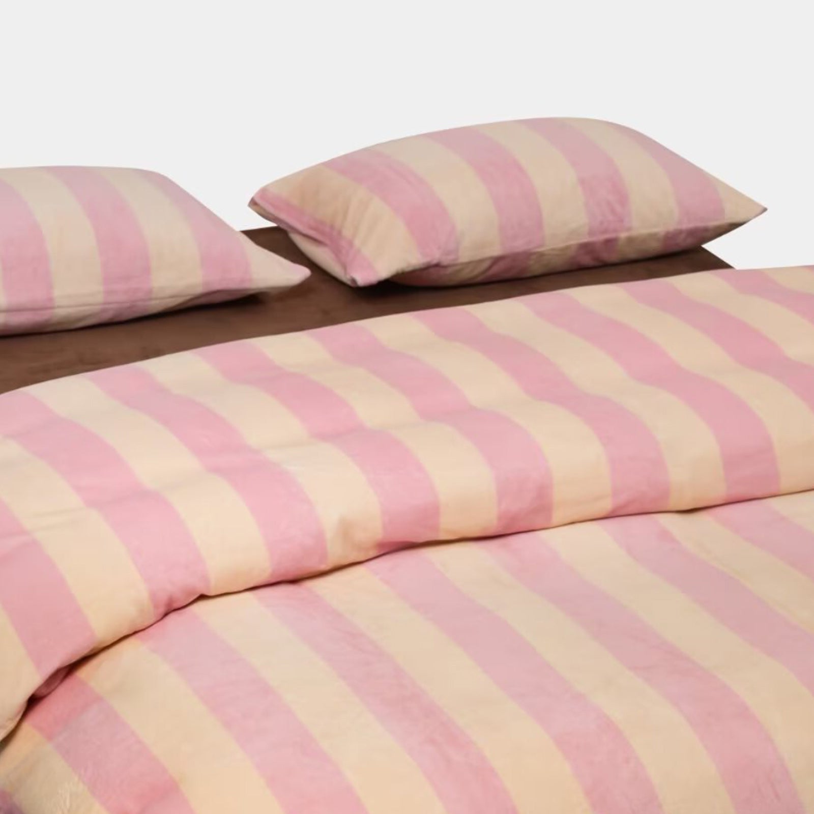 Striped Velvet Fleece Comforter Set – 3-Piece Cozy Reversible Flannel Bedding, Soft Warm All-Season Quilt with Pillowcases