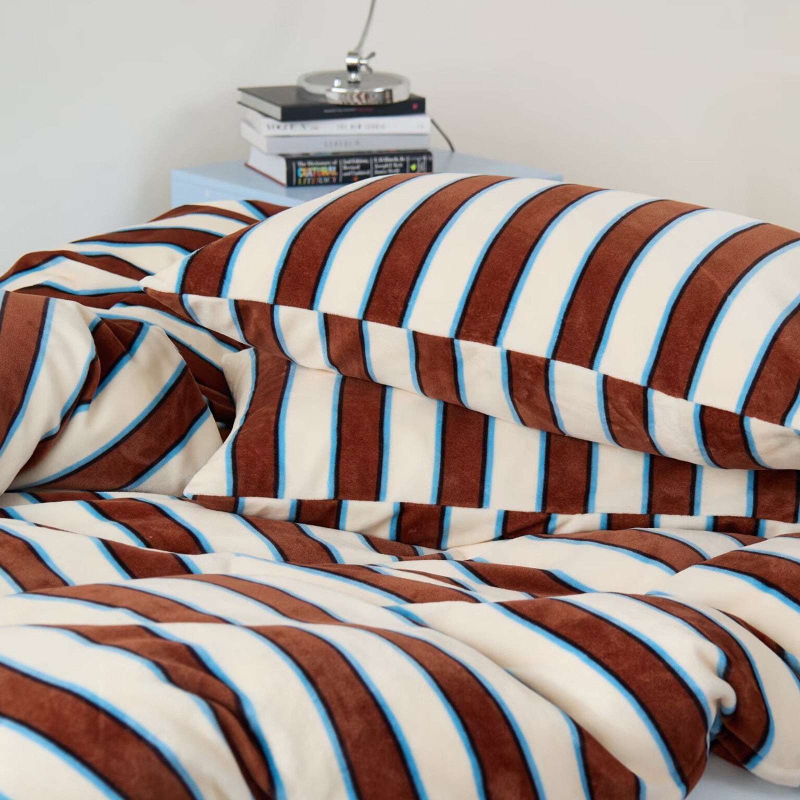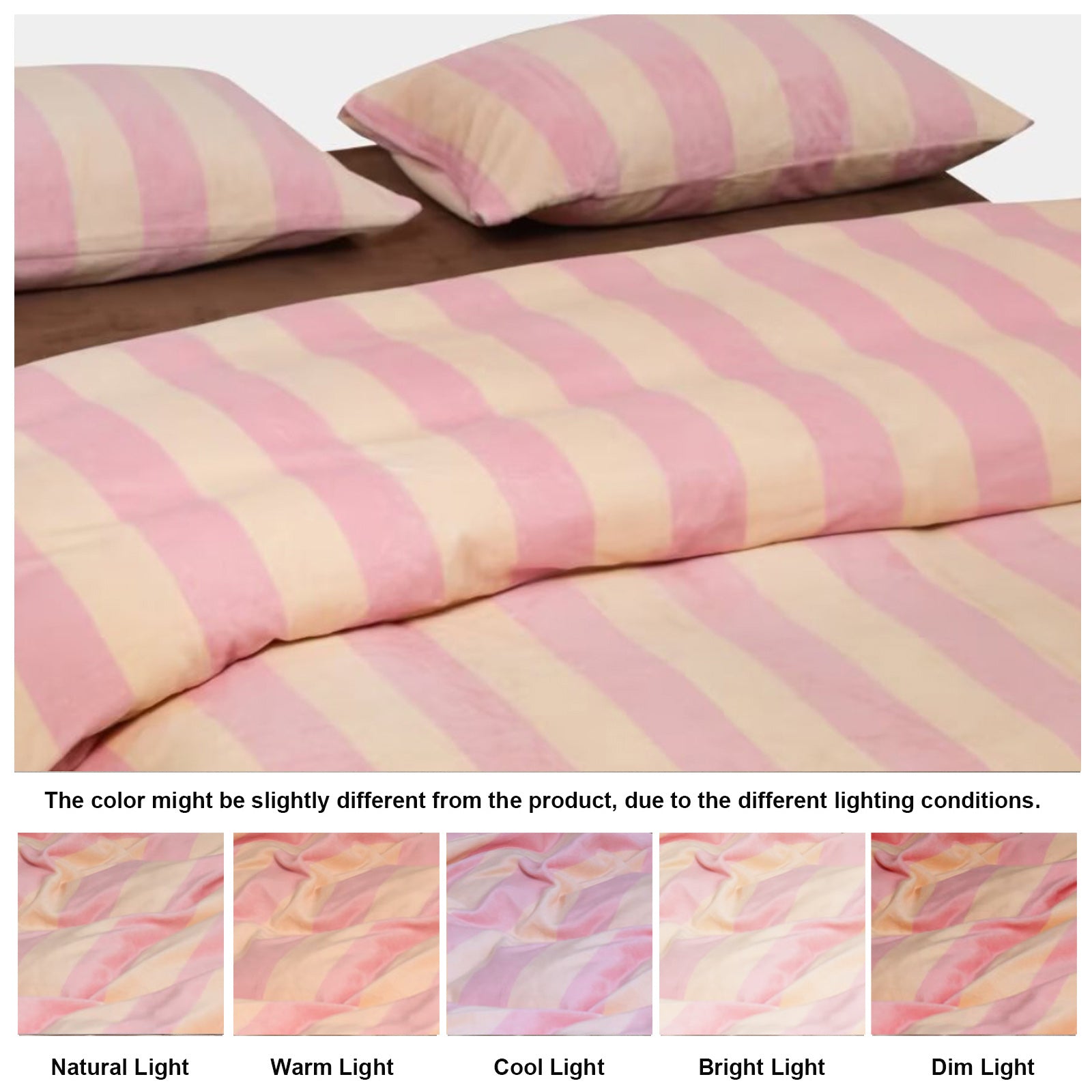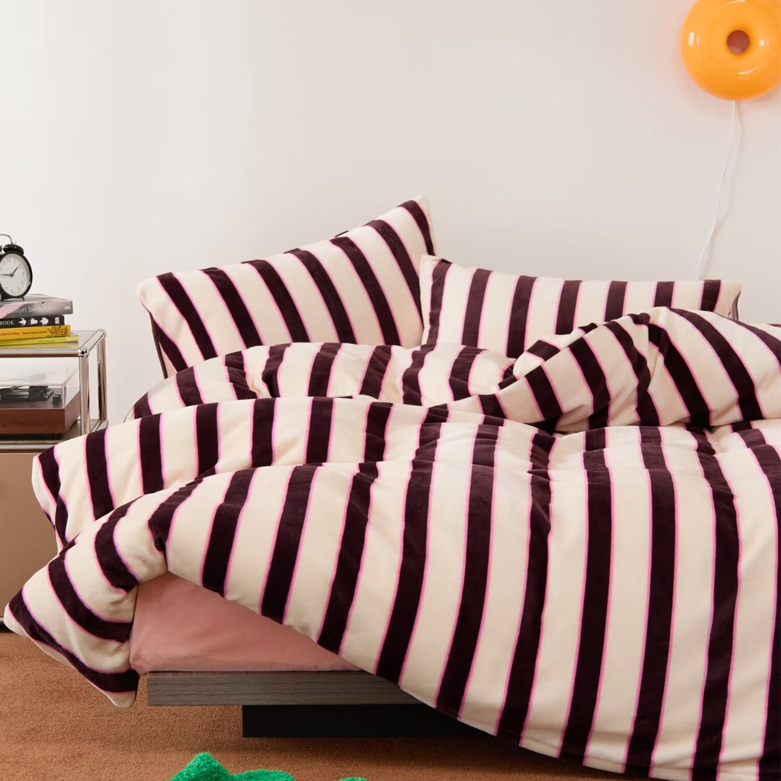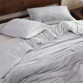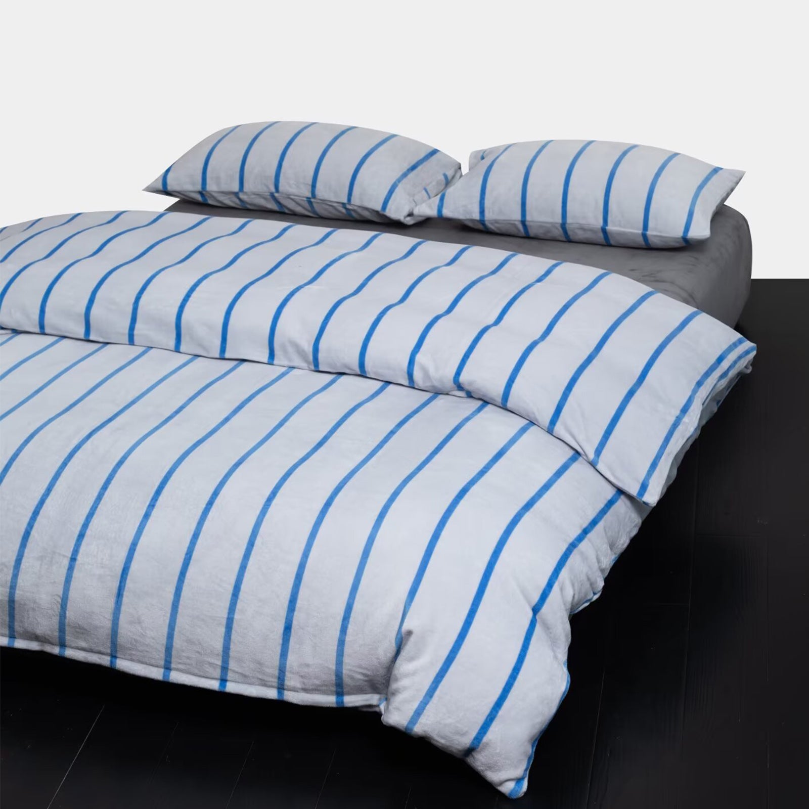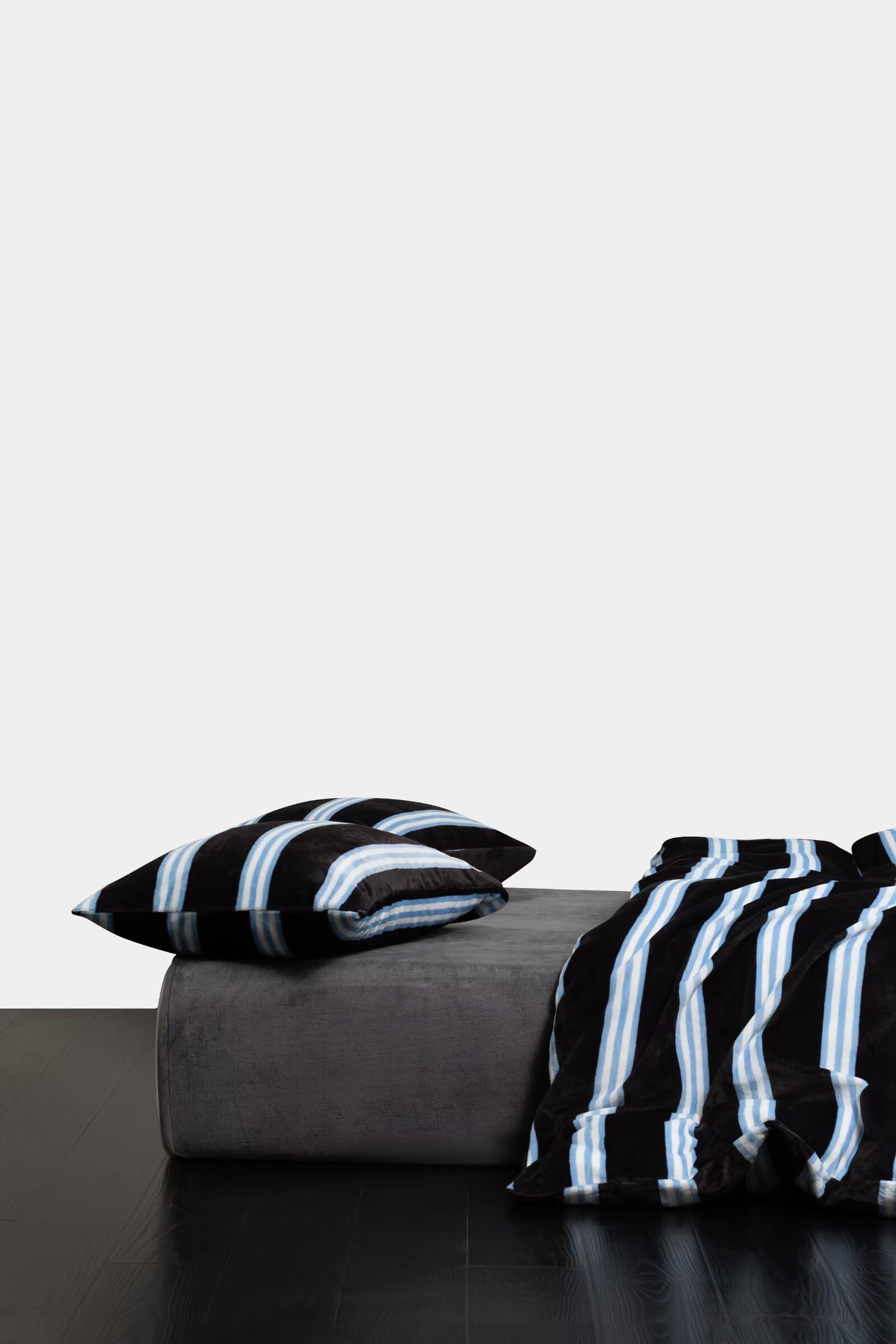 Striped Velvet Fleece Comforter Set – 3-Piece Cozy Reversible Flannel Bedding, Soft Warm All-Season Quilt with Pillowcases
