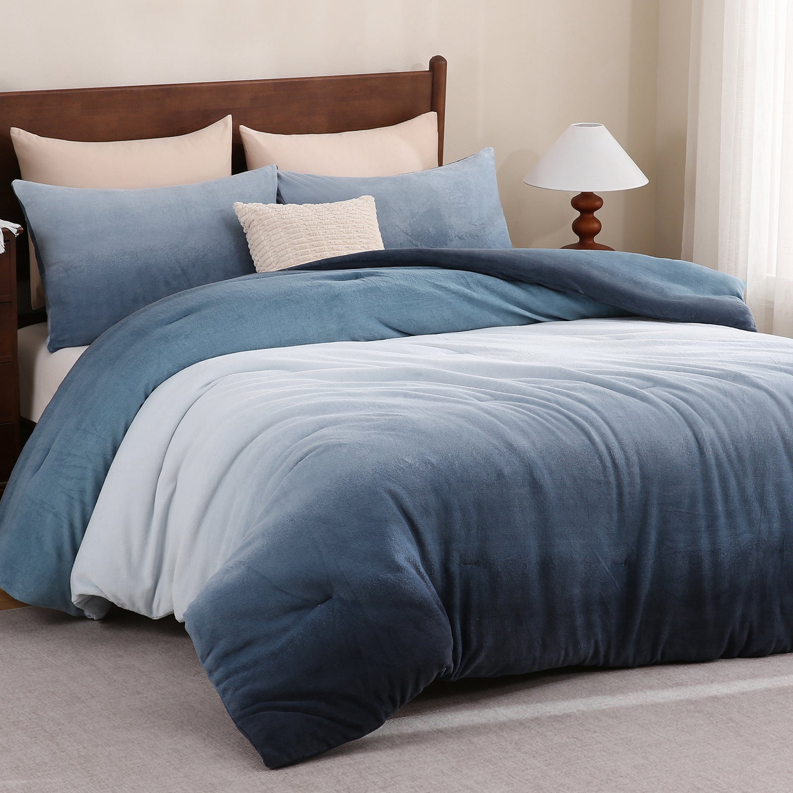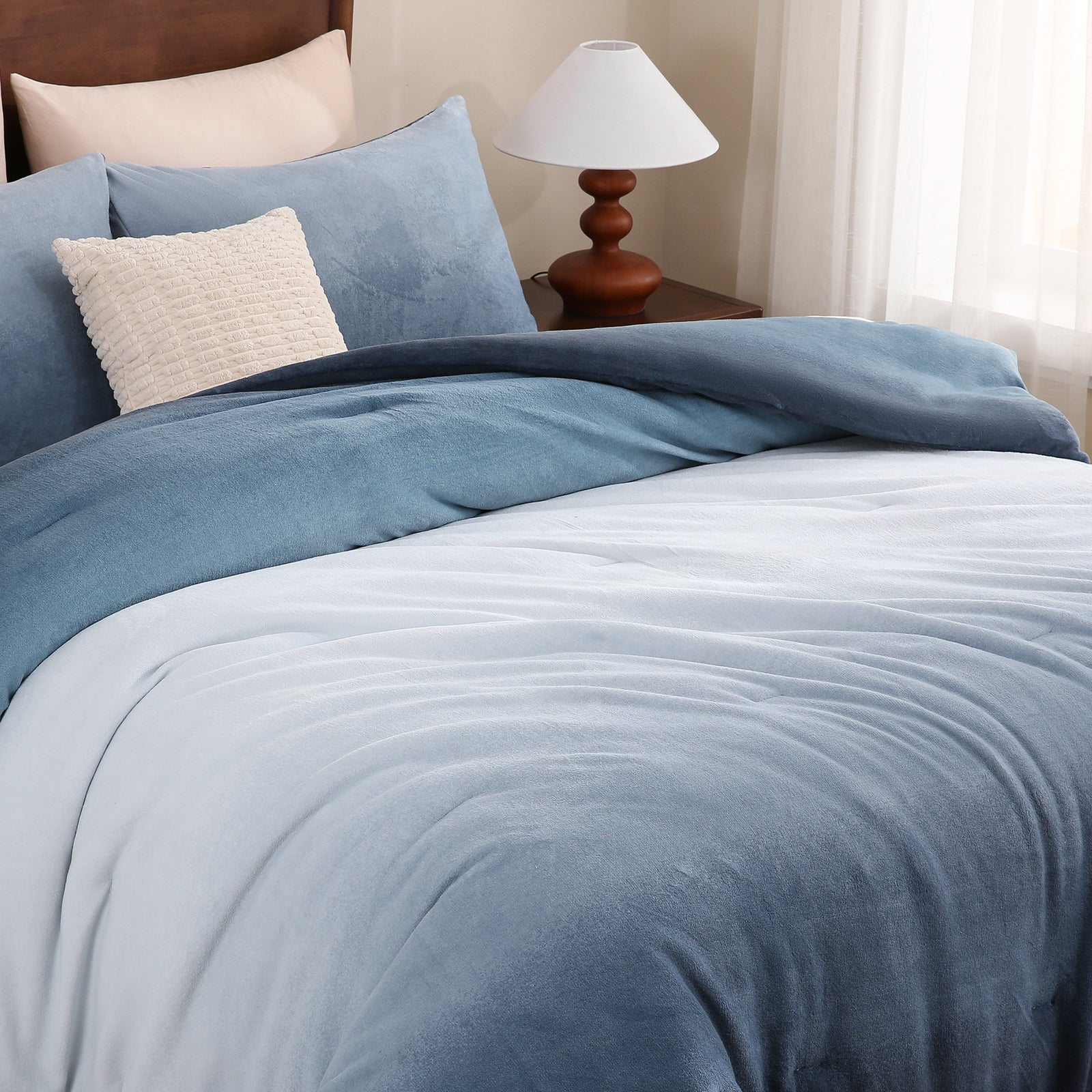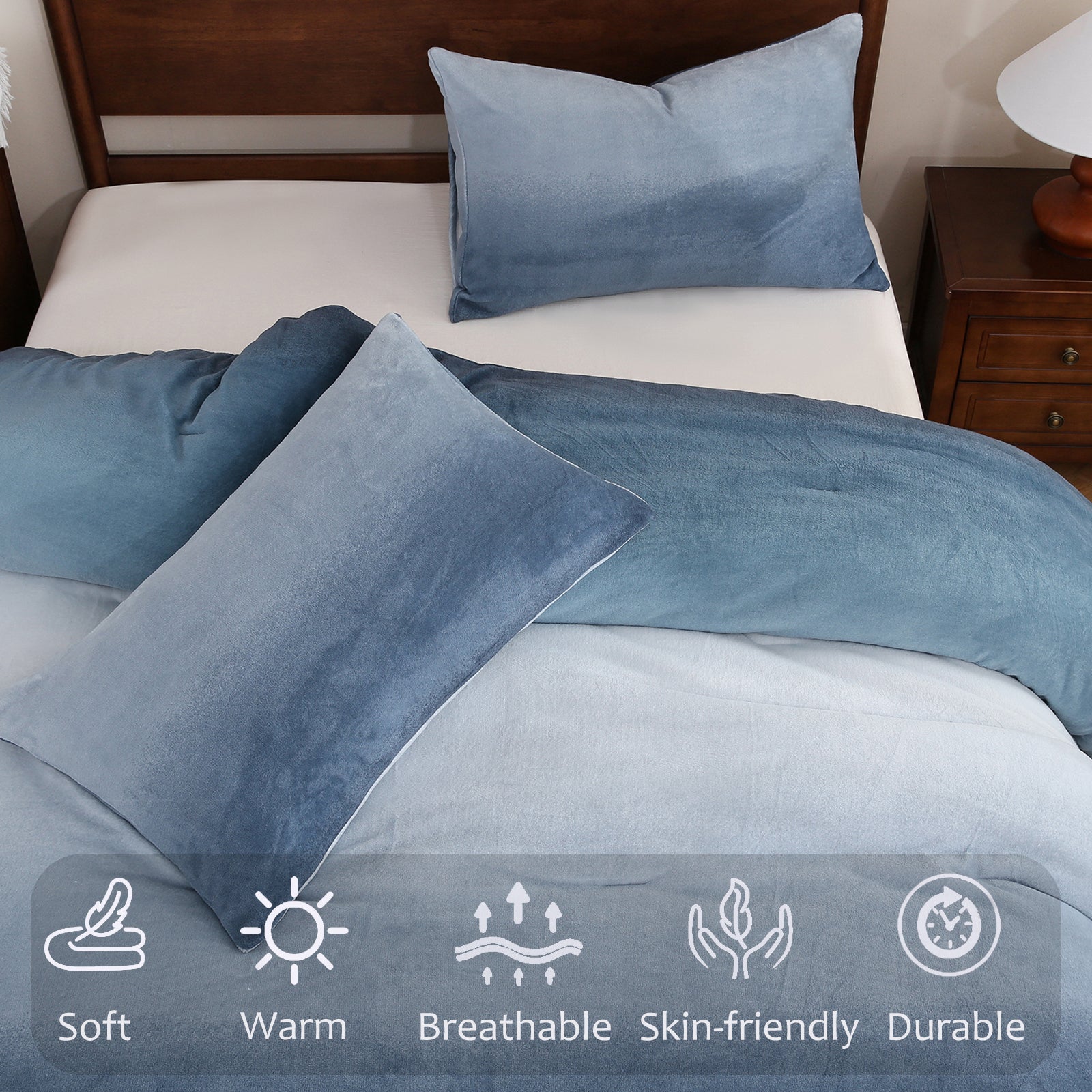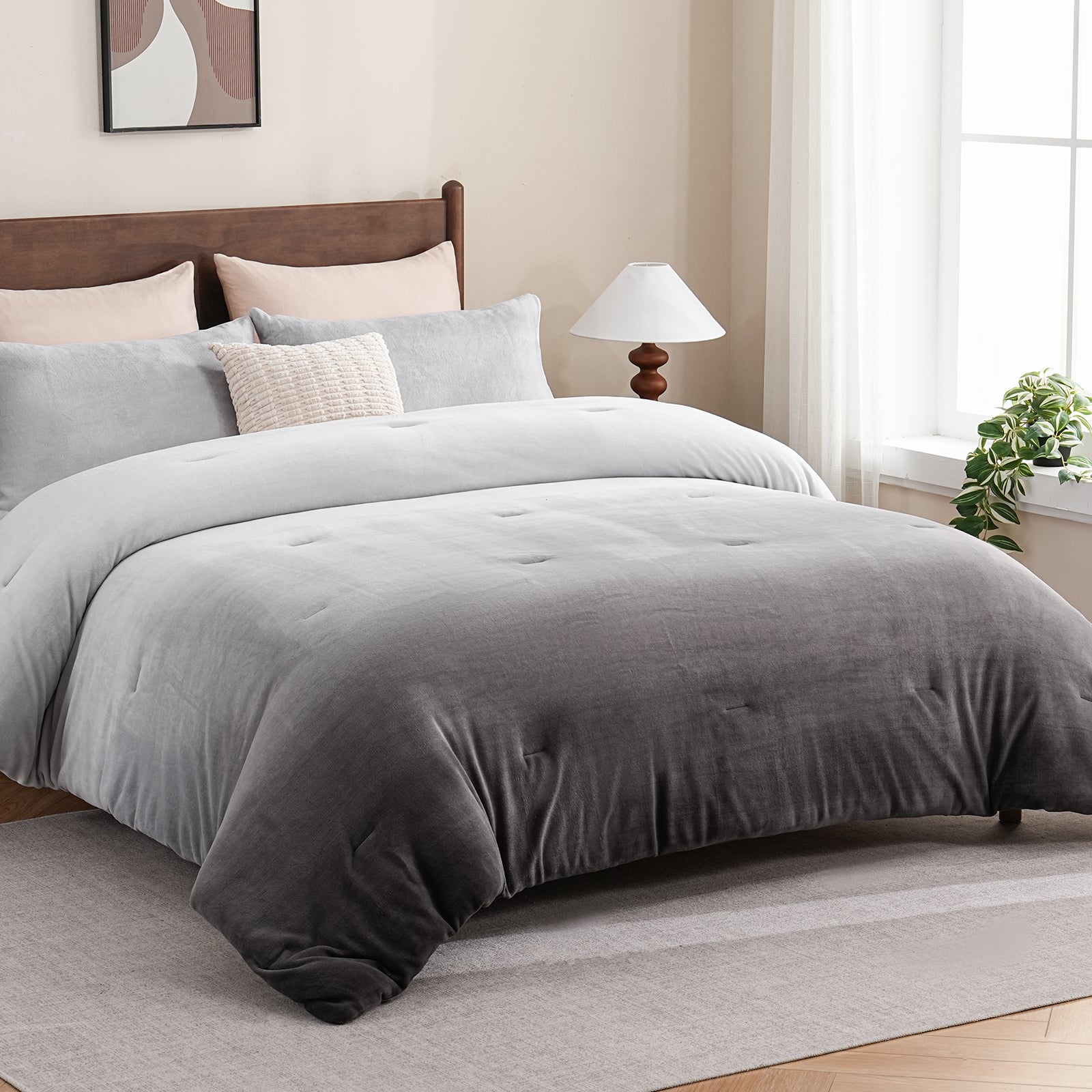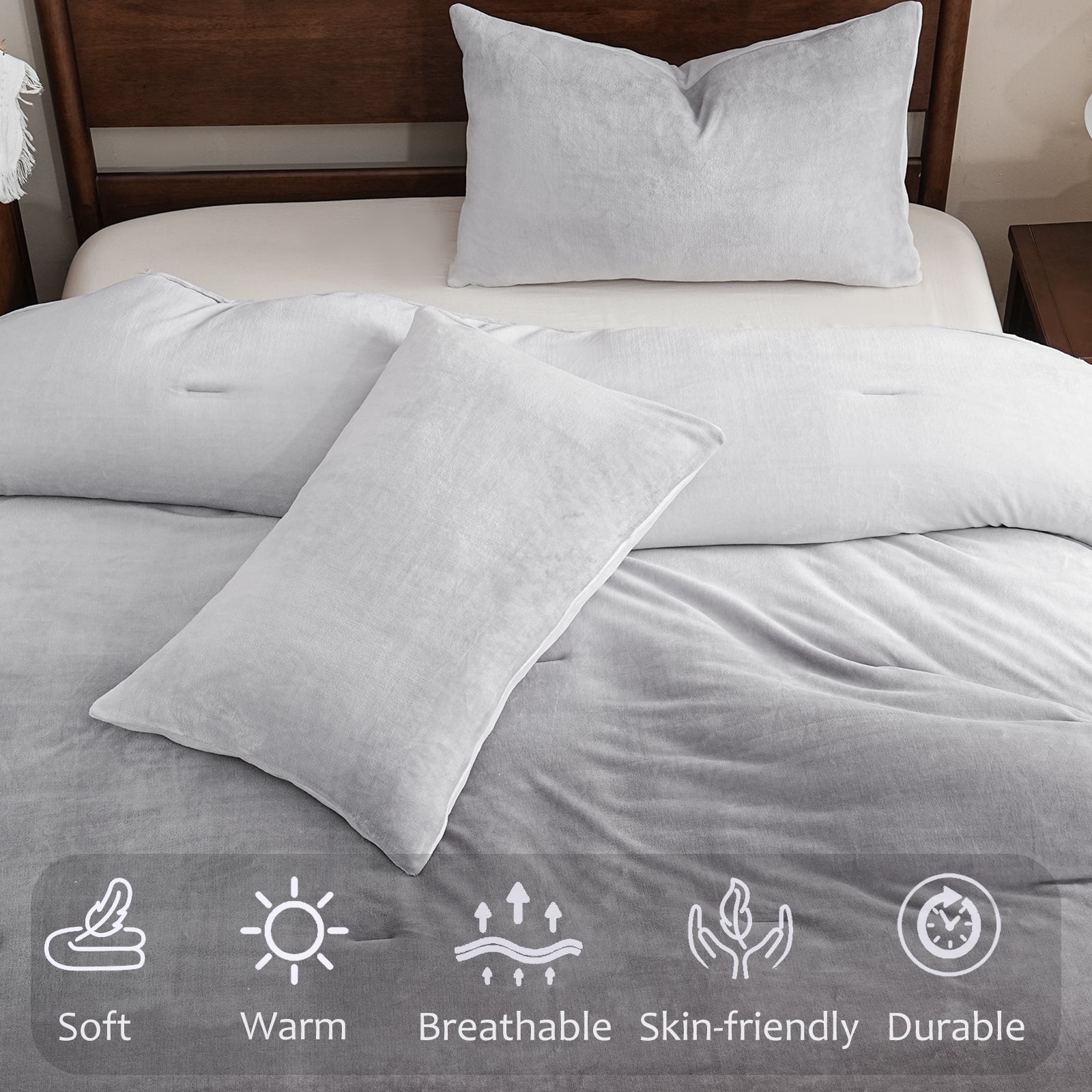 Striped Velvet Fleece Comforter Set – 3-Piece Cozy Reversible Flannel Bedding, Soft Warm All-Season Quilt with Pillowcases