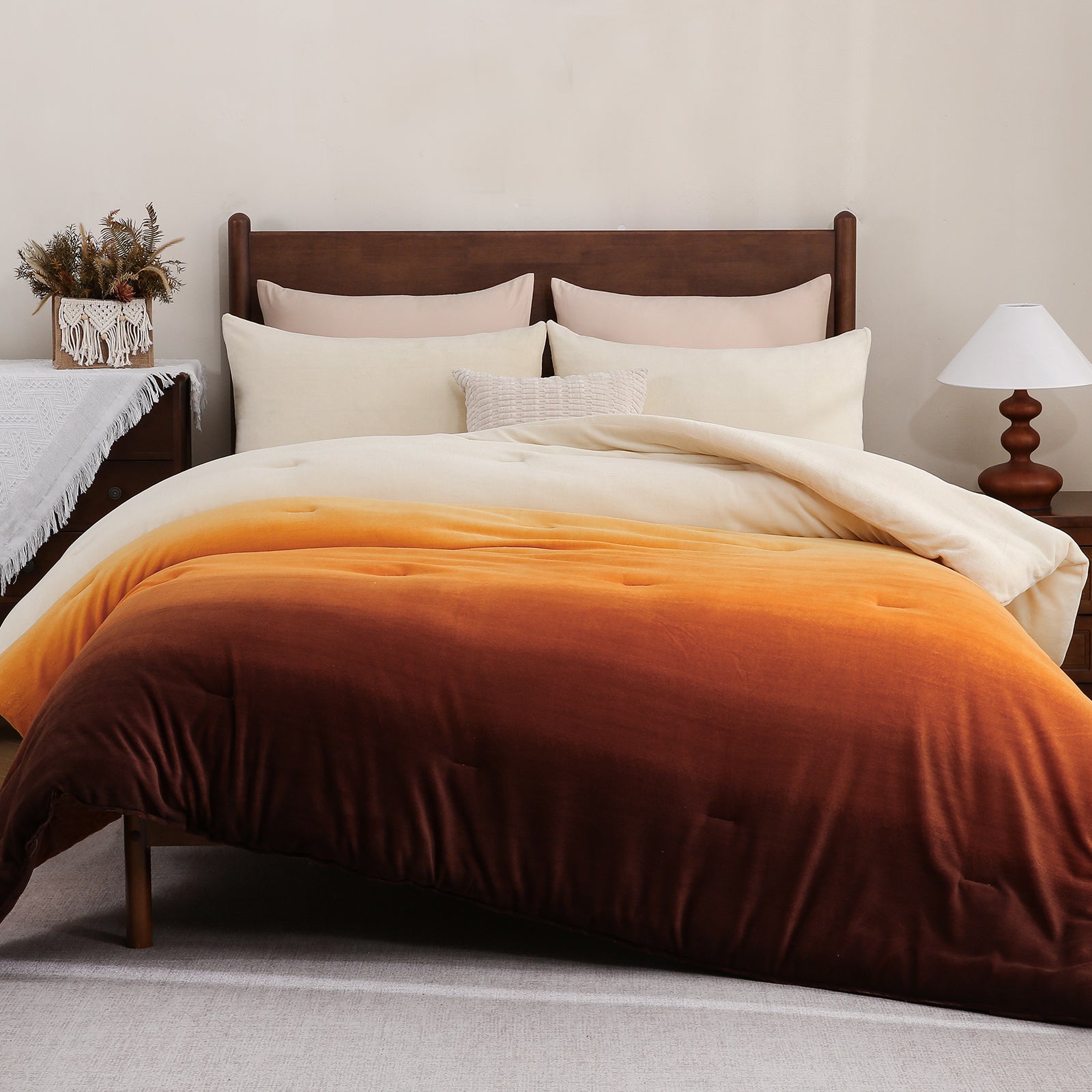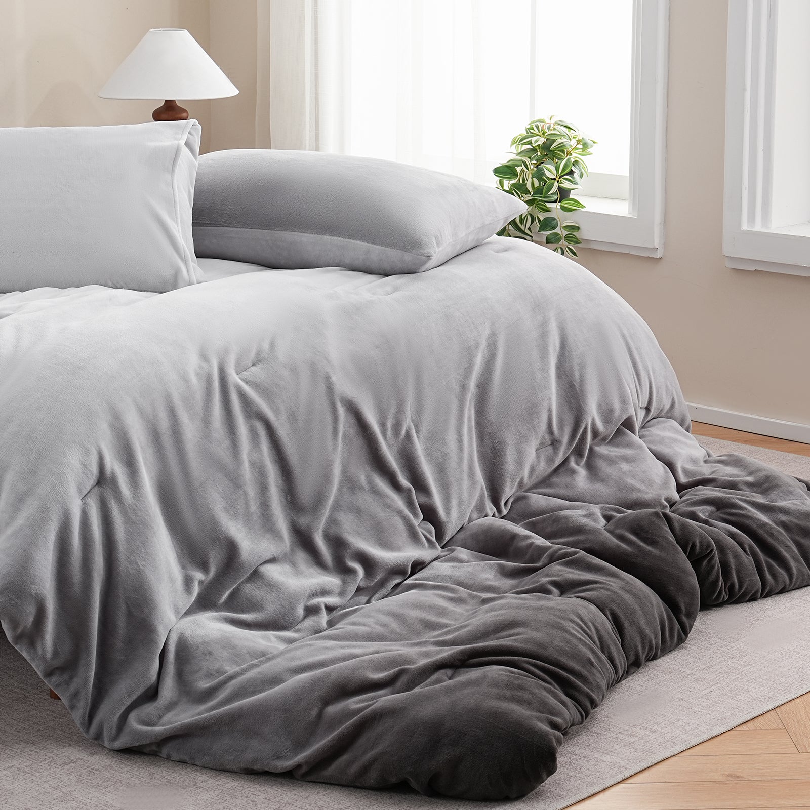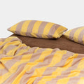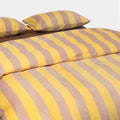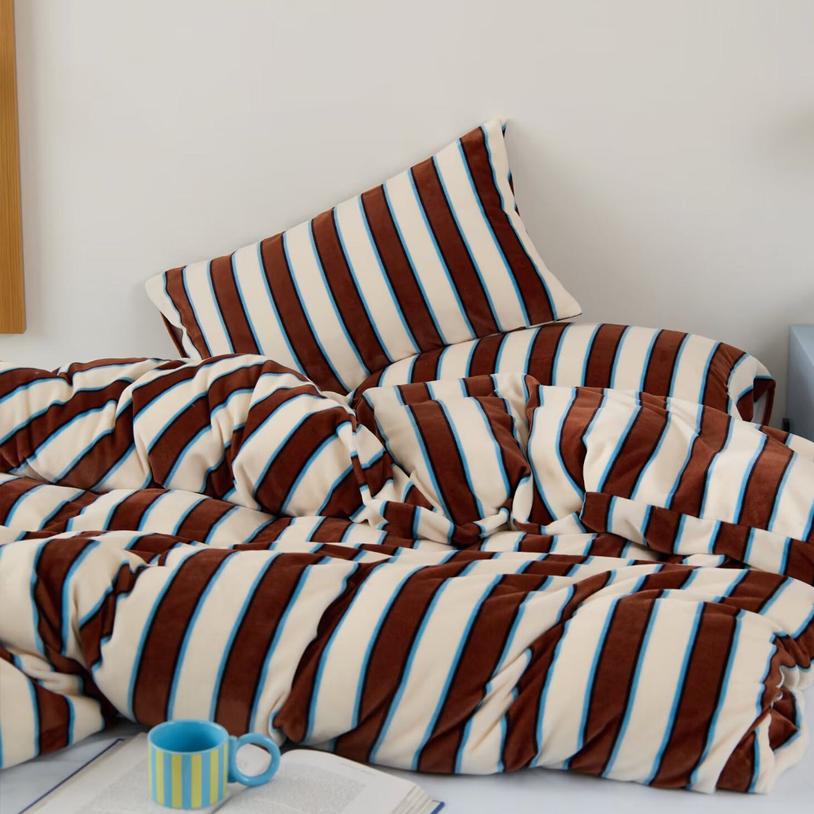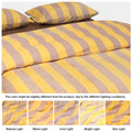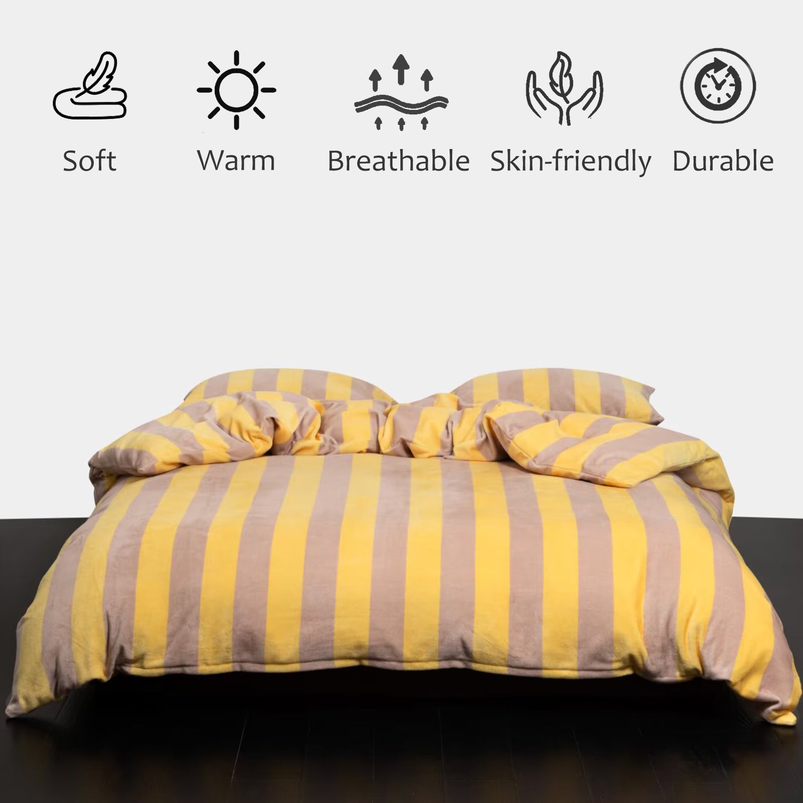 Bring cozy luxury to your bedroom with this Striped Velvet Fleece Comforter Set. Crafted from velvety fleece, the comforter feels ultra soft and smooth with a subtle sheen, adding warmth and elegance without heaviness. The bold wide stripe pattern in soft yellow and taupe creates a modern, calming look that blends easily with minimalist, boho, or farmhouse decor.
