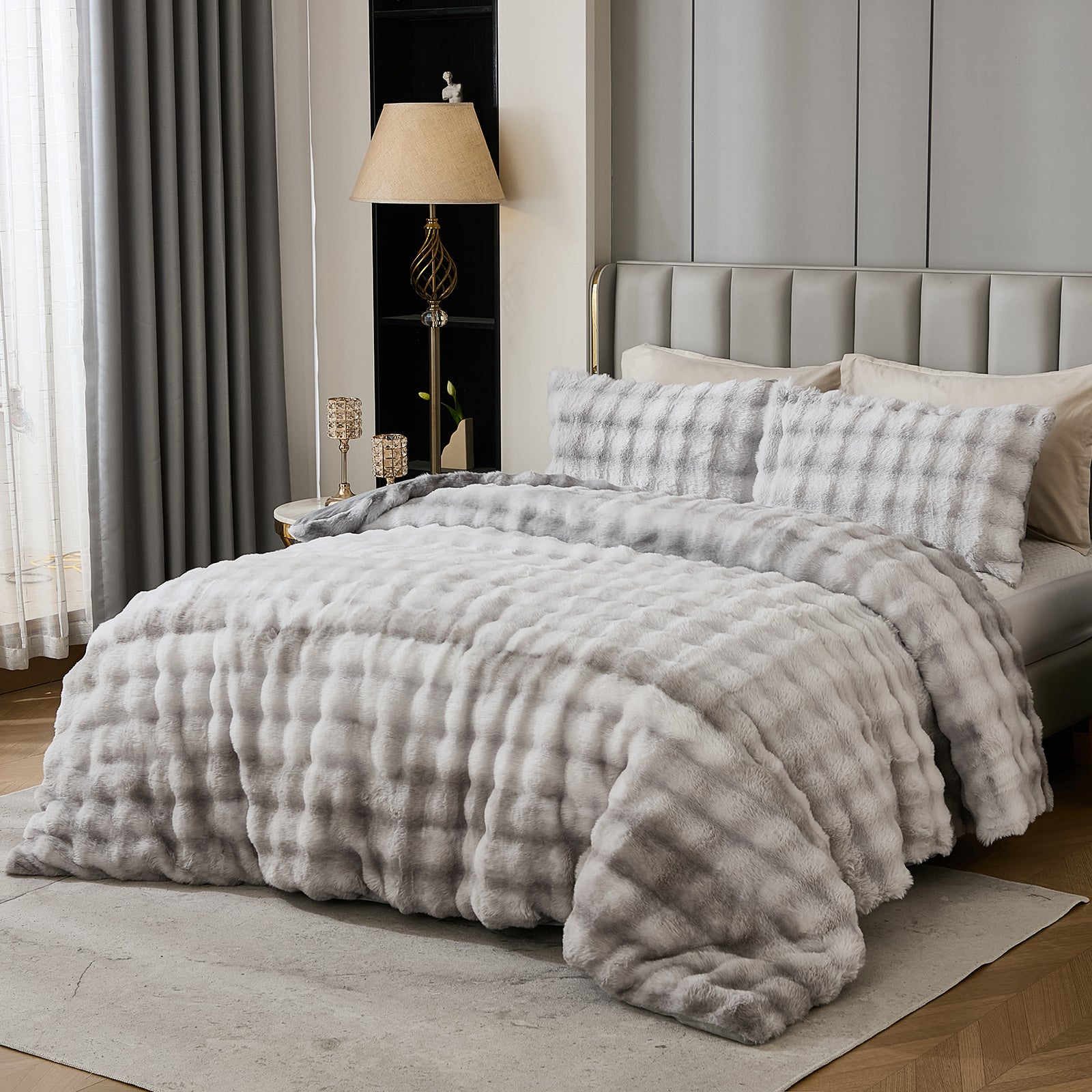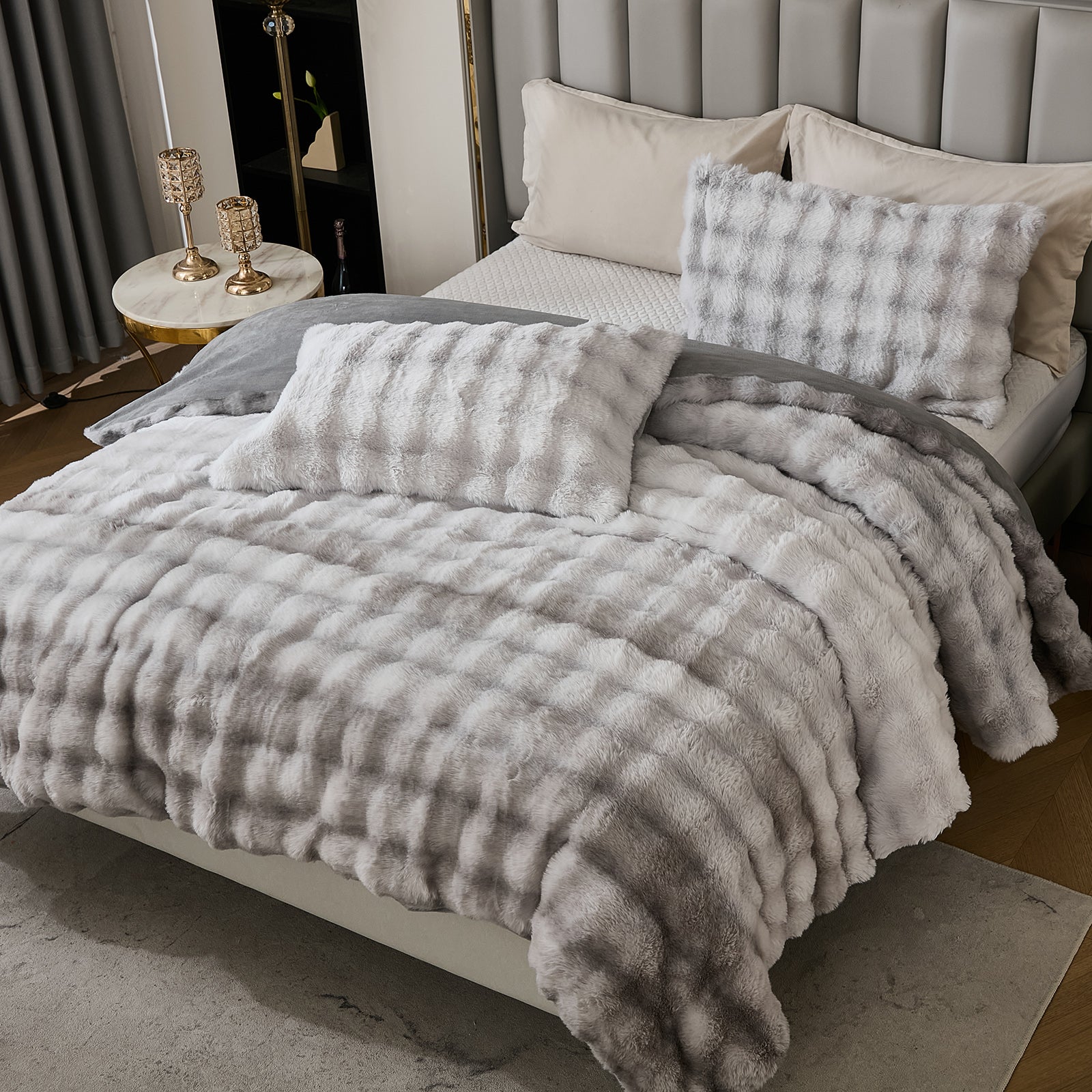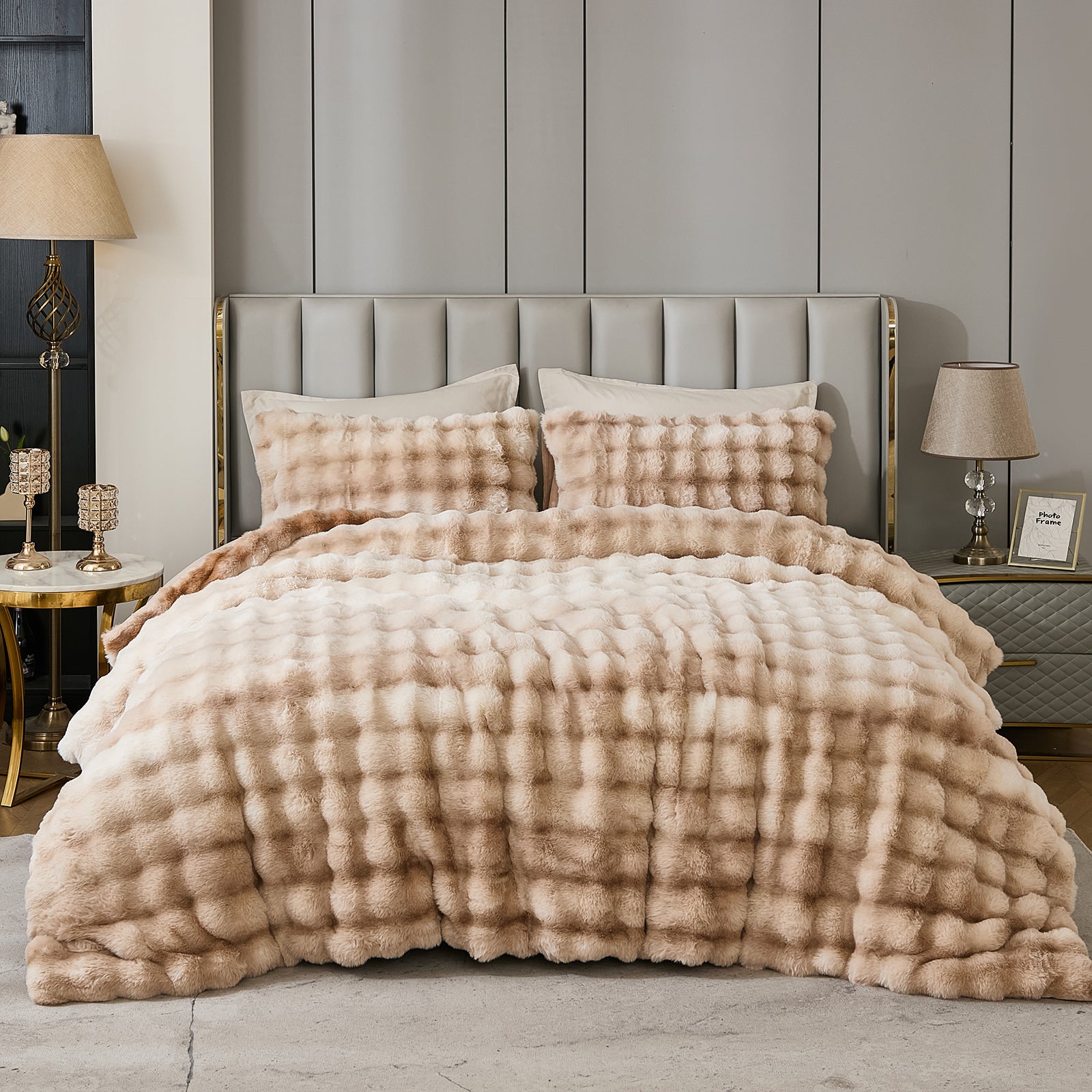Tie Dye Rabbit Faux Fur Comforter Set – 3-Piece Plush Bubble Texture Bedding, Soft Warm Shaggy Comforter for All Seasons