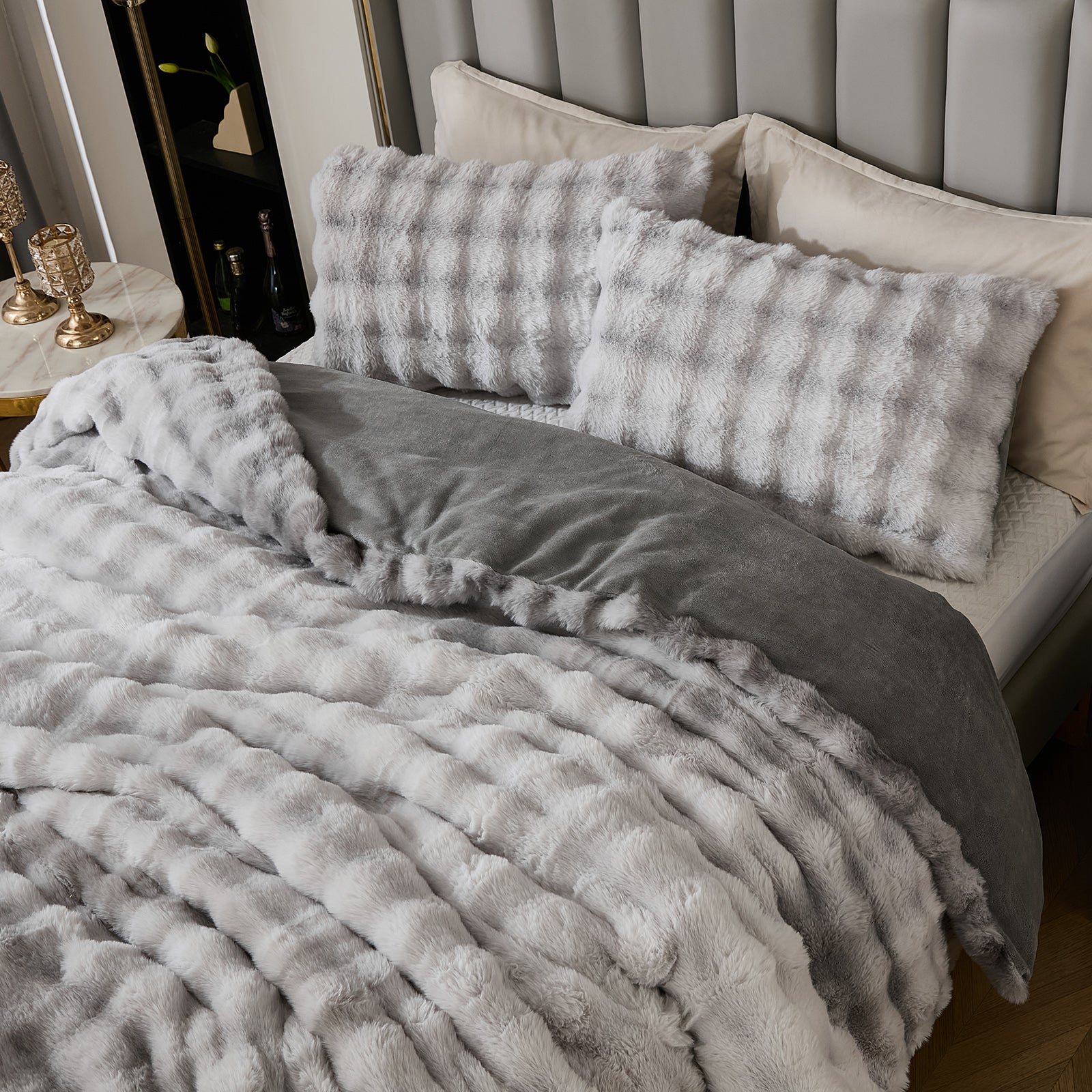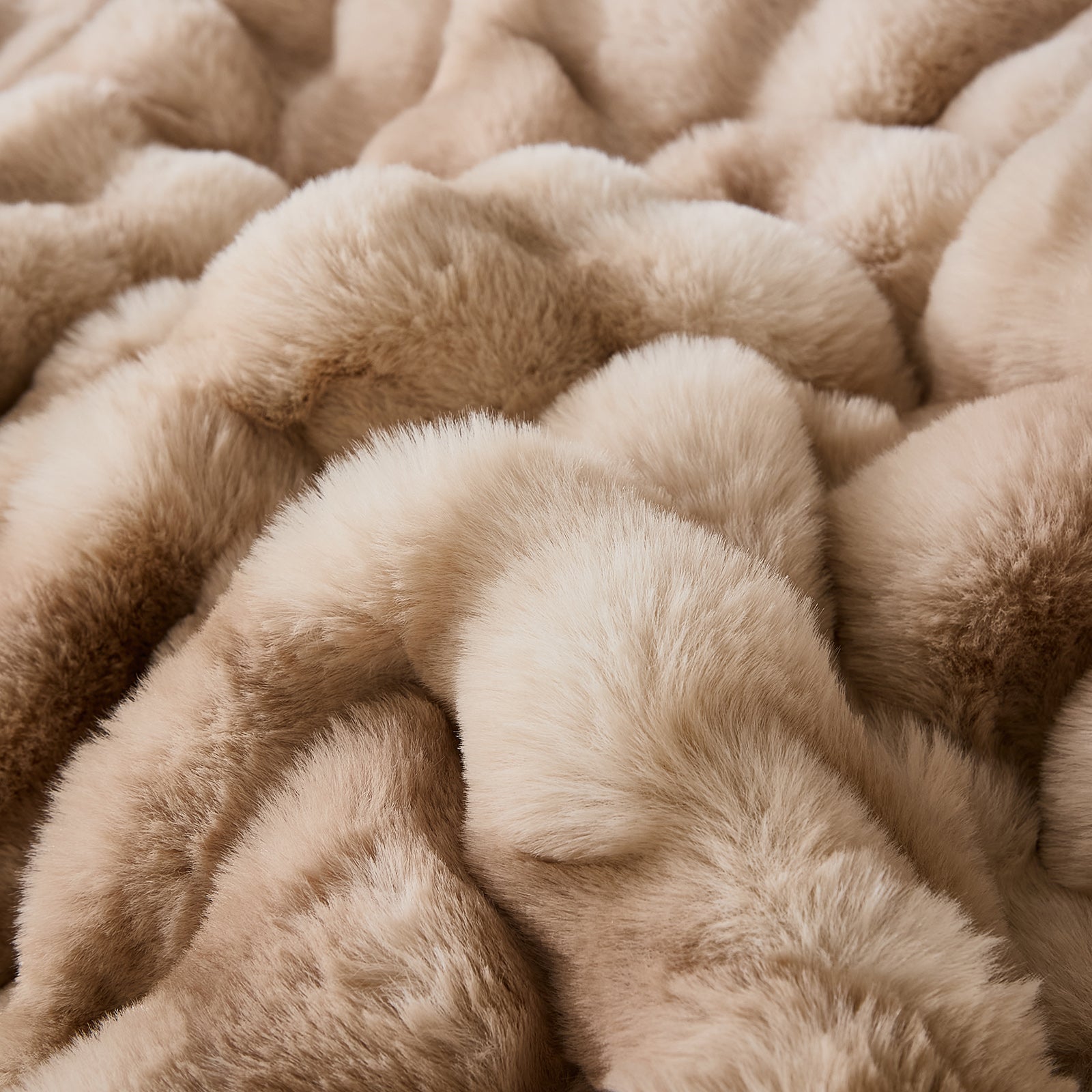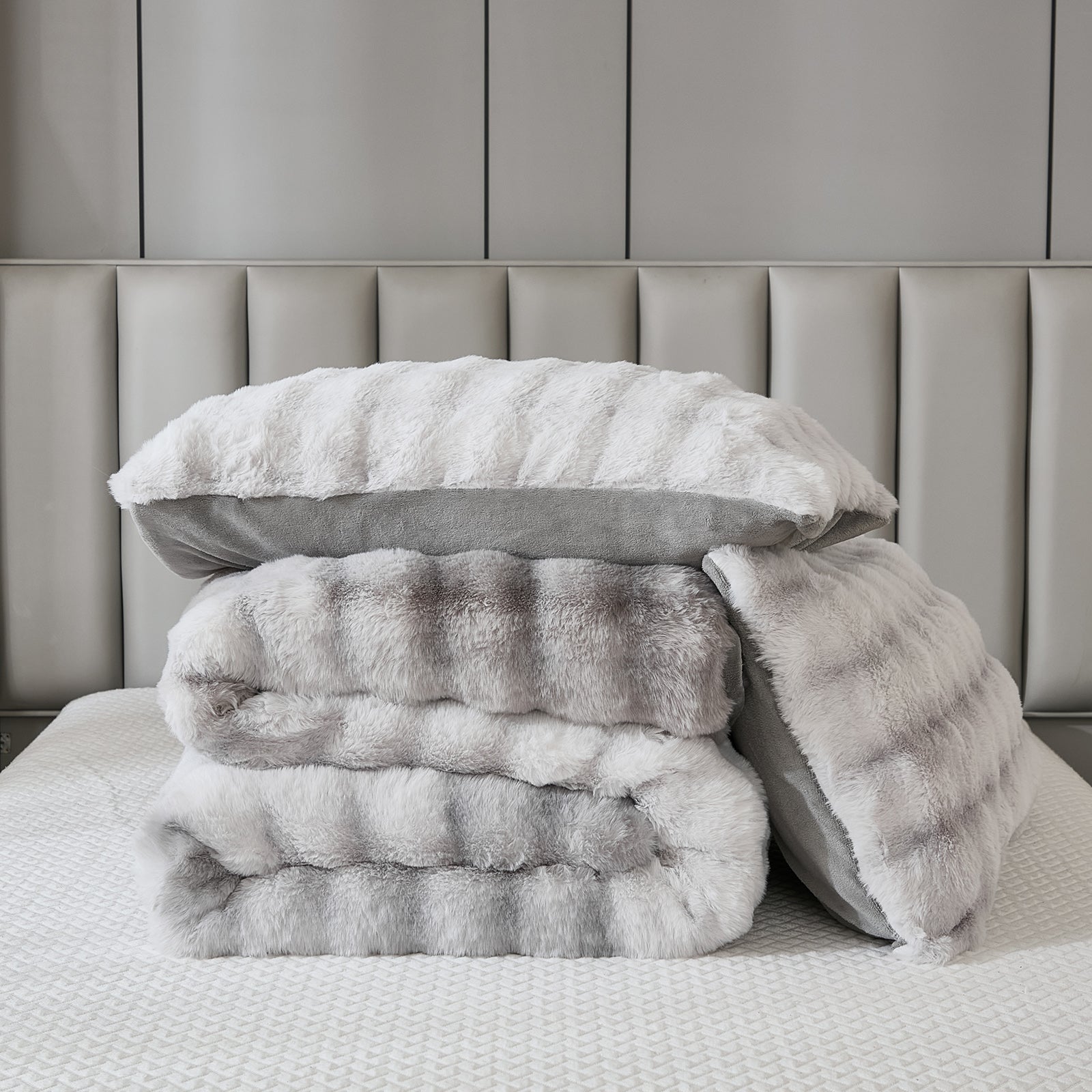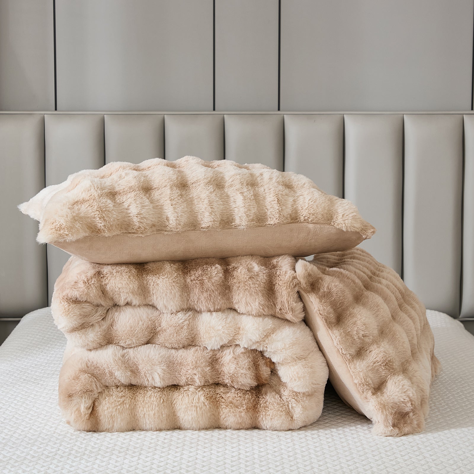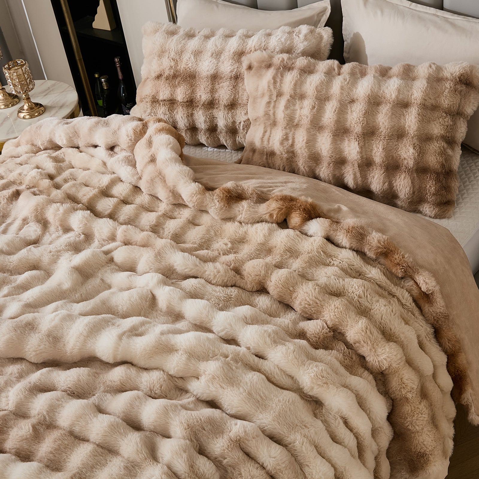 Upgrade your bedroom with the Tie Dye Rabbit Faux Fur Comforter Set, designed for teens and adults who love cozy luxury. The surface is made from premium faux rabbit fur that is soft, smooth, and delicately fluffy, paired with a unique 3D bubble texture for extra volume and comfort. The reverse side uses short plush velvet, giving you a gentle touch against the skin and balanced warmth all year round.