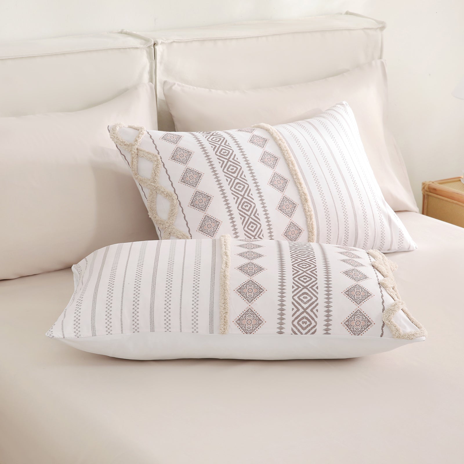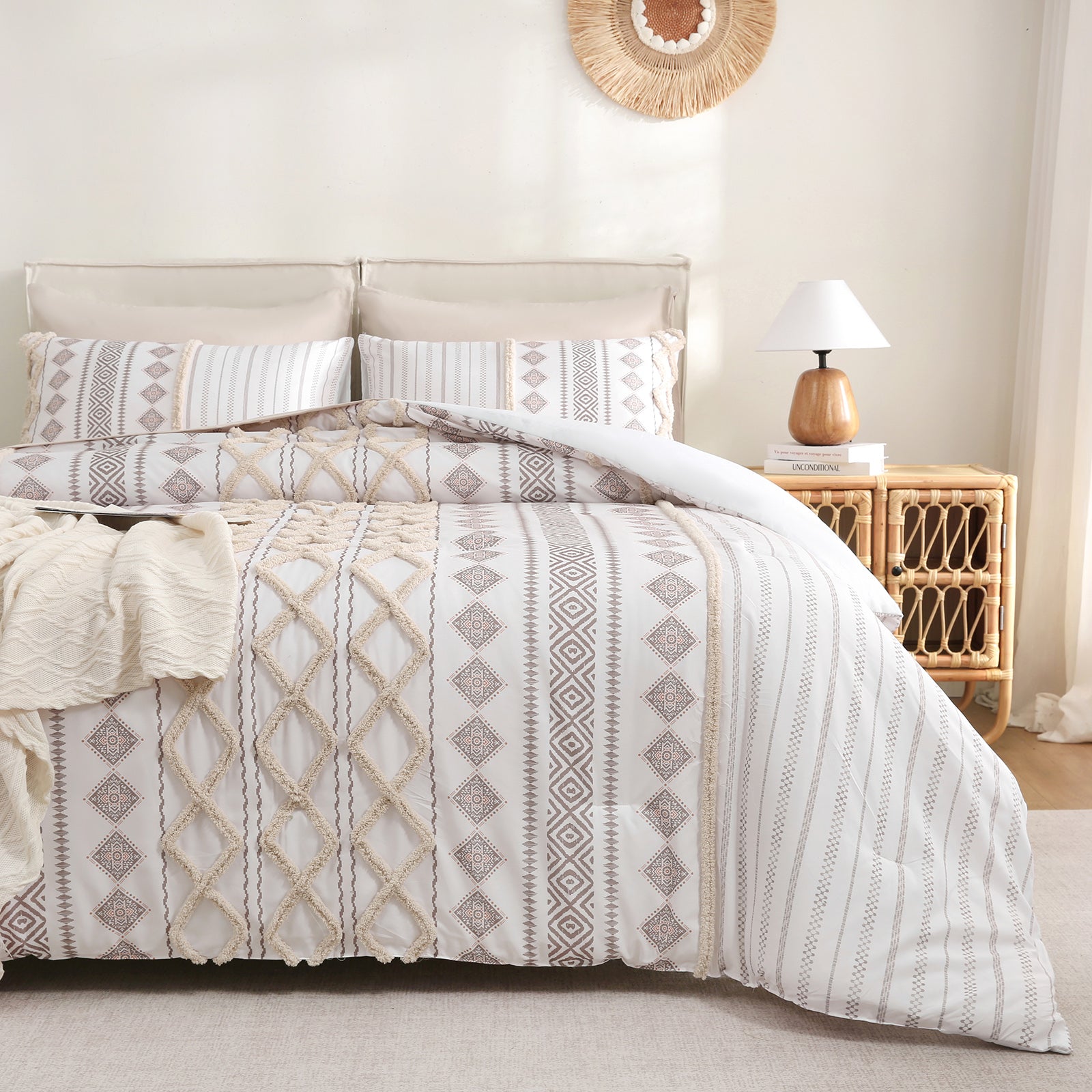 Upgrade your bedroom with the Tufted Boho Comforter Set Bed in a Bag, a perfect blend of farmhouse charm and modern comfort. Designed with Aztec-inspired tufting, this bedding brings shabby chic, boho, and Western character into your décor.