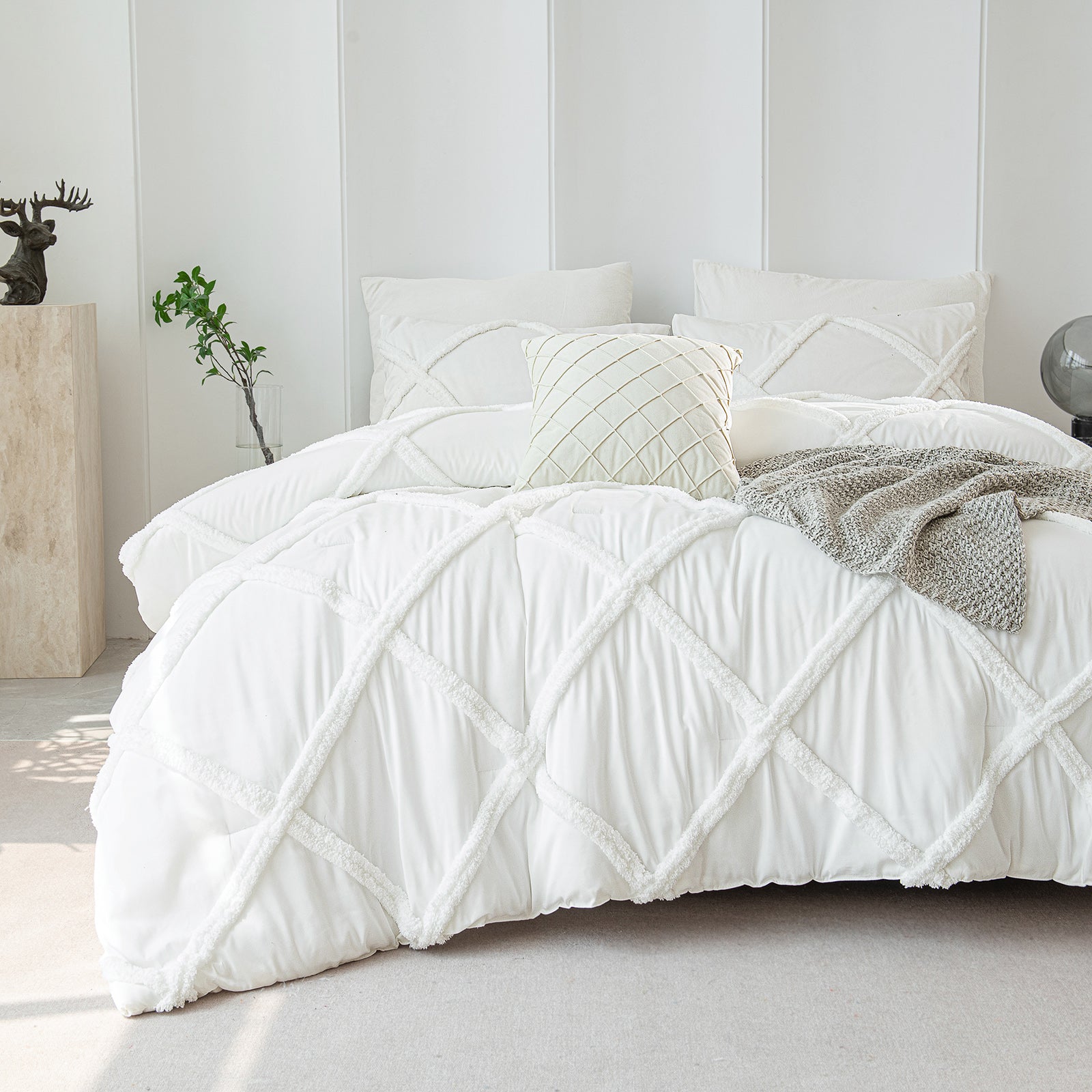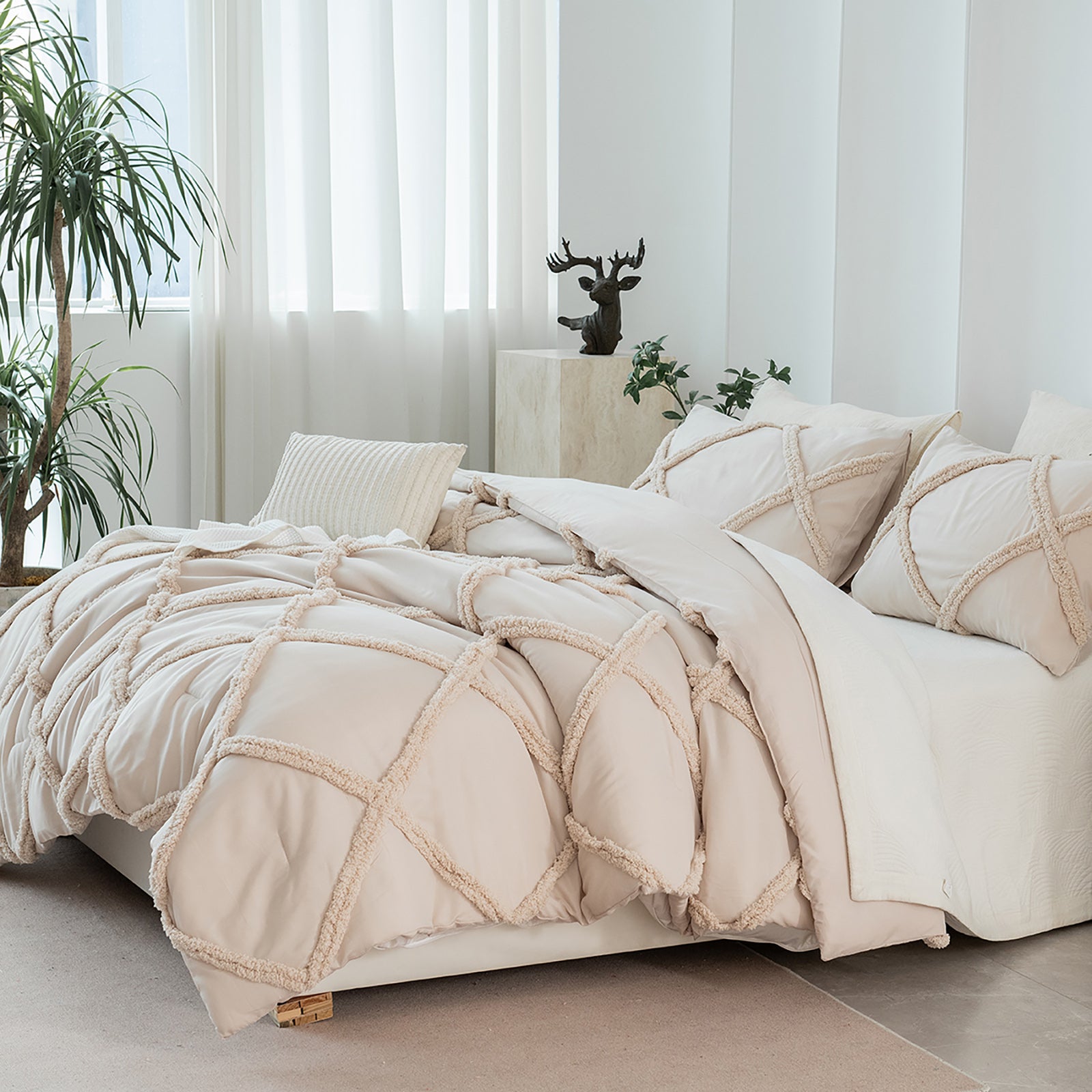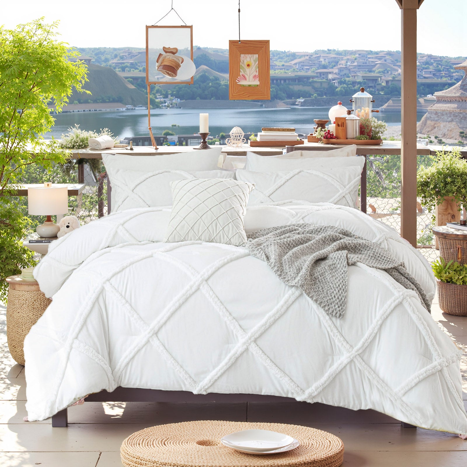 Refresh your bedroom with the Tufted Comforter Set, a perfect blend of farmhouse charm and modern boho elegance. Featuring a neutral tone with geometric tufted embroidery, this bedding set adds texture and sophistication while creating a cozy, welcoming atmosphere.