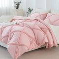 Each 3-piece set includes a comforter and two pillowcases, available in Queen and King sizes. The versatile solid color design pairs beautifully with any décor, from minimalist to eclectic. For convenience, the comforter is machine washable, wrinkle-resistant, and fluffs easily after unpacking.