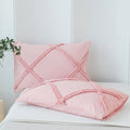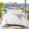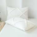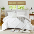 Tufted Comforter Set With Pillowcase – Shabby Chic Farmhouse Bedding with Geometric Embroidery, Soft Lightweight Quilt 3-Piece, Queen/King Options