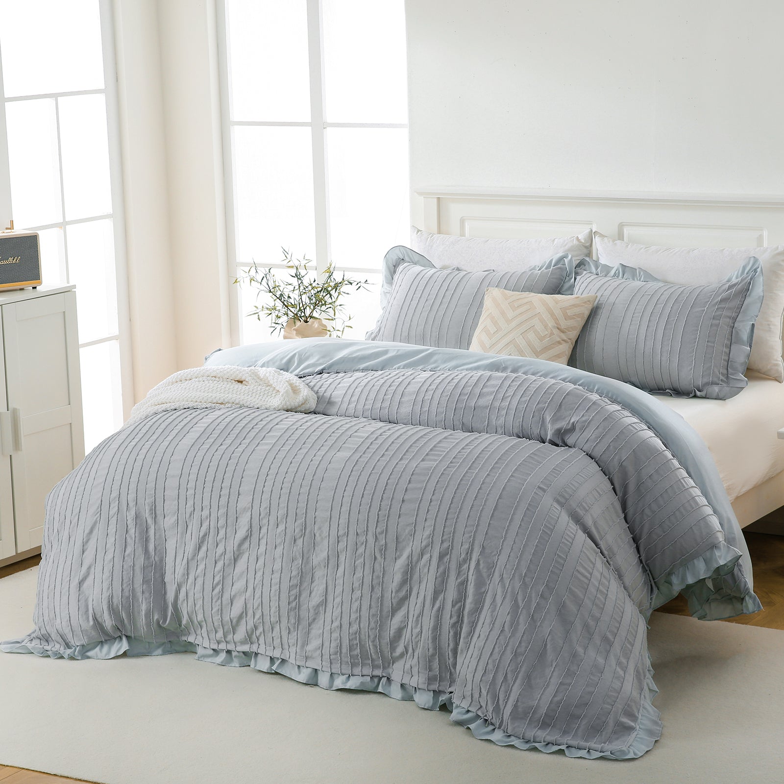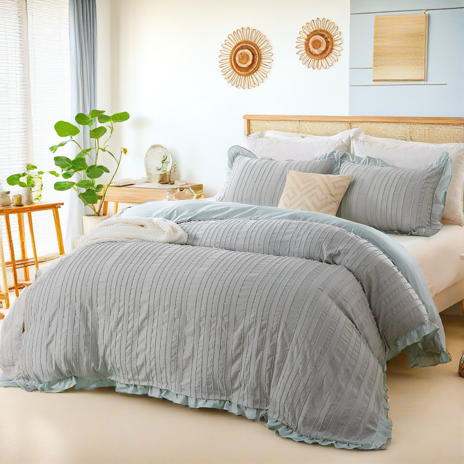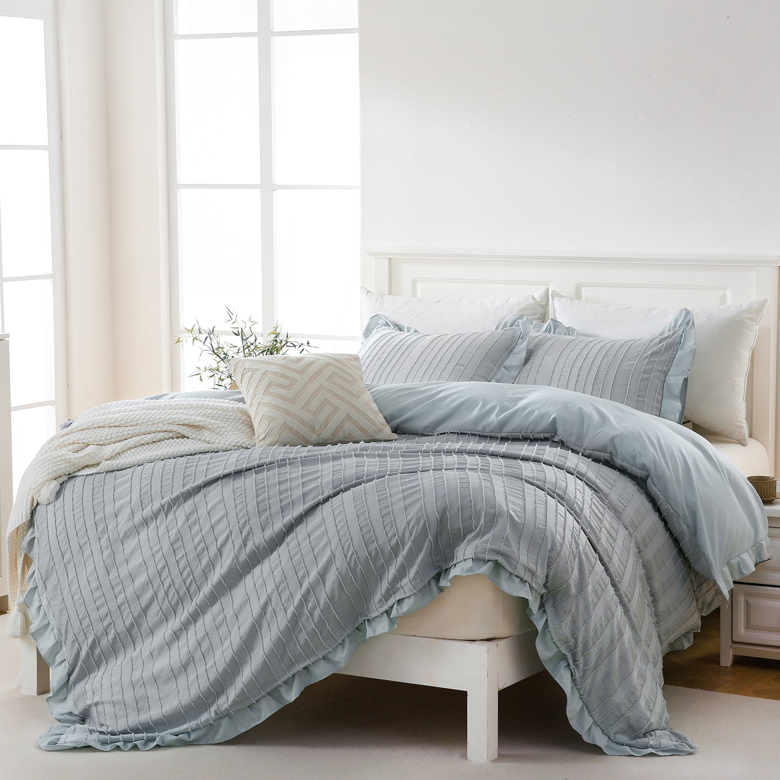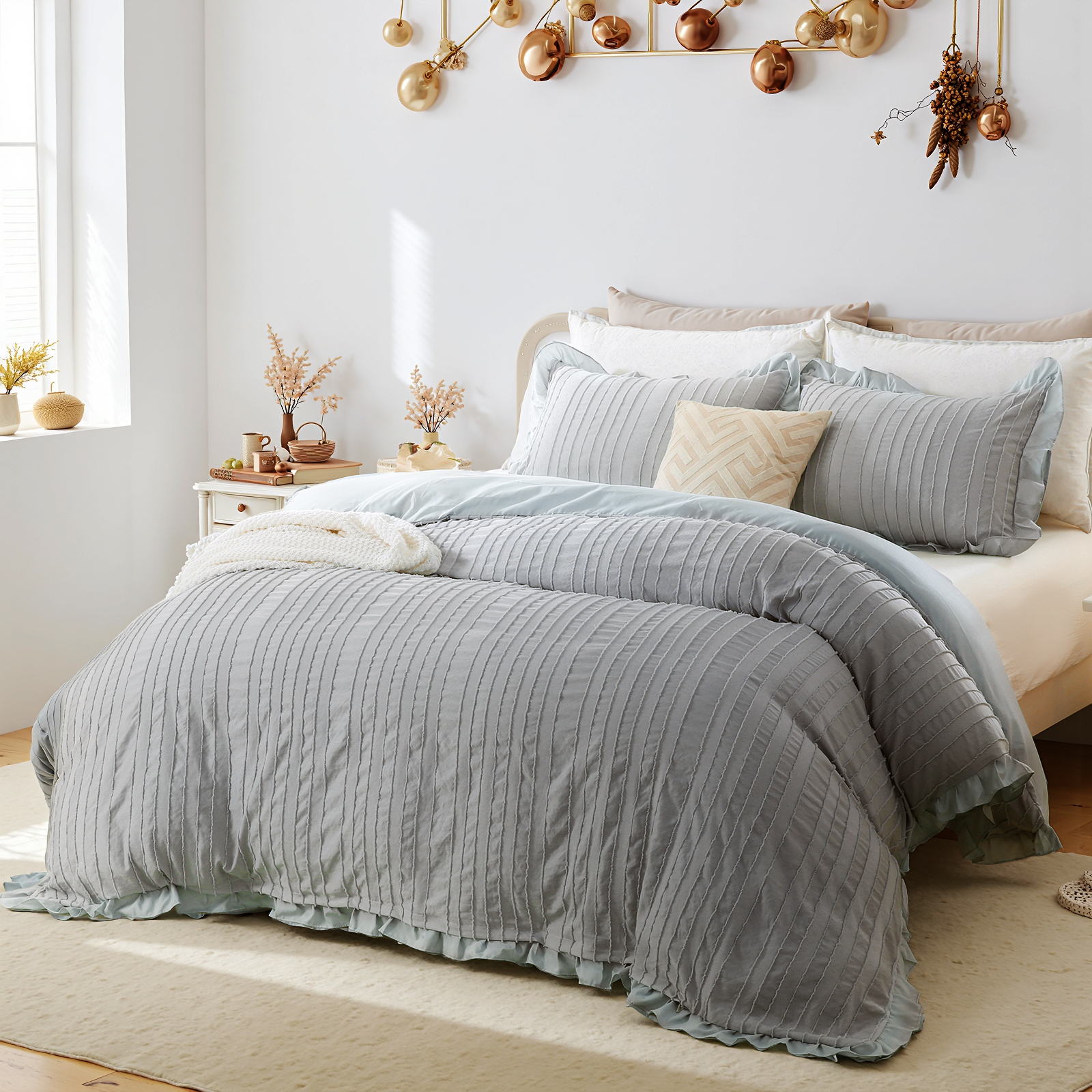 For convenience, this comforter set is machine washable and easy to maintain. Simply tumble dry on low to restore its shape after unpacking. Ideal for farmhouse, rustic, or shabby chic bedrooms, the Tufted Ruffle Comforter Set blends cozy texture with timeless elegance.