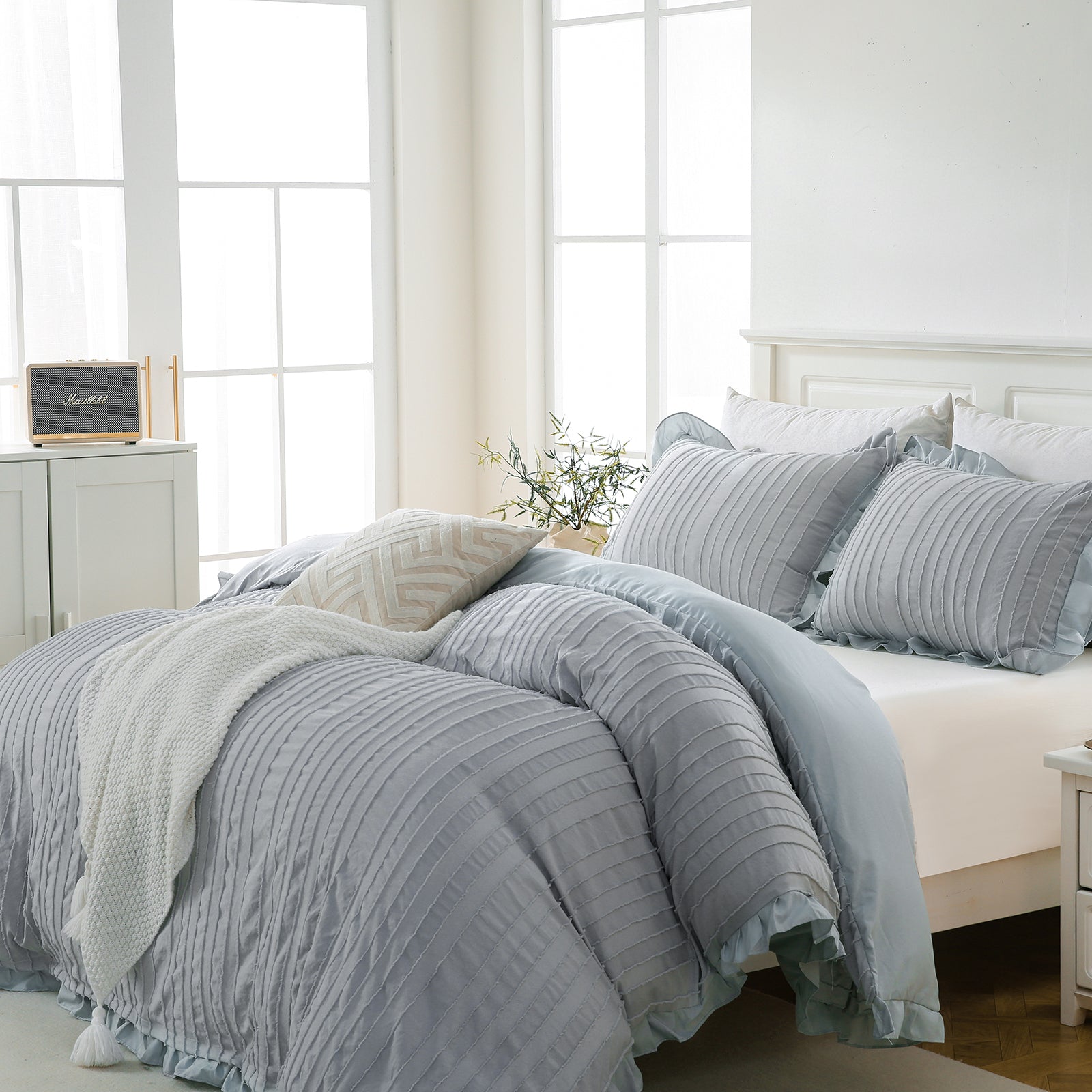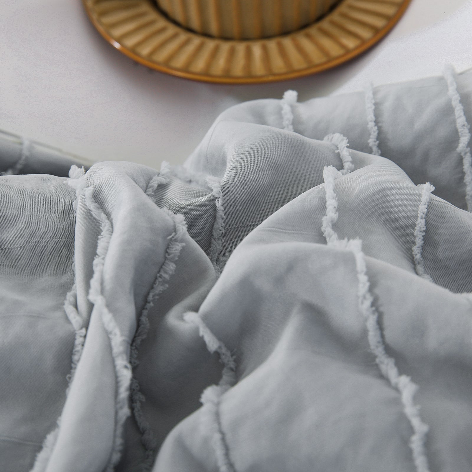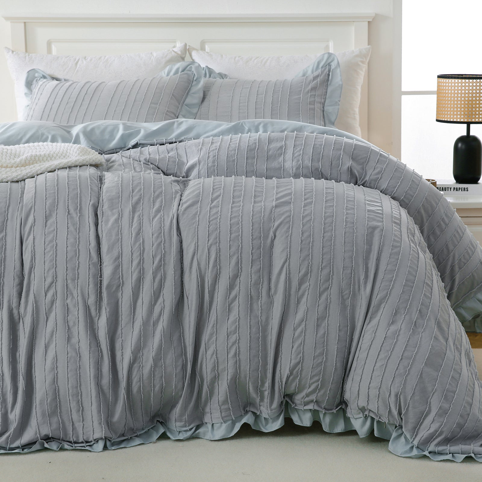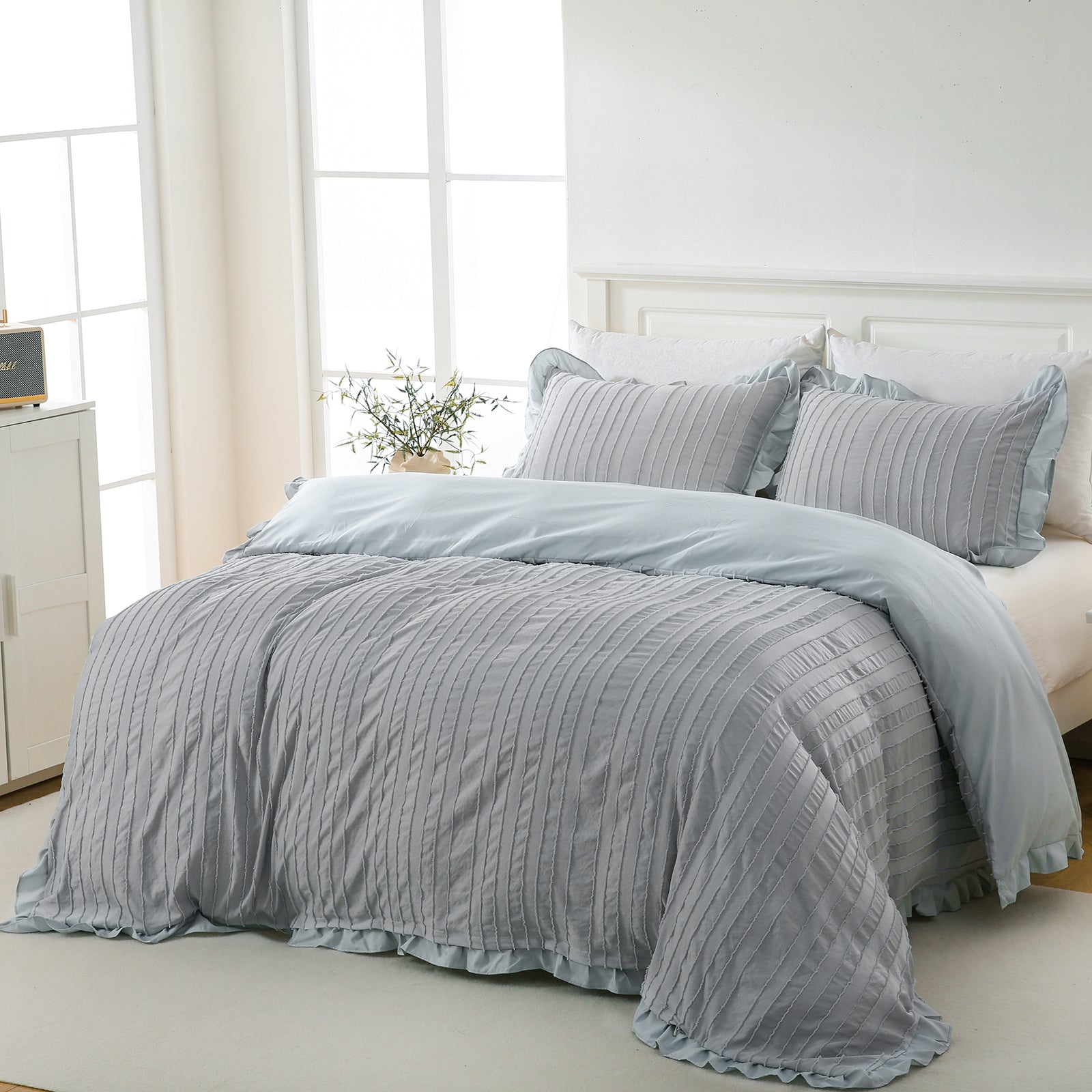 For convenience, this comforter set is machine washable and easy to maintain. Simply tumble dry on low to restore its shape after unpacking. Ideal for farmhouse, rustic, or shabby chic bedrooms, the Tufted Ruffle Comforter Set blends cozy texture with timeless elegance.