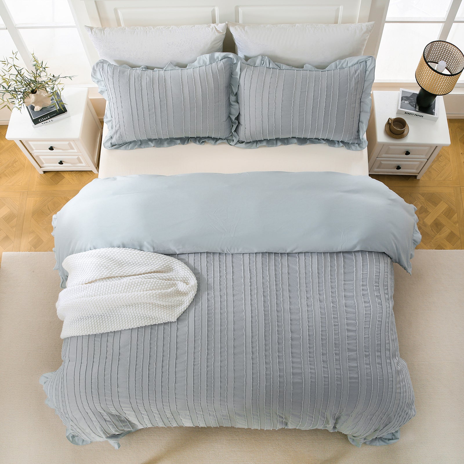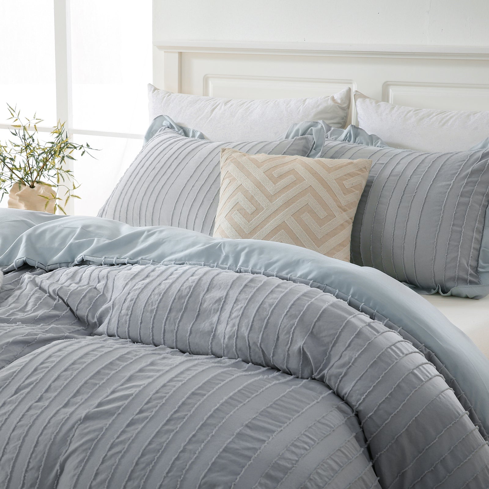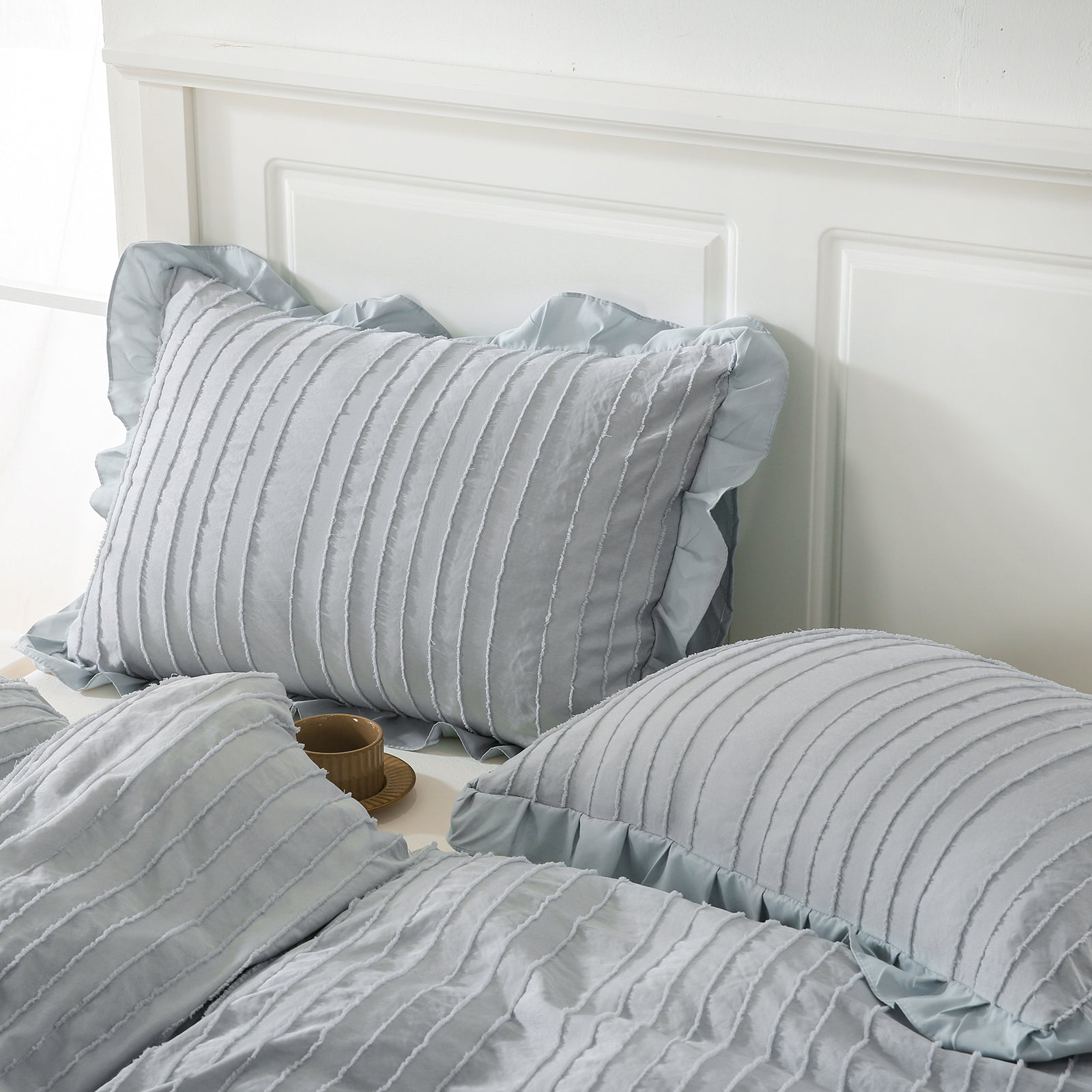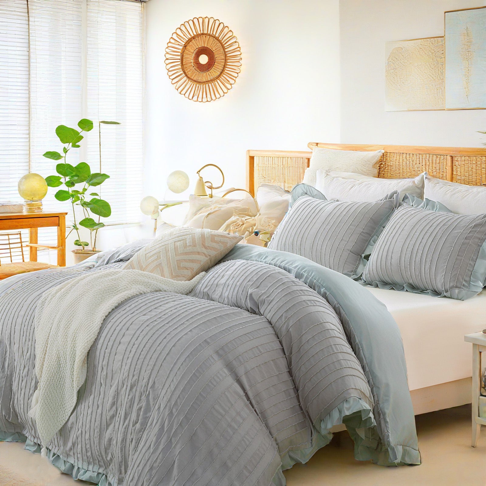 For convenience, this comforter set is machine washable and easy to maintain. Simply tumble dry on low to restore its shape after unpacking. Ideal for farmhouse, rustic, or shabby chic bedrooms, the Tufted Ruffle Comforter Set blends cozy texture with timeless elegance.