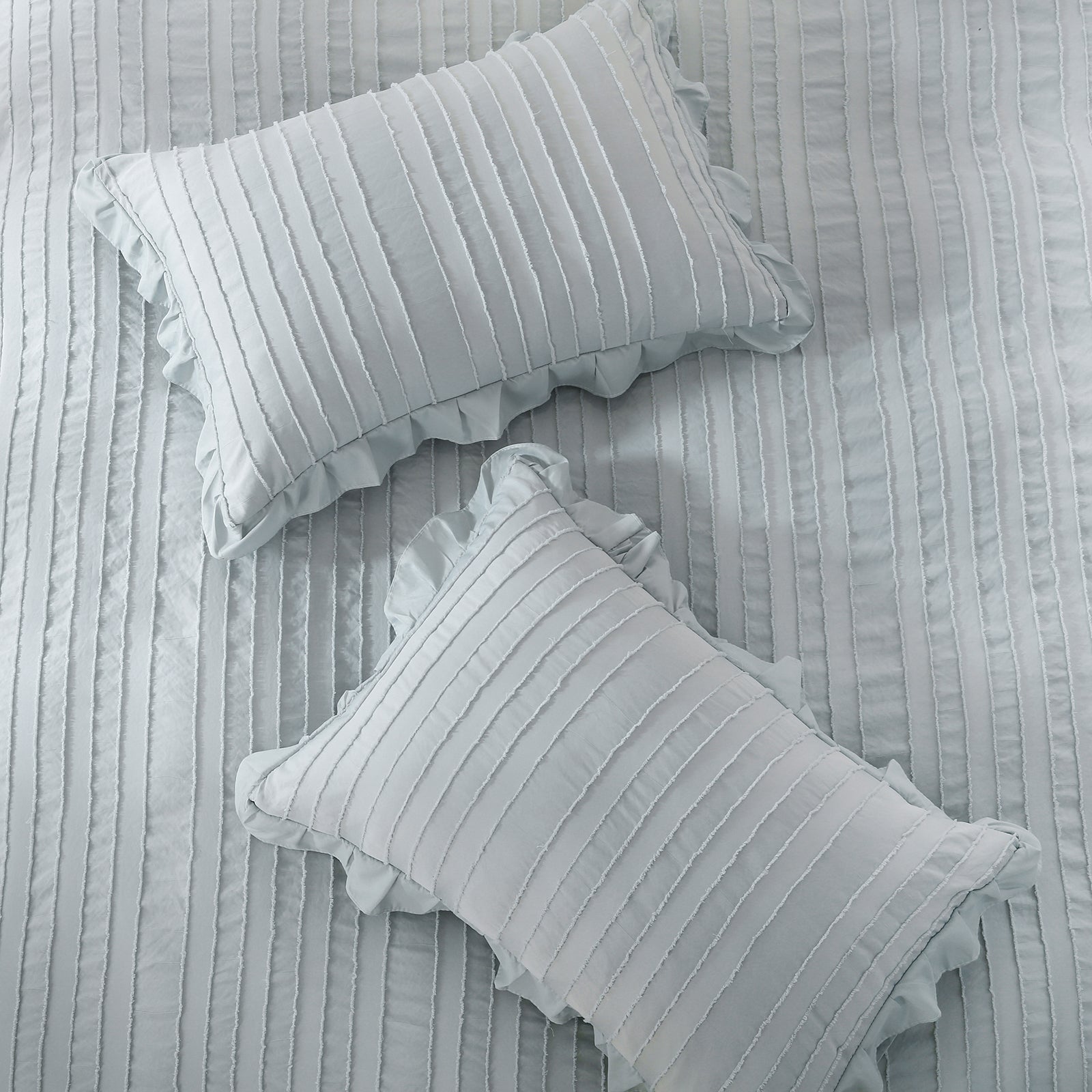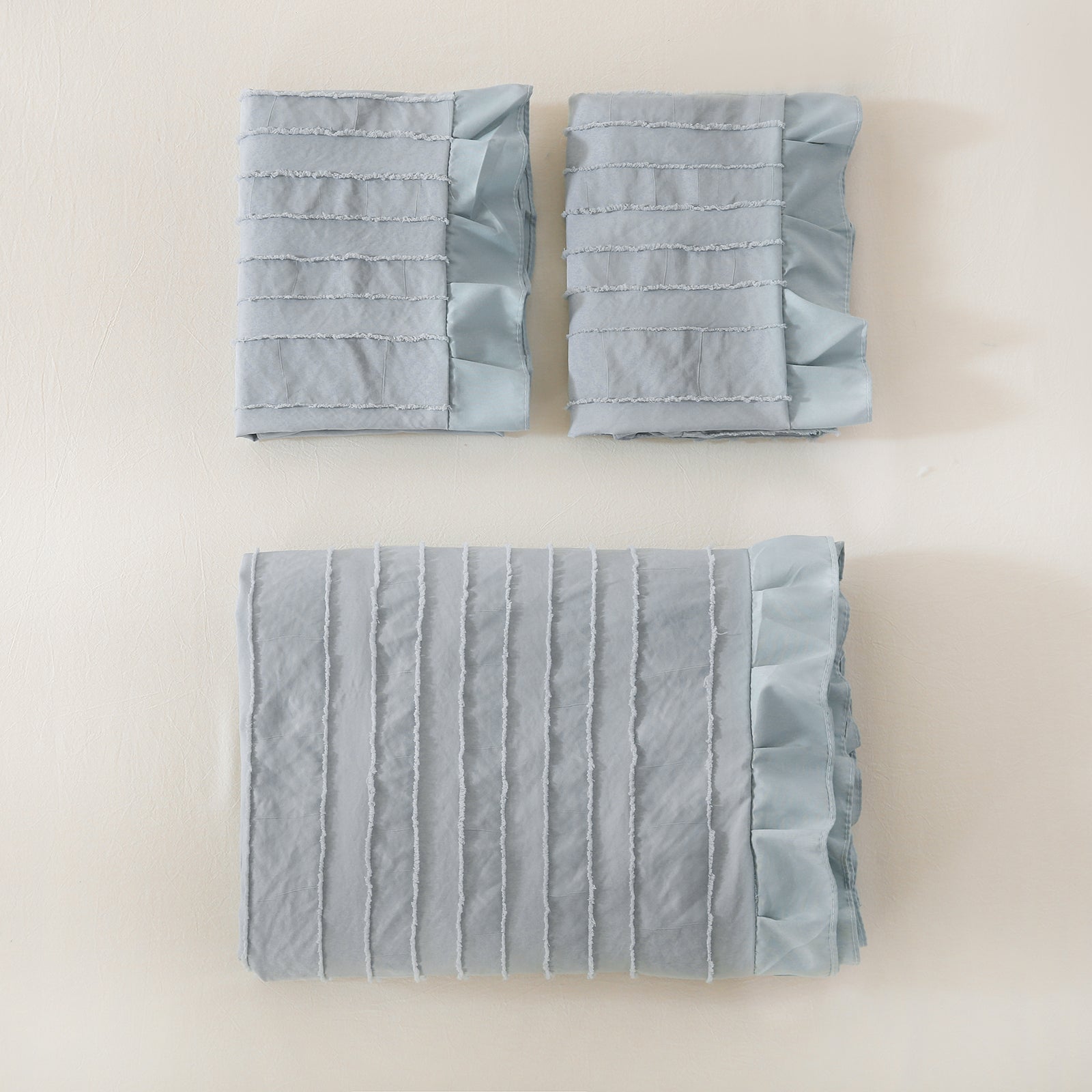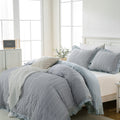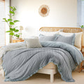 Tufted Ruffle Comforter Set – Soft Lightweight Jacquard Bedding with Fringe Pattern, Shabby Chic Farmhouse Quilt 3-Piece, King/Queen Options