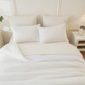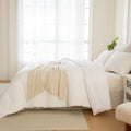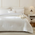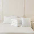 Care is simple. Wash cold on a gentle cycle and tumble dry low. Because the set is vacuum packed for shipping, a quick low heat tumble helps restore its smooth, plush finish.