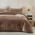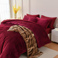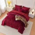 Velvet Comforter Set - Soft Plush Distressed Velvet Bedding with Pillowcases and Cushion Cover, Warm Shaggy Quilt for Queen King