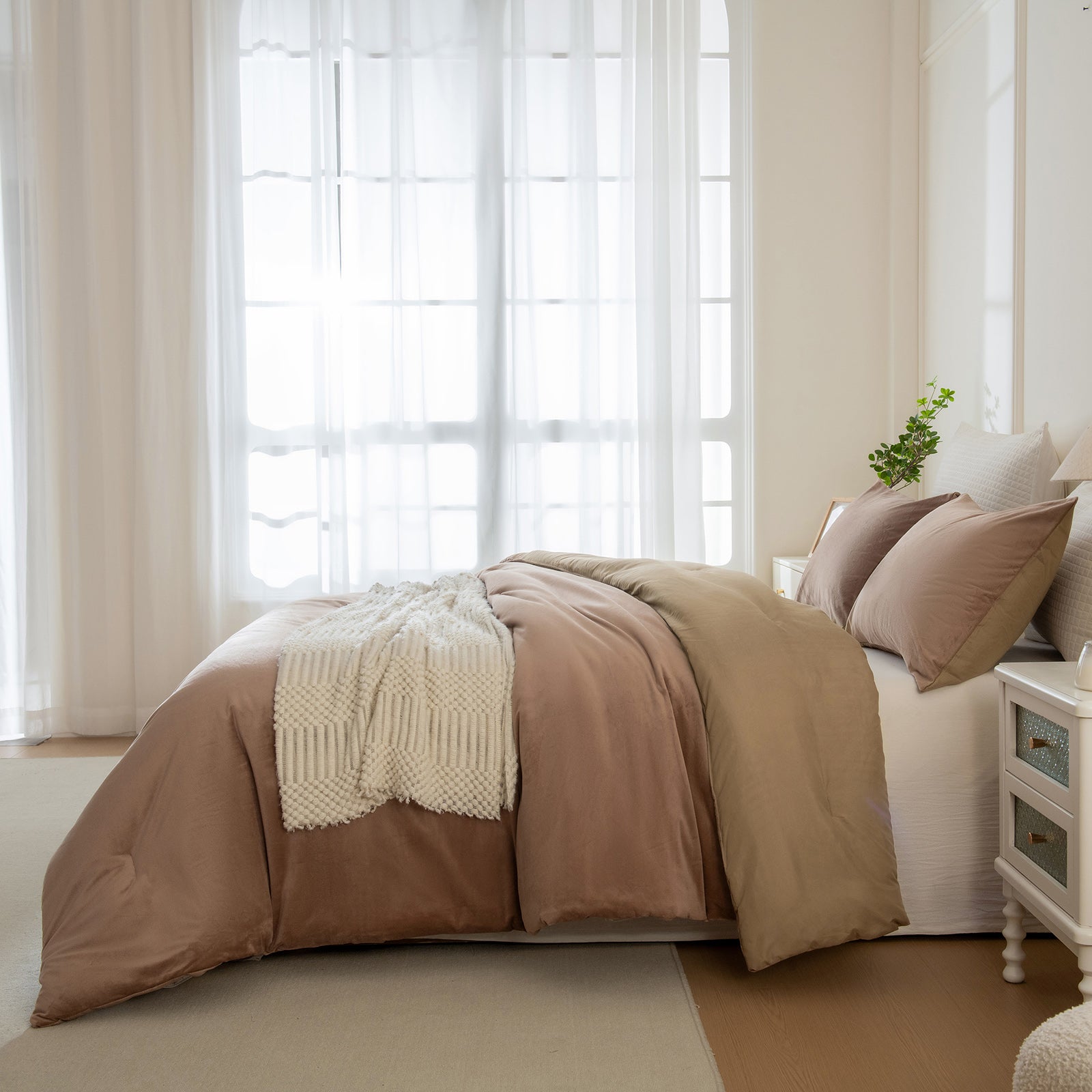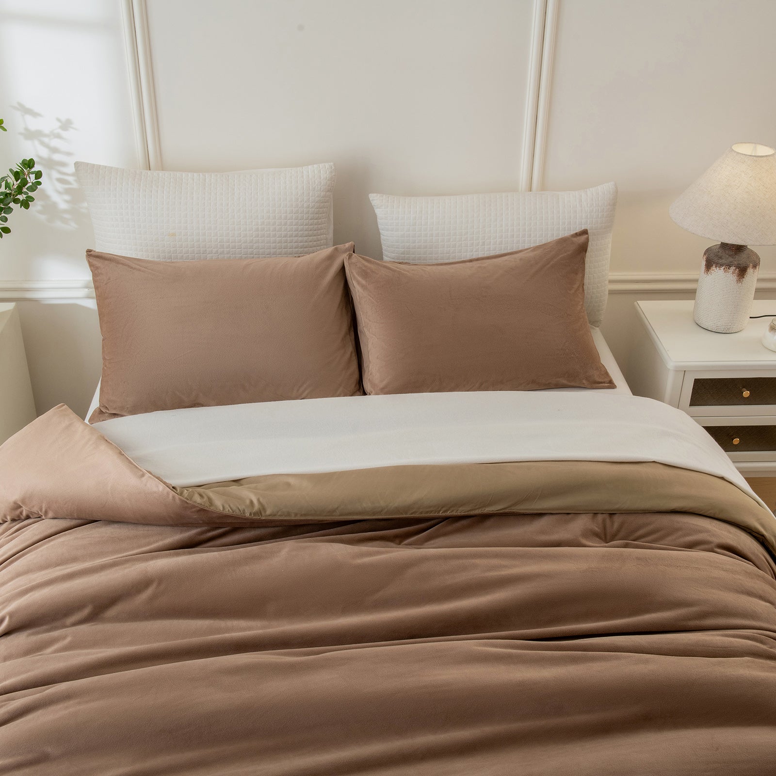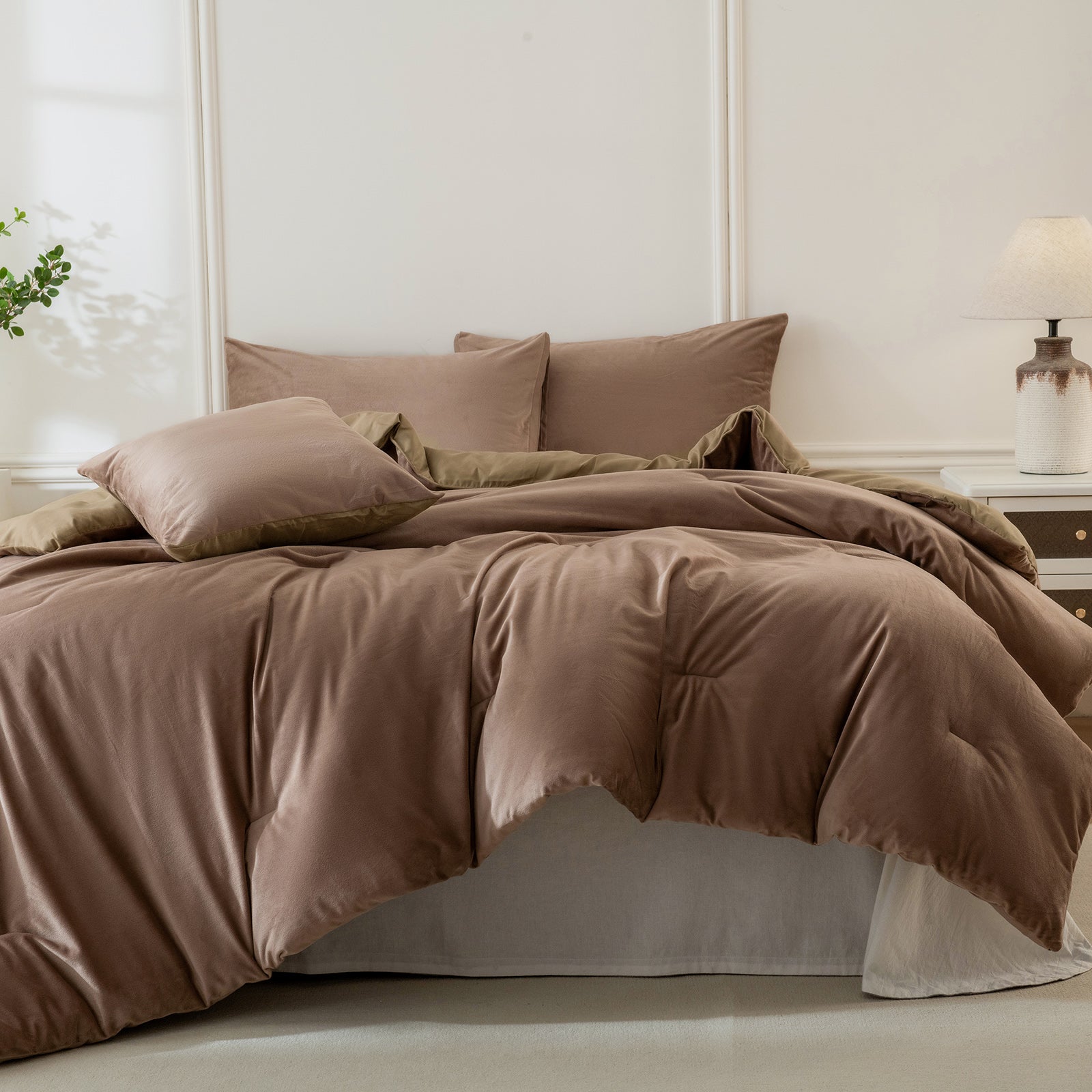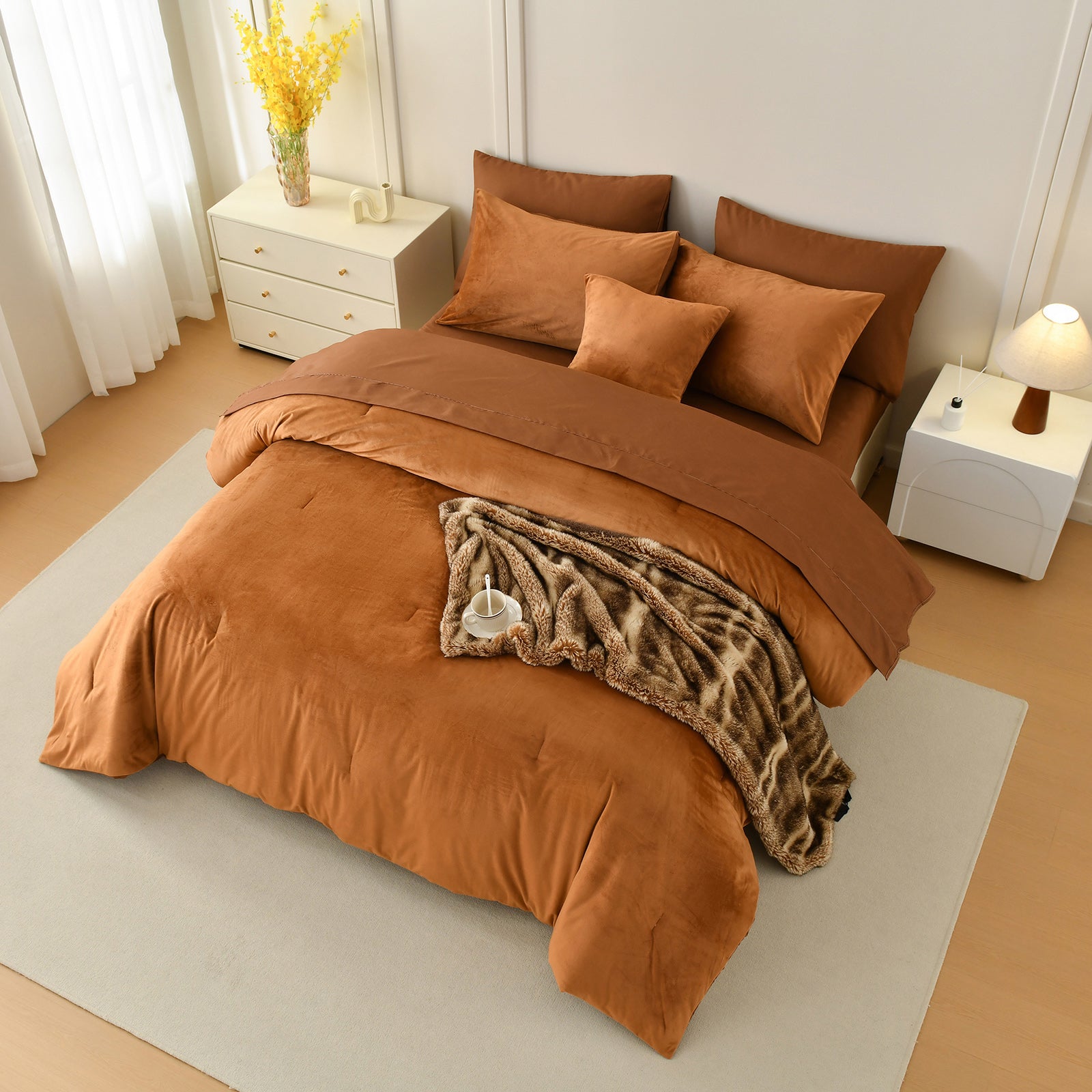 Each set includes a comforter, two matching velvet pillowcases, and a cushion cover for a complete, coordinated bed. Queen and King sizes are available for a perfect fit. The comforter feels fluffy and snug during colder seasons, while staying breathable enough for everyday use.