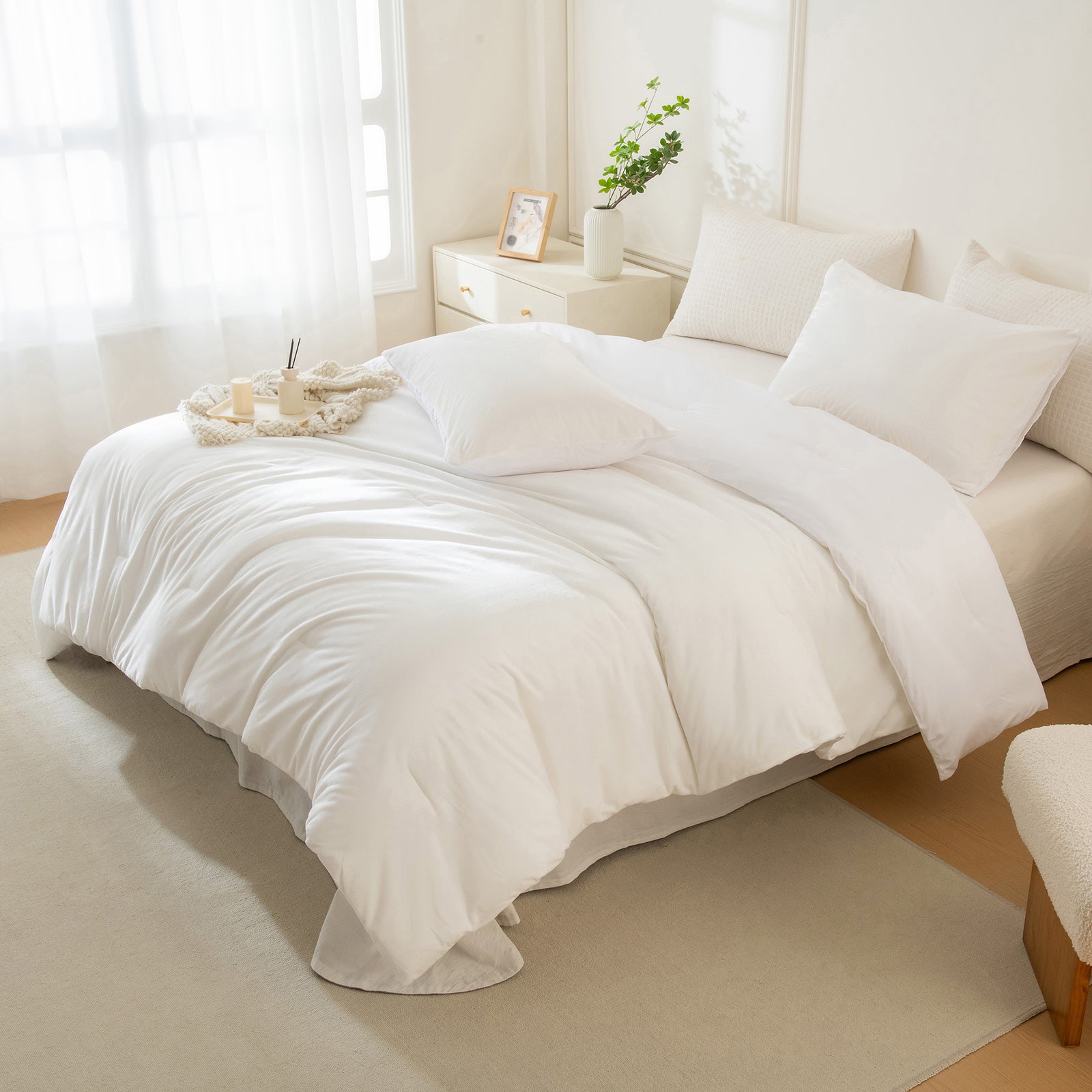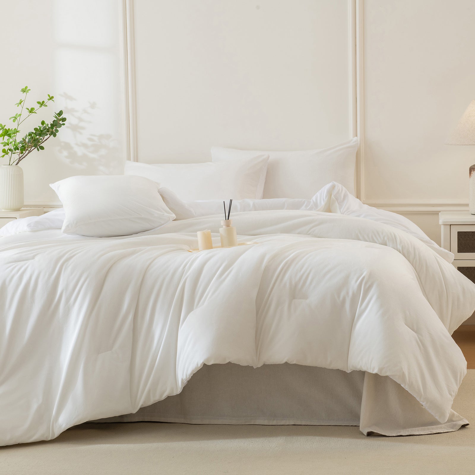 Upgrade your bedroom with the cozy elegance of this Distressed Velvet Comforter Set. The comforter is made with plush velvet that feels soft and warm, giving your bed a rich, modern glam look without sacrificing comfort. The subtle distressed texture and solid color design make it easy to match with minimalist, boho, or luxury decor styles.