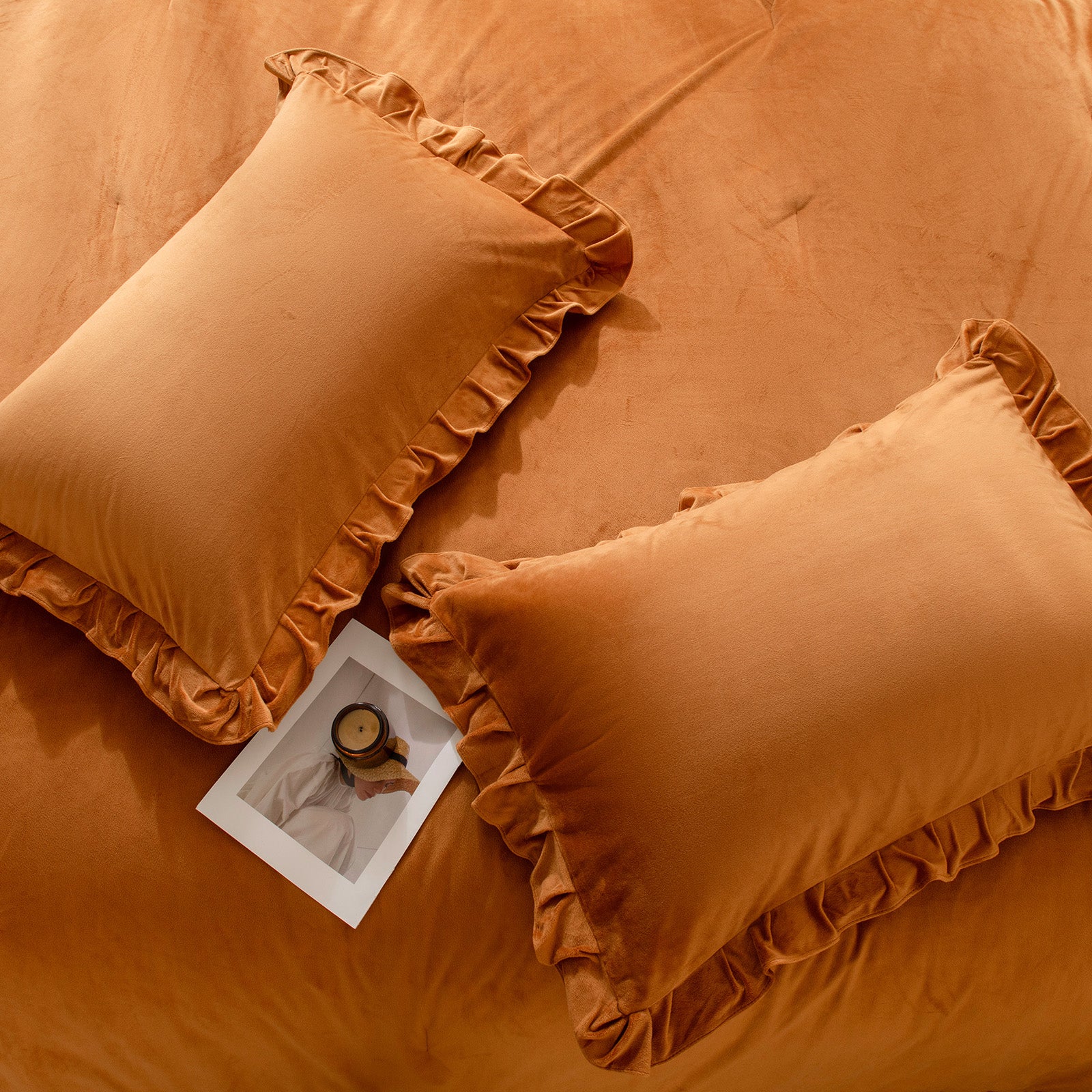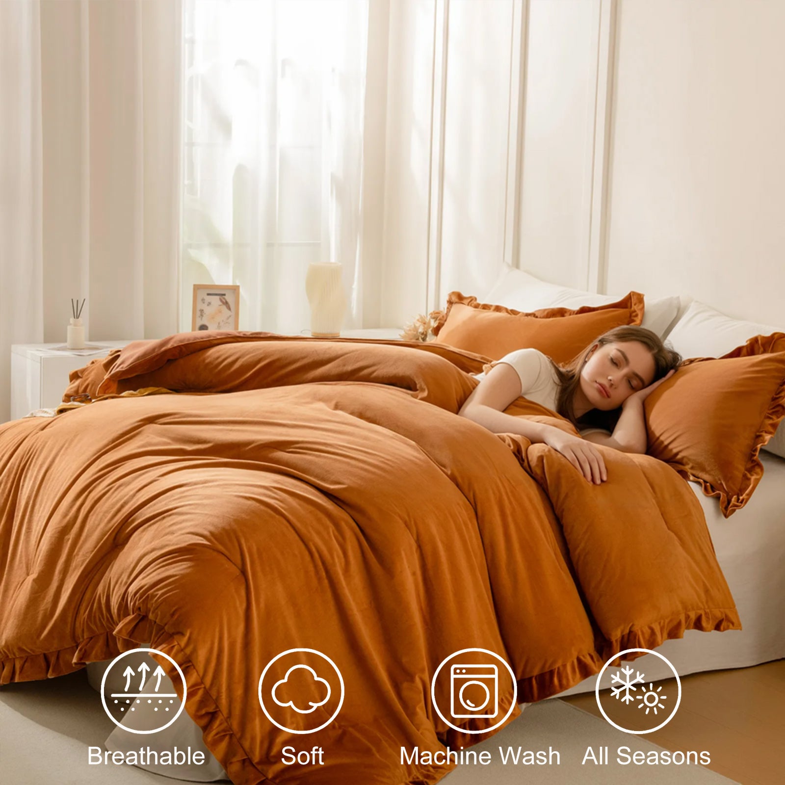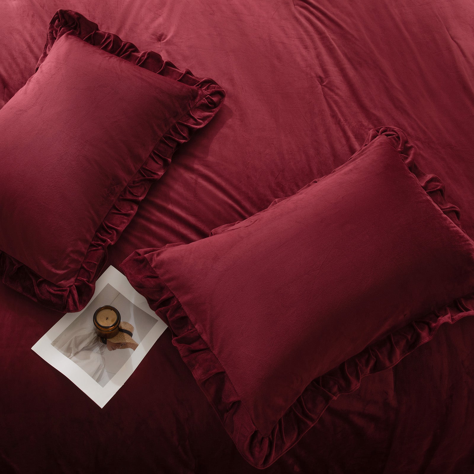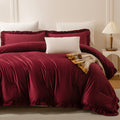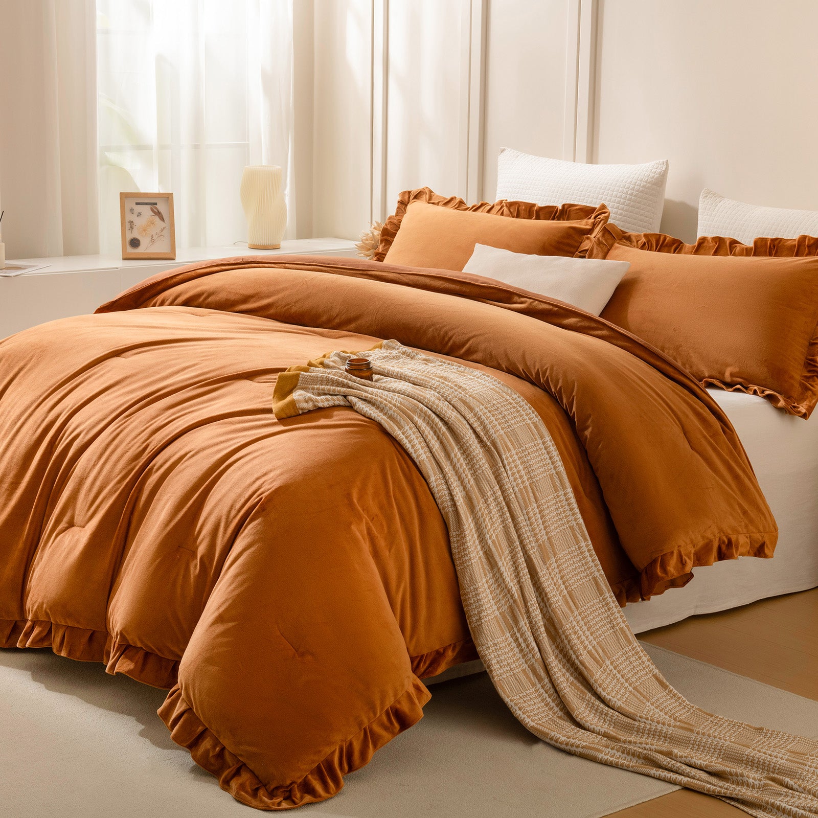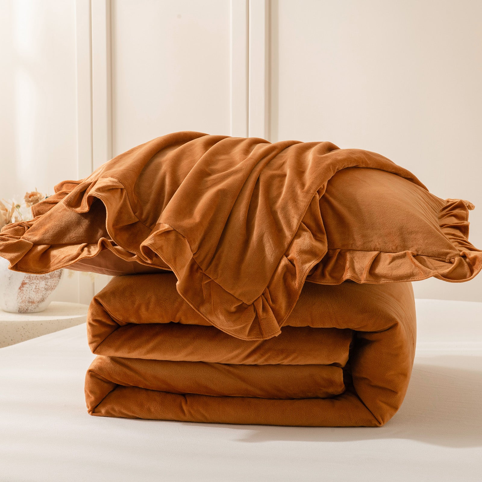 Velvet Ruffle Comforter Set – Soft Plush Bedding with Matching Pillowcases, Romantic Shabby Chic Style, Queen/King 3-Piece