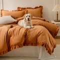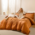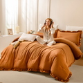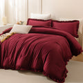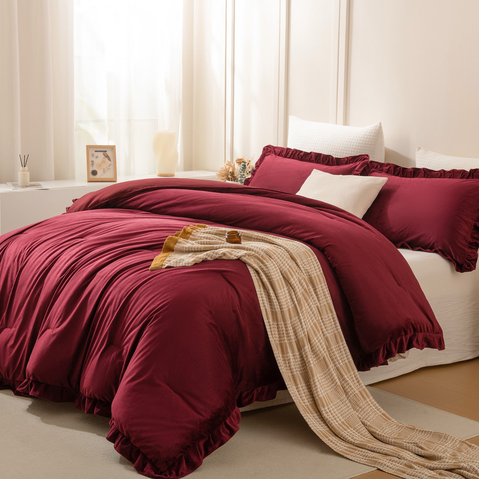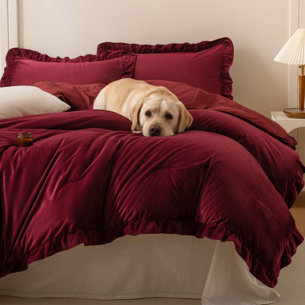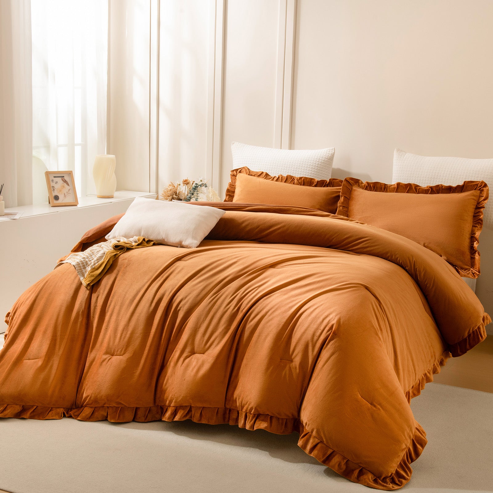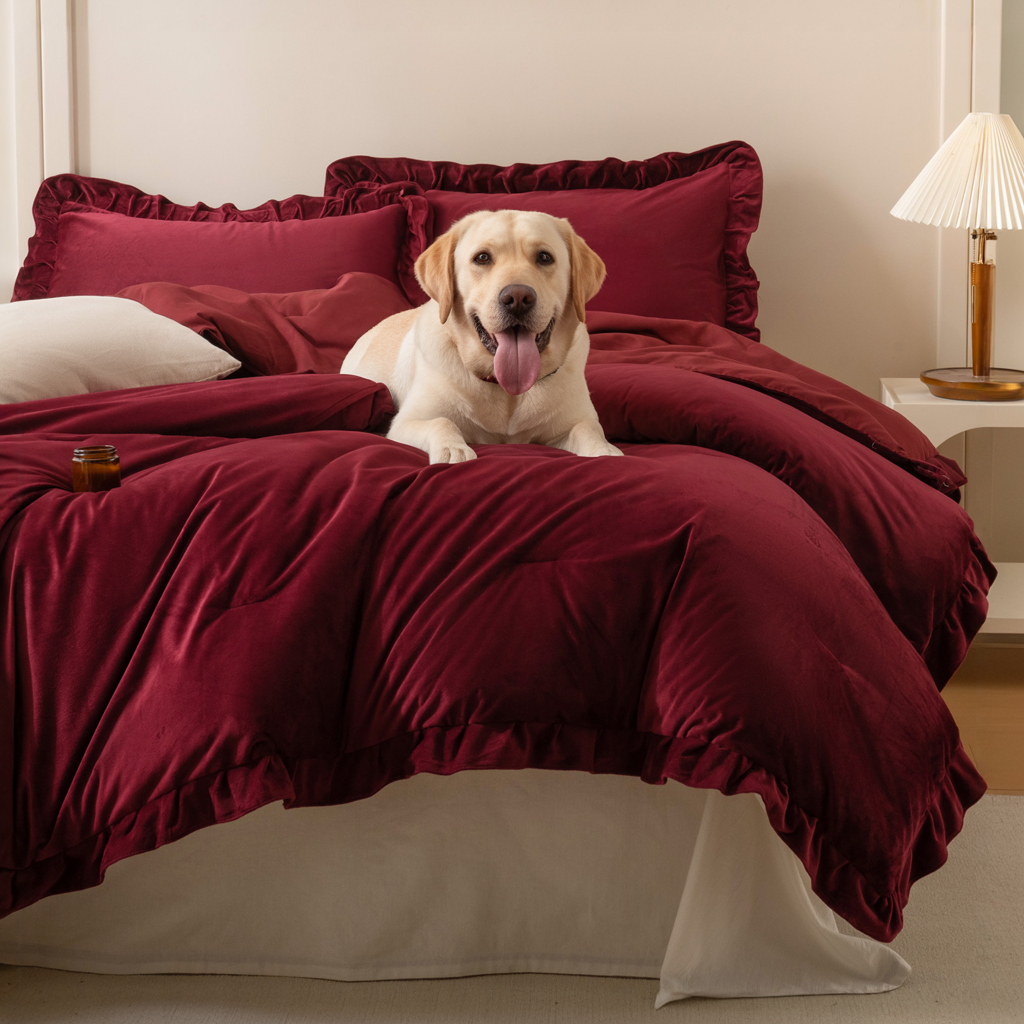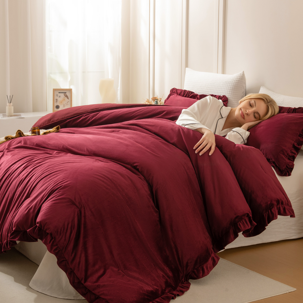 Velvet Ruffle Comforter Set – Soft Plush Bedding with Matching Pillowcases, Romantic Shabby Chic Style, Queen/King 3-Piece