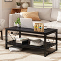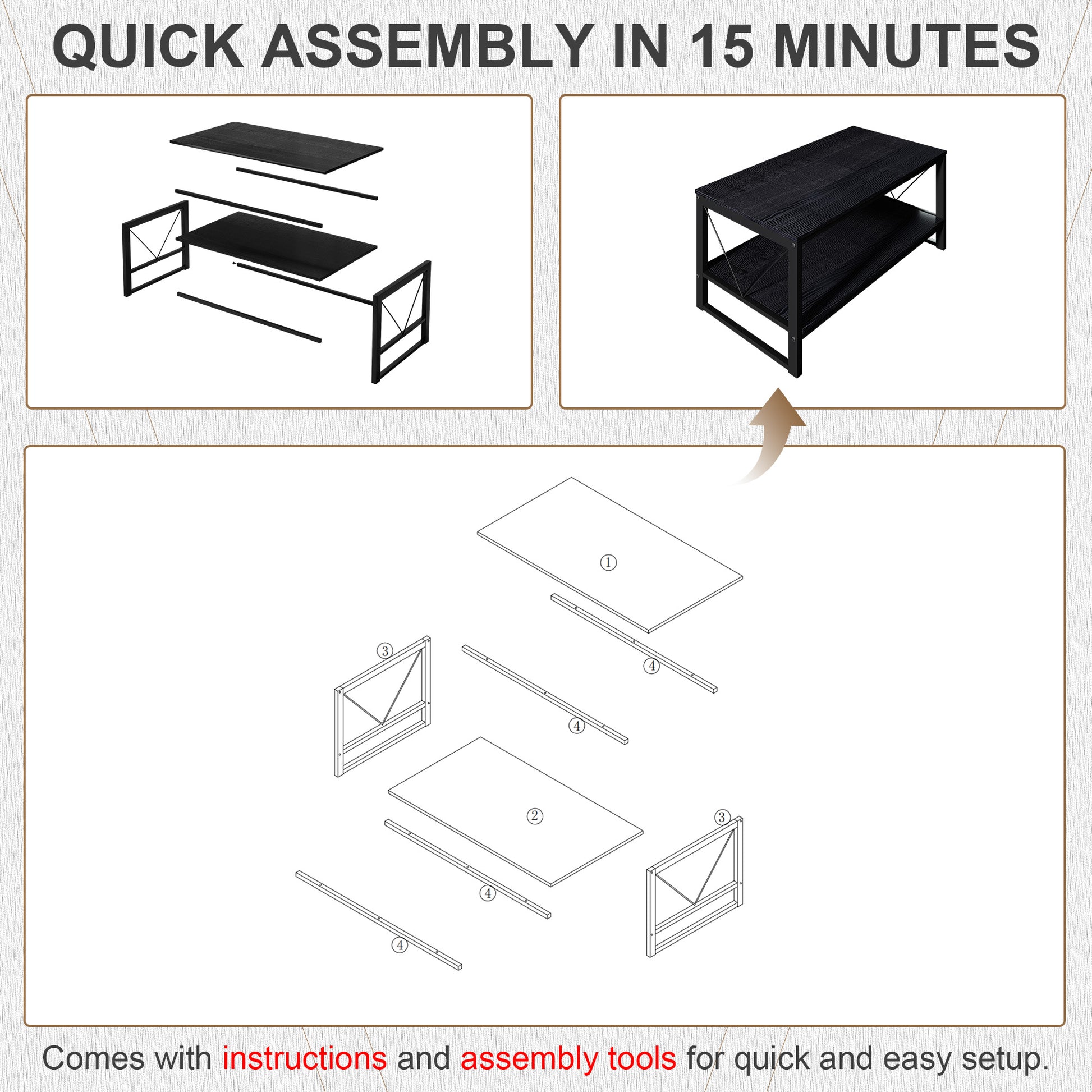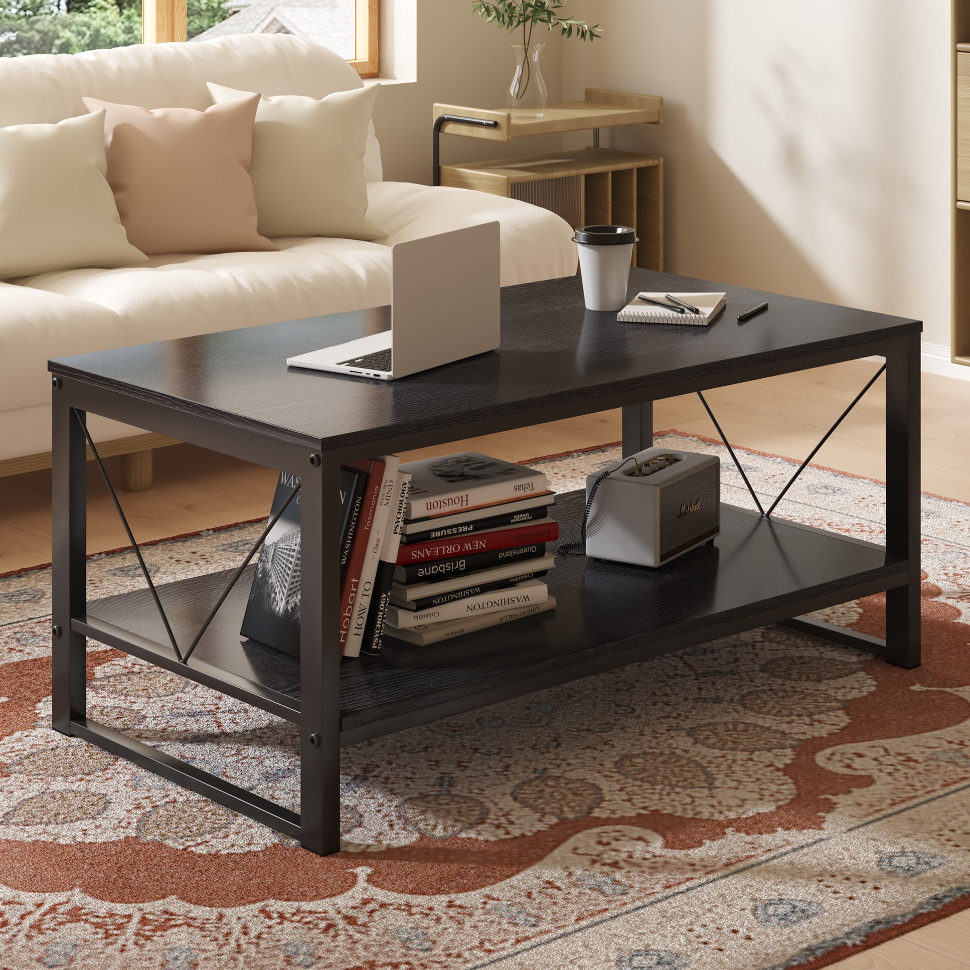 2-Tier Coffee Table with Open Storage Shelf - Minimalist Wood Tea Table for Living Room This minimalist 2-tier coffee table is a stylish and functional addition to any living space. Its clean lines and simple design create a calm, contemporary atmosphere. The spacious 40-inch tabletop is perfect for drinks and decor, while the lower open shelf provides easy-to-access storage for books, magazines, or baskets. Crafted from durable E1-grade MDF with a waterproof and wear-resistant finish, this table is built to last. It’s an ideal and versatile piece for living rooms, studios, or small urban apartments.