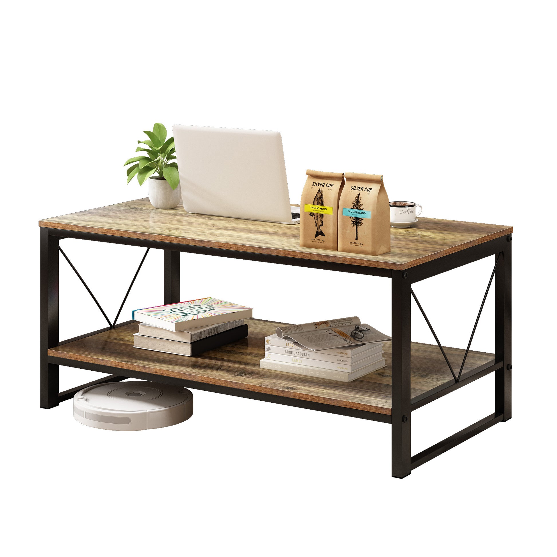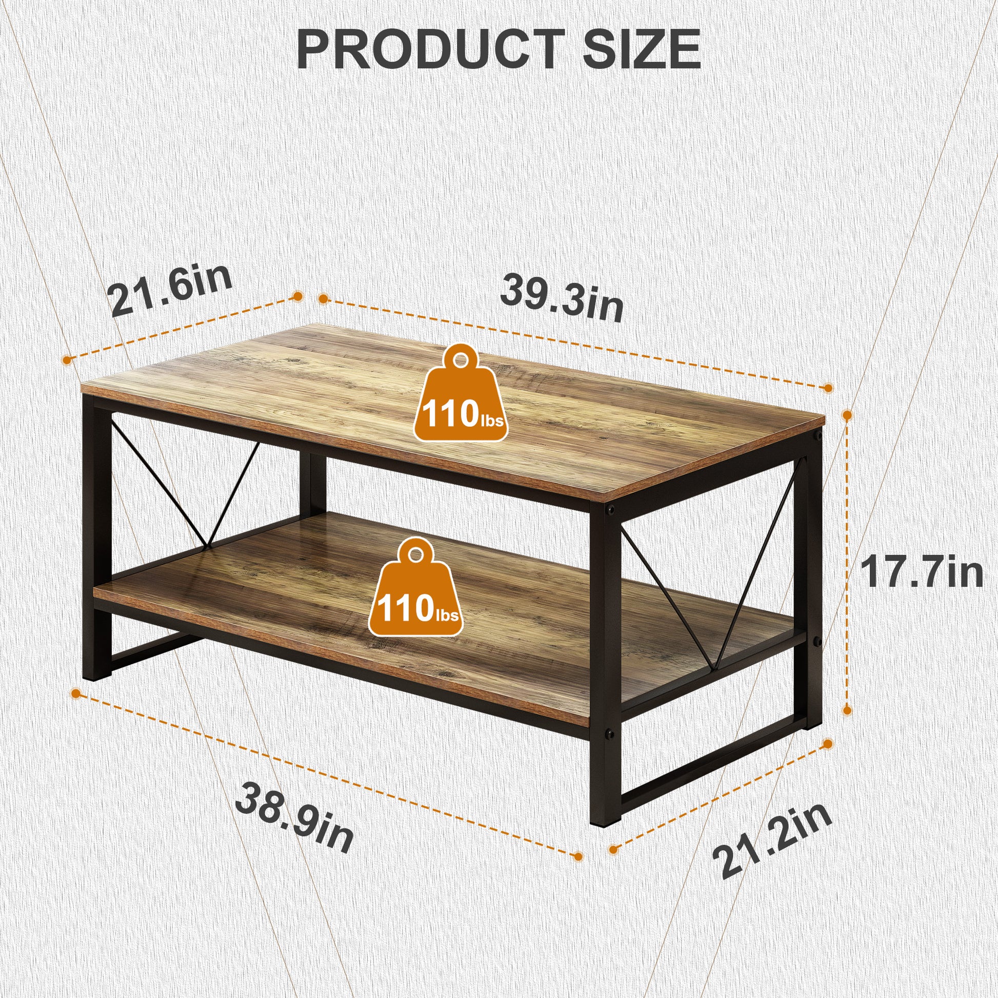 Vividwood 40" Rectangle Coffee Table with Storage – 2-Tier Farmhouse Wooden Center Table for Living Room – Rustic Minimalist Style