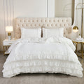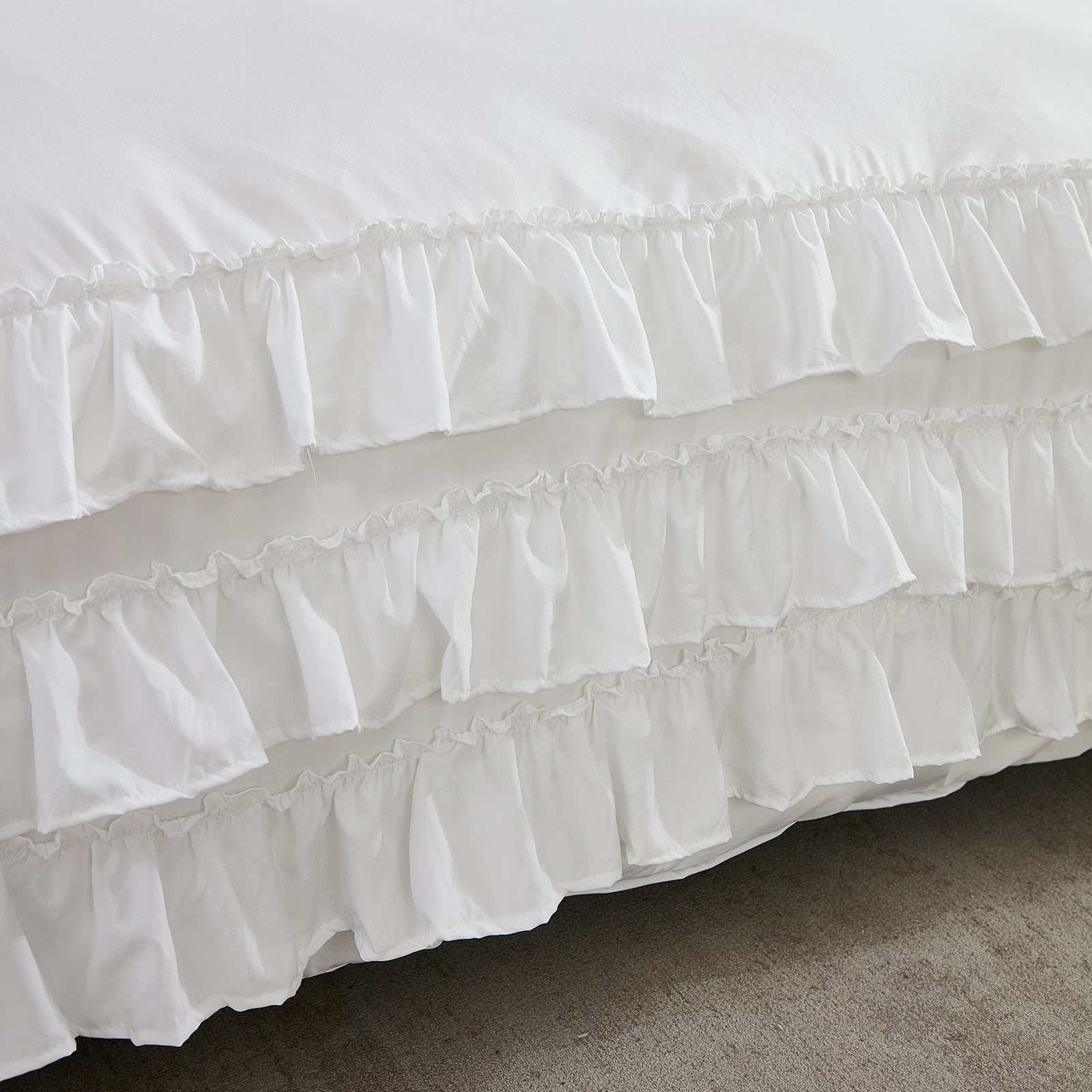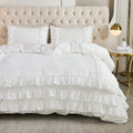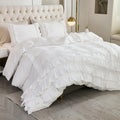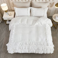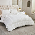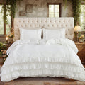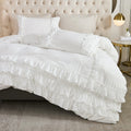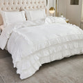 Waterfall Ruffle Comforter Set – 3-Piece Shabby Chic Farmhouse Bedding with Multi-Layer Ruffles, Soft Lightweight Microfiber Quilt, Queen/King