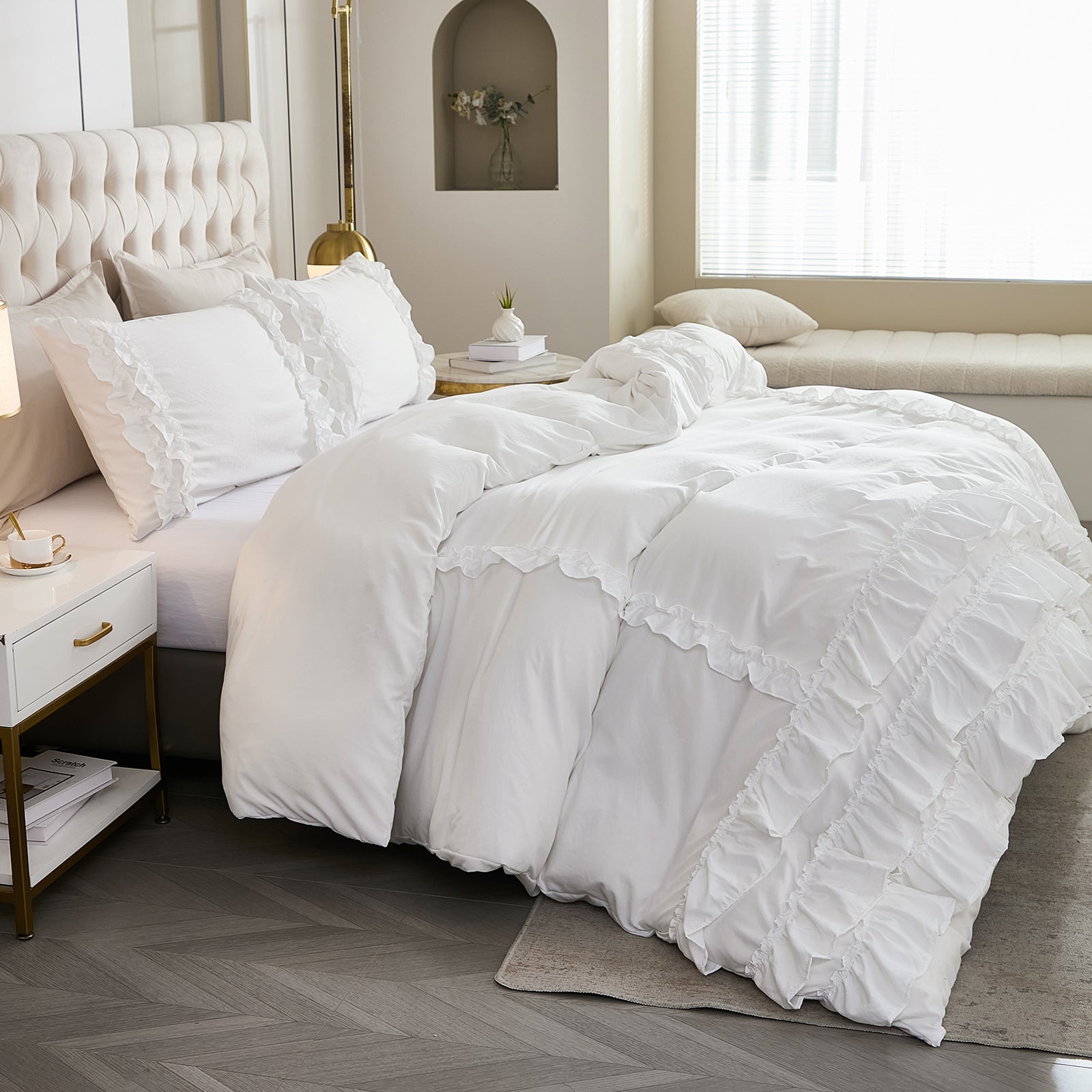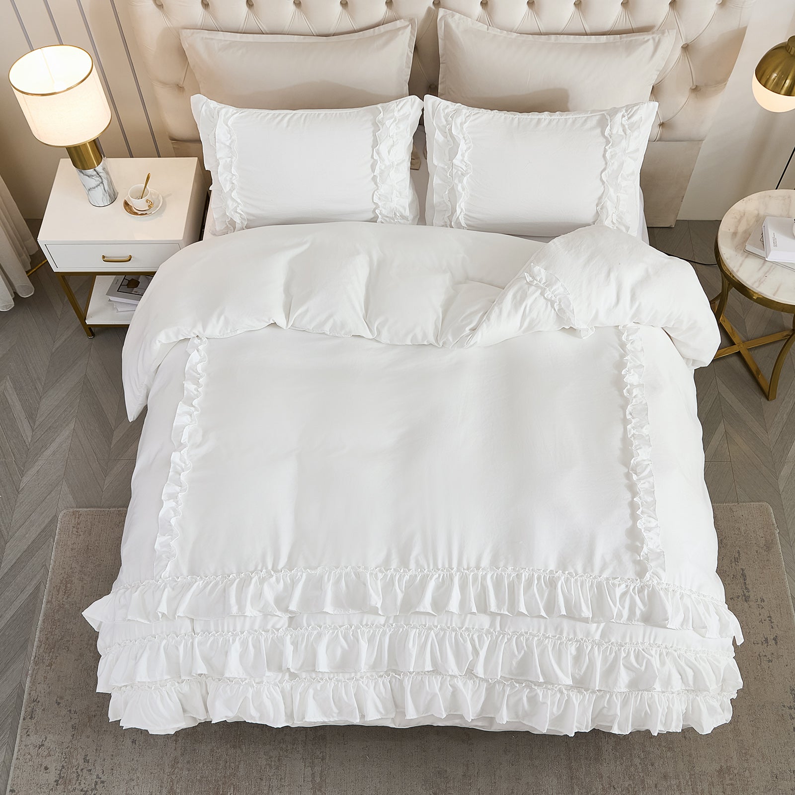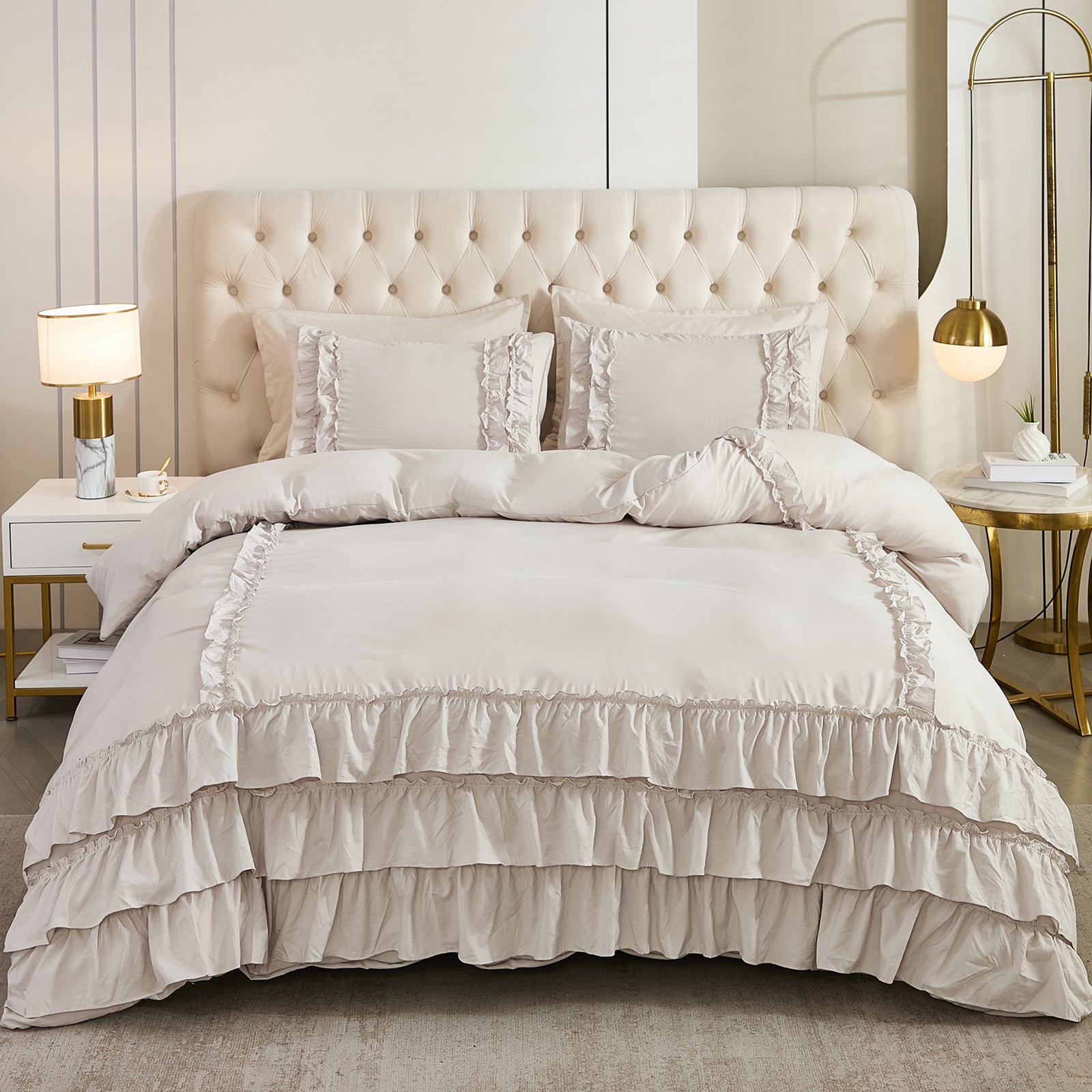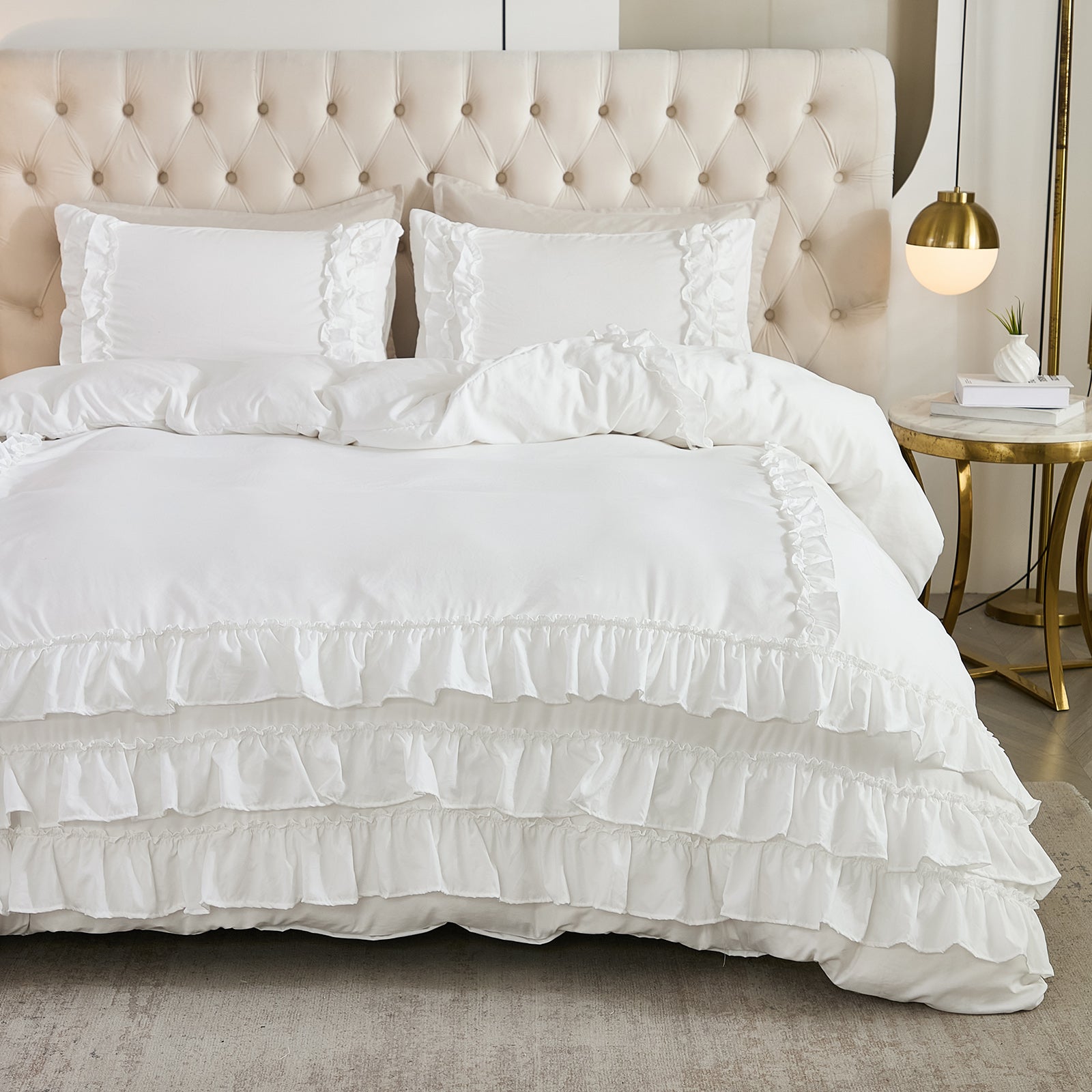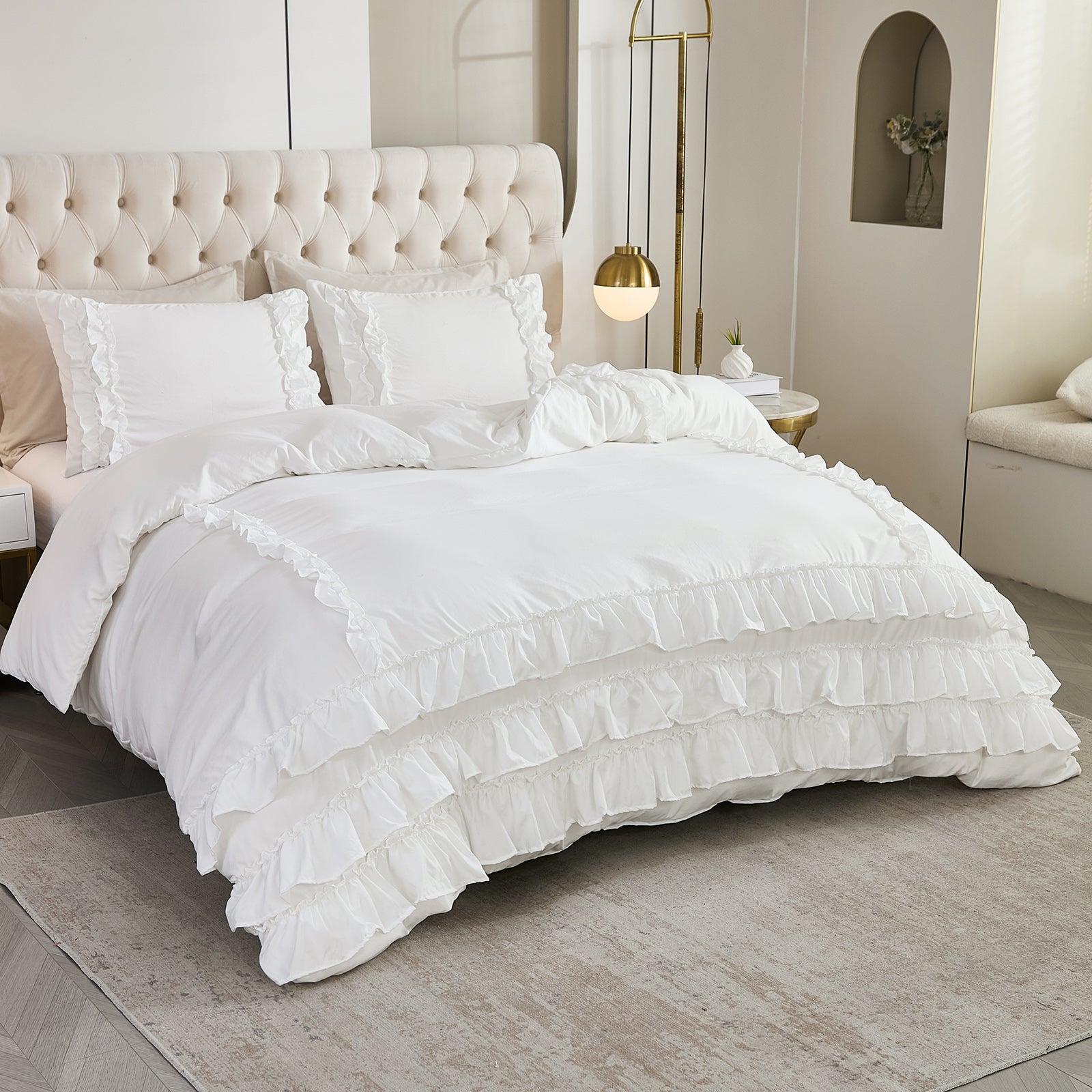 Bring timeless elegance to your bedroom with the Waterfall Ruffle Comforter Set, featuring a romantic multi-layer ruffle design. Perfect for shabby chic, farmhouse, or French country décor, this set adds softness and sophistication to any space.